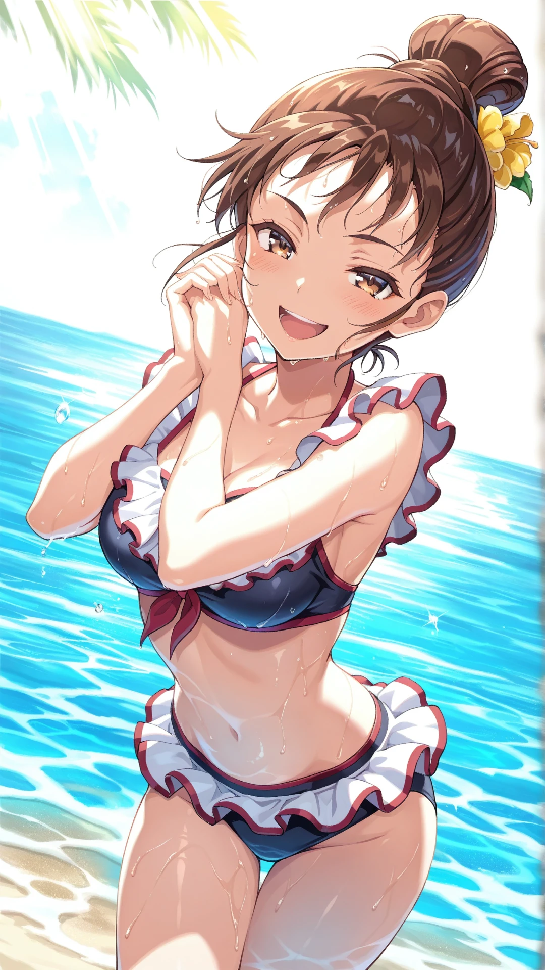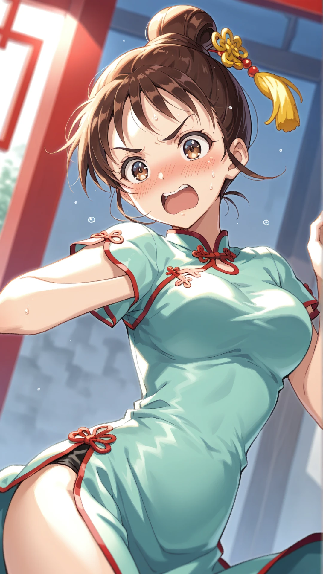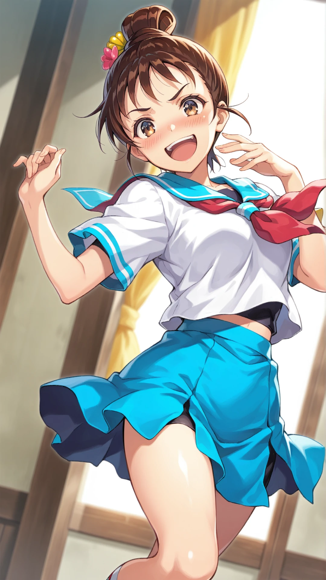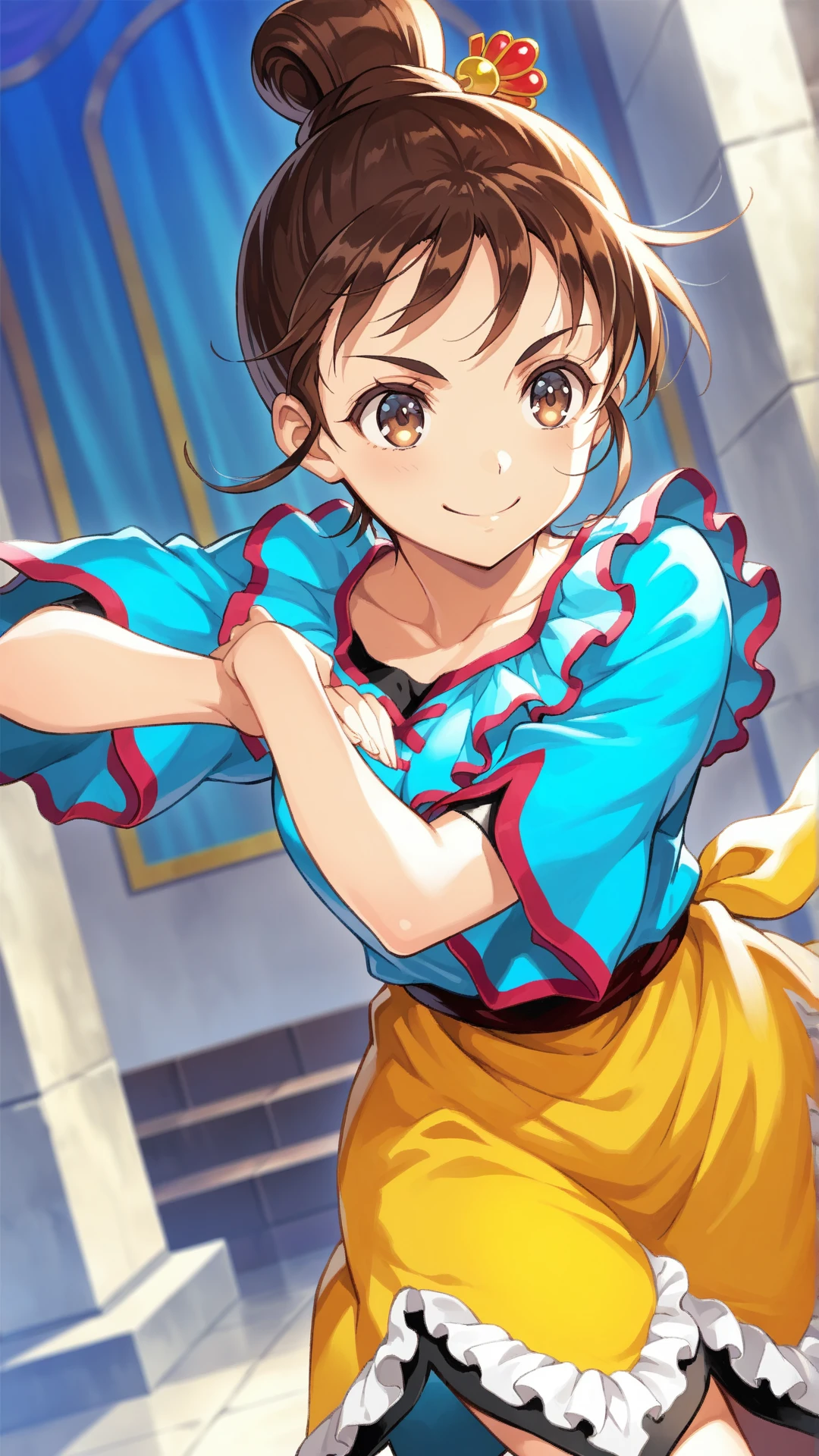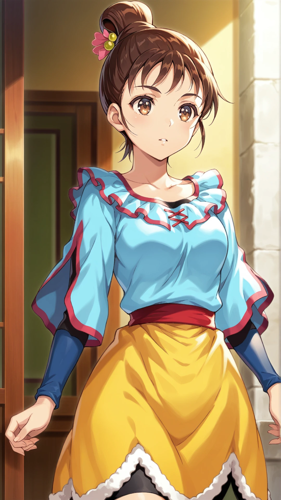 farah\(minstrel saga\),brown hair, brown eyes, single hair bun,