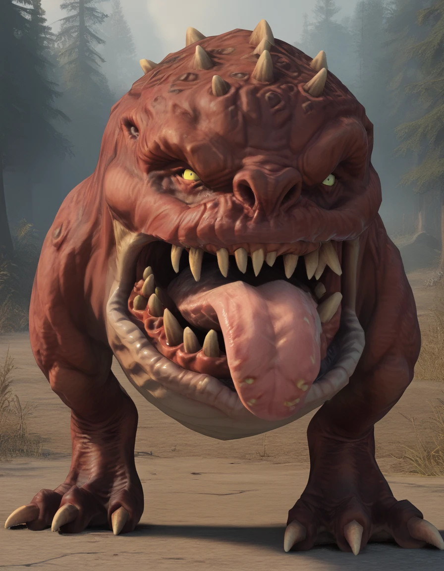 Squig, monster, no humans, teeth, yellow eyes,Flavor your Squig by adding one/some of the below tags: