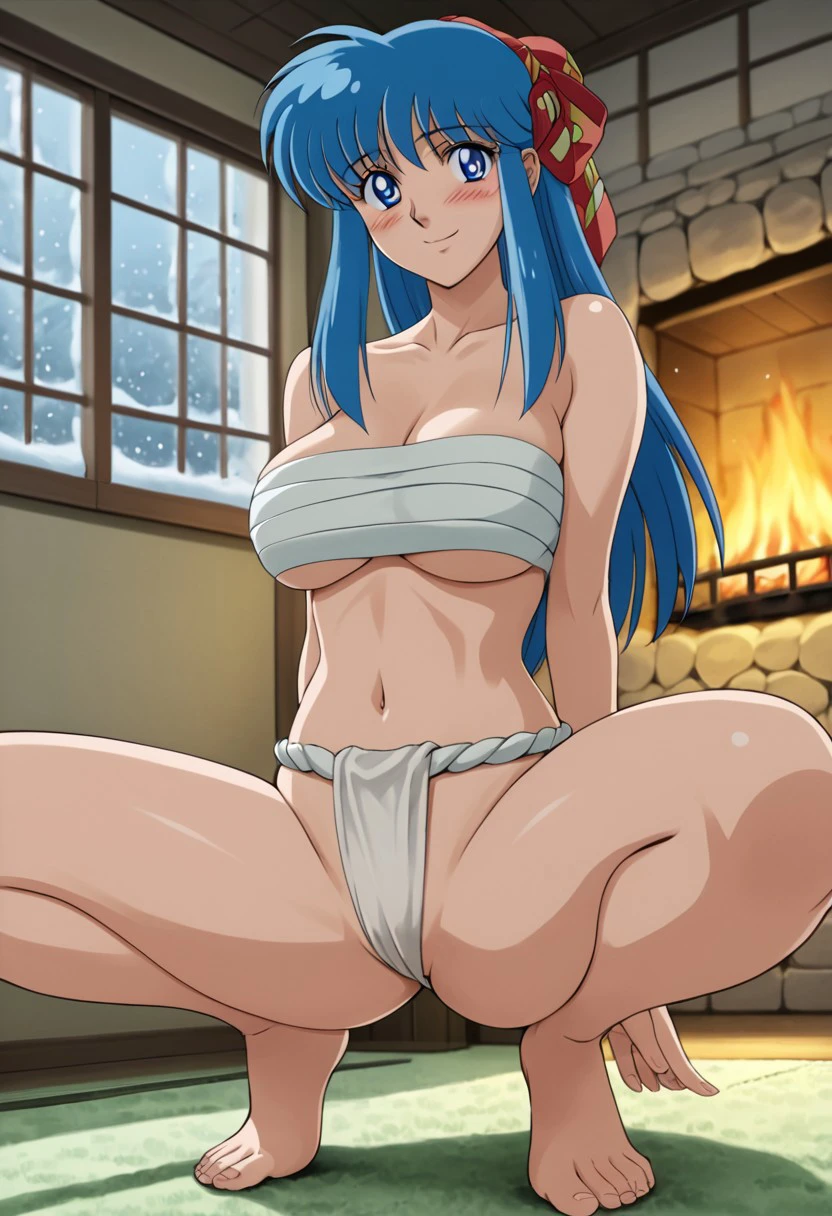 1 girl, cute face, single, blue eyes, detailed pupils, long hair, blue hair, ponytail, bun