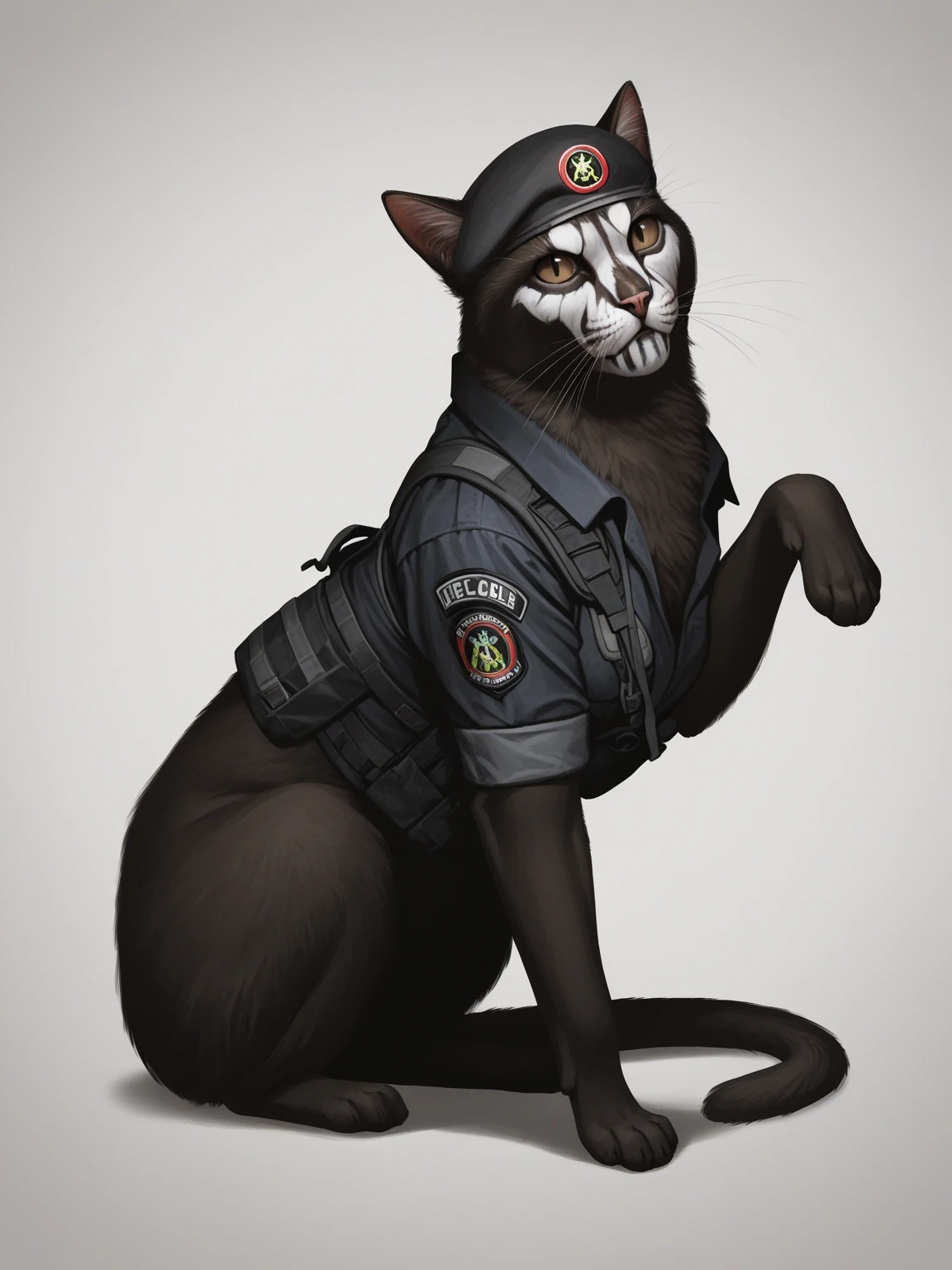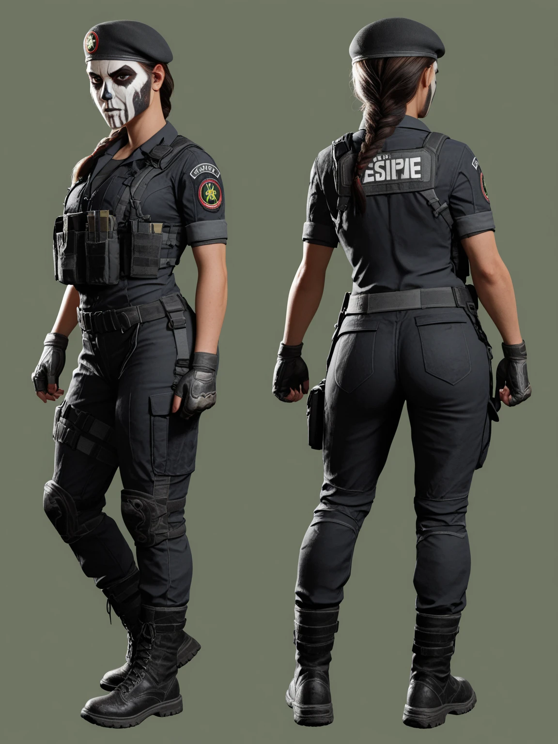 r6caveirabope, uniform, tactical clothes, beret, skull, facepaint, short sleeves, fingerless gloves, holster