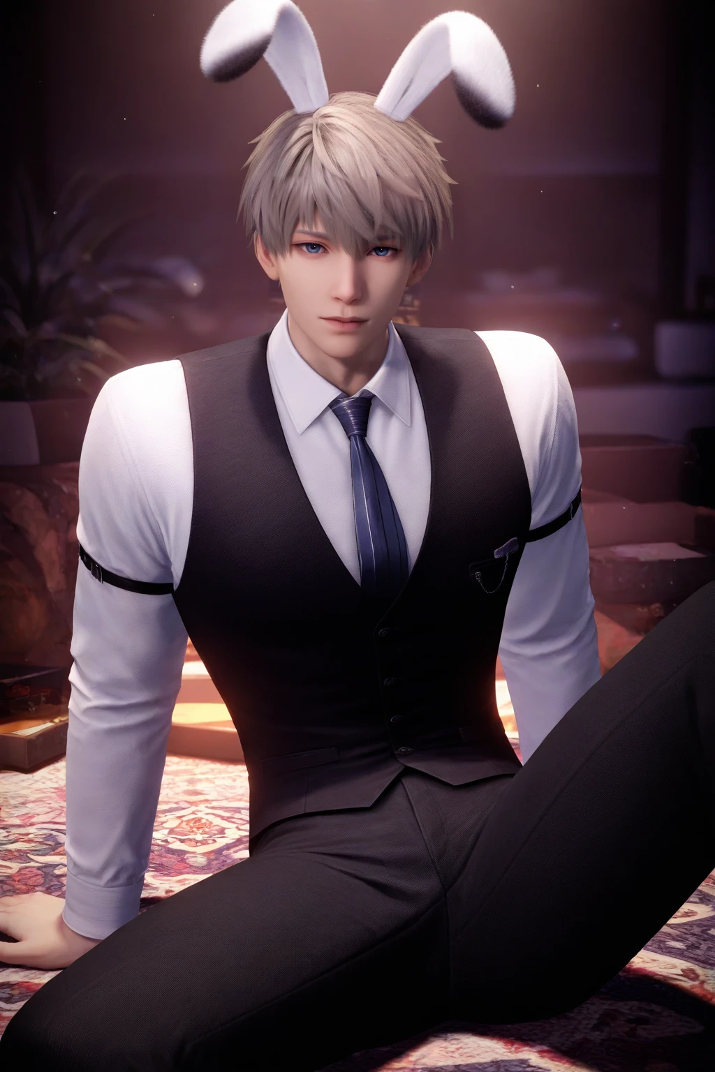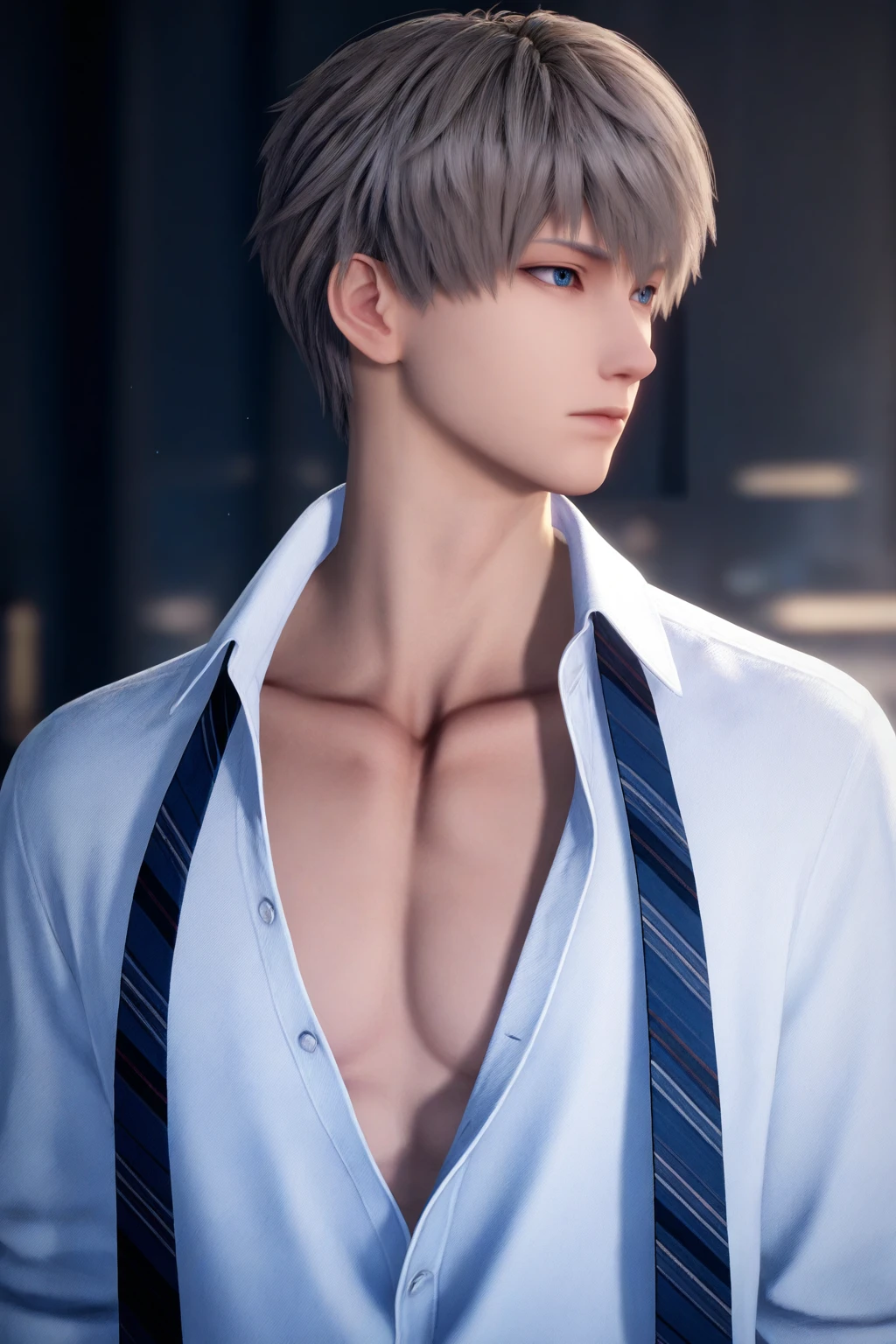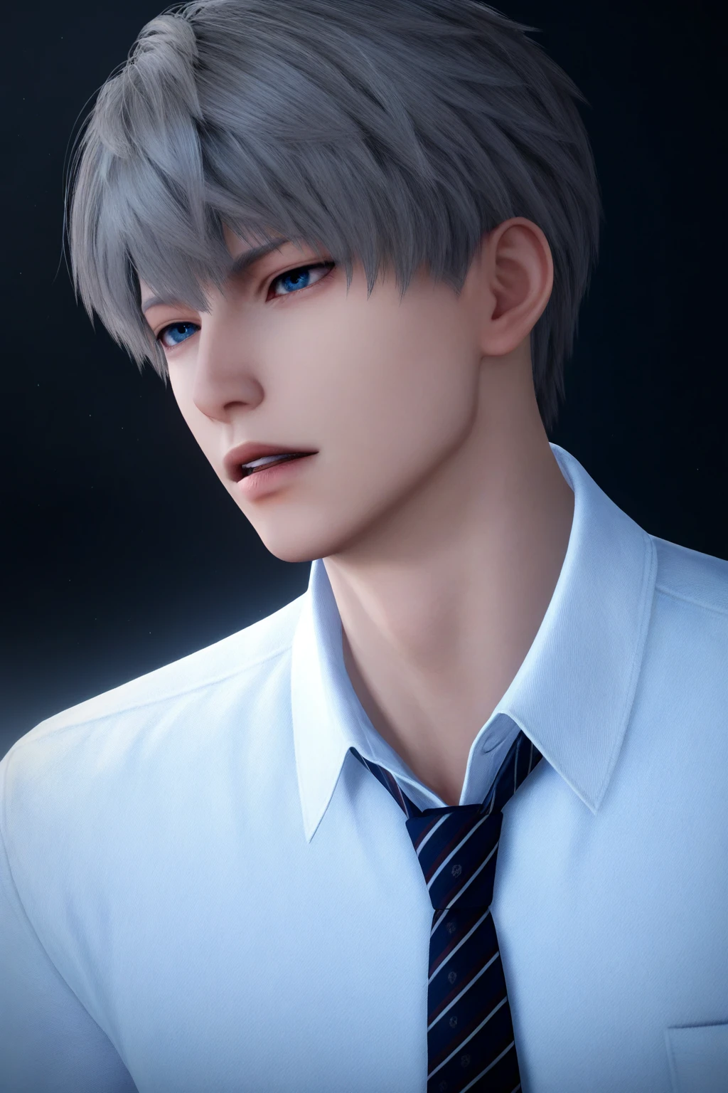 xavier,blue eyes,short hair,grey hair