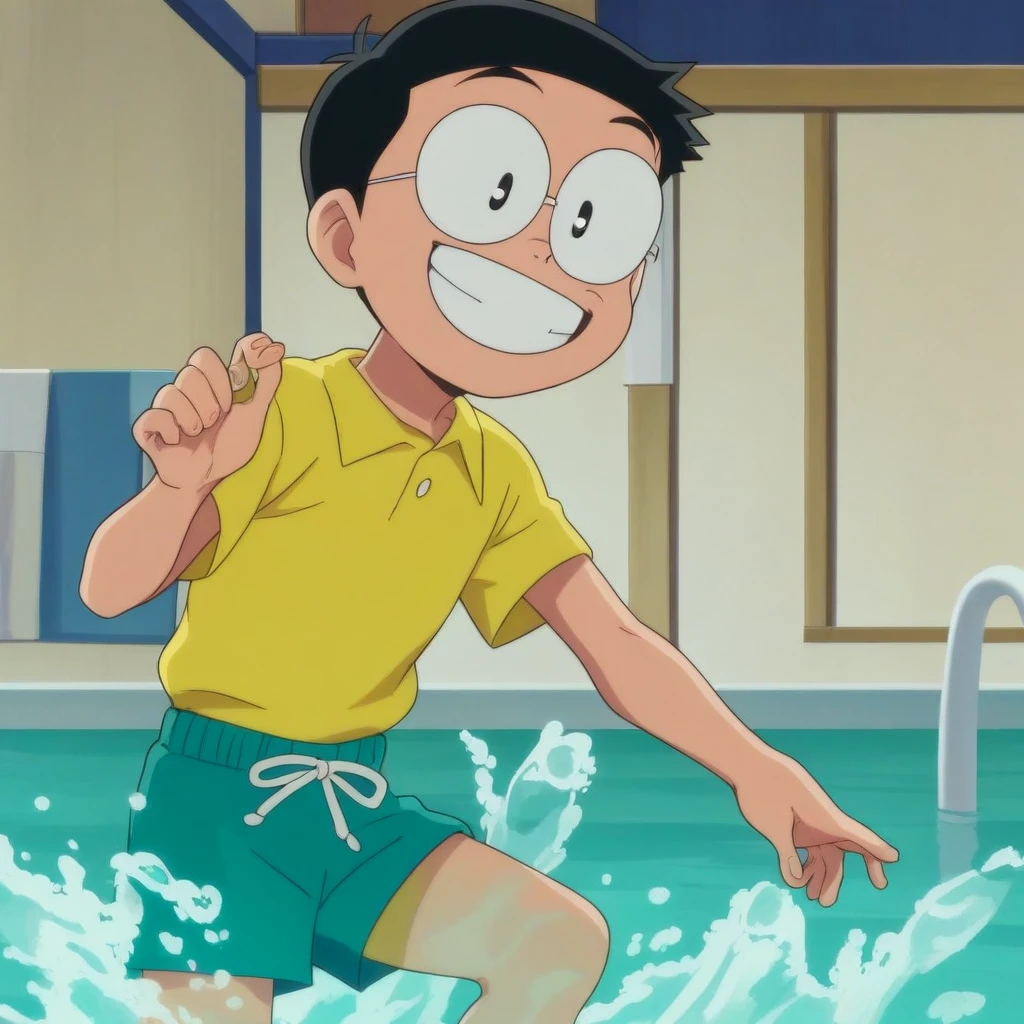 1boy, solo, nobita, glasses, black hair, black eyes