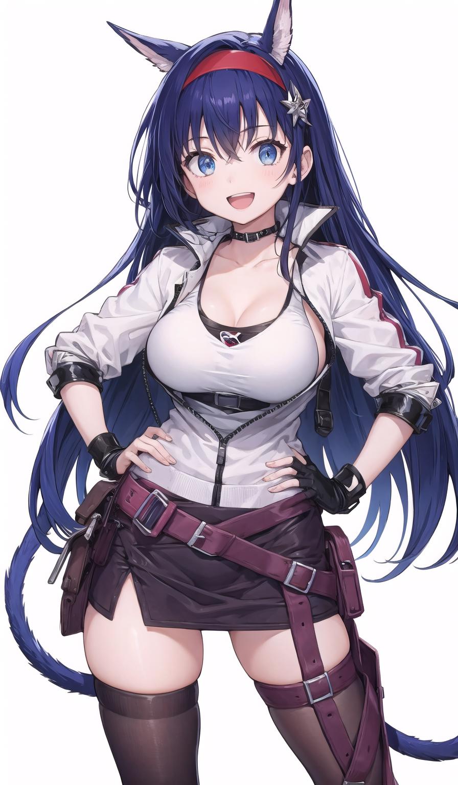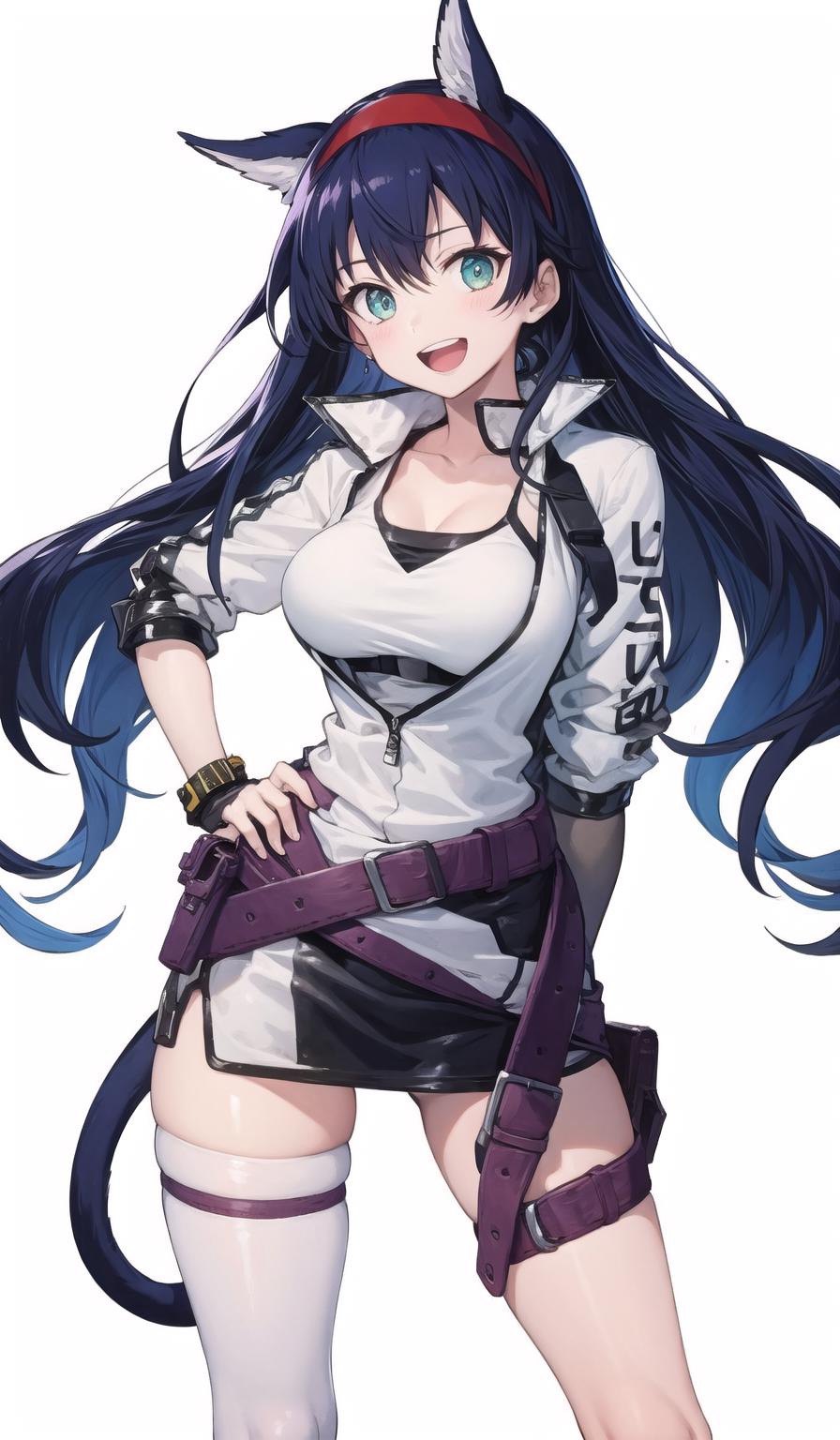 PS:You can use it as a character lora,suggest promt: blaze hairstyle, outfit-blaze, 1girl, solo, breasts, long hair, animal ears, very long hair, tail, smile, open mouth, red hairband, :d, large breasts, white background, black hair, cat tail, hand up, bangs, cowboy shot, looking at viewer, simple background, hand on hip, thighs, hair between eyes, standing