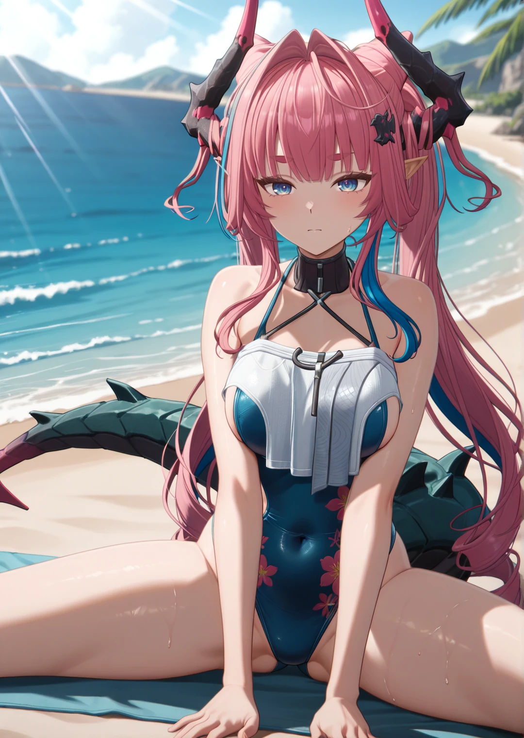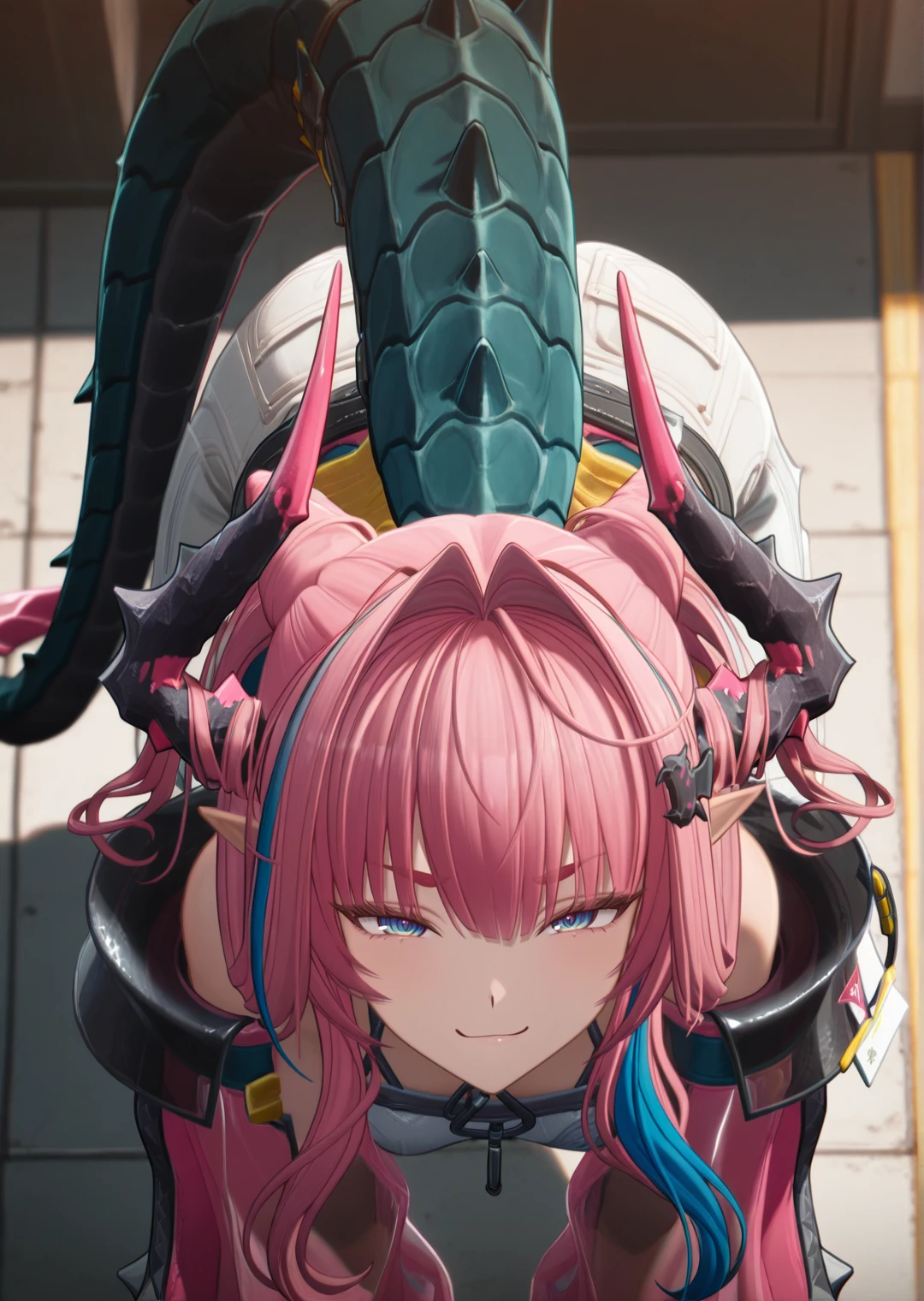 yvonneake, solo, 1girl, long hair, pink hair, blue hair, multicolored hair, streaked hair, blue eyes