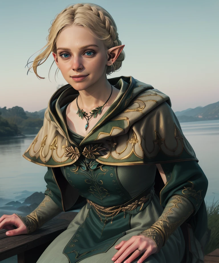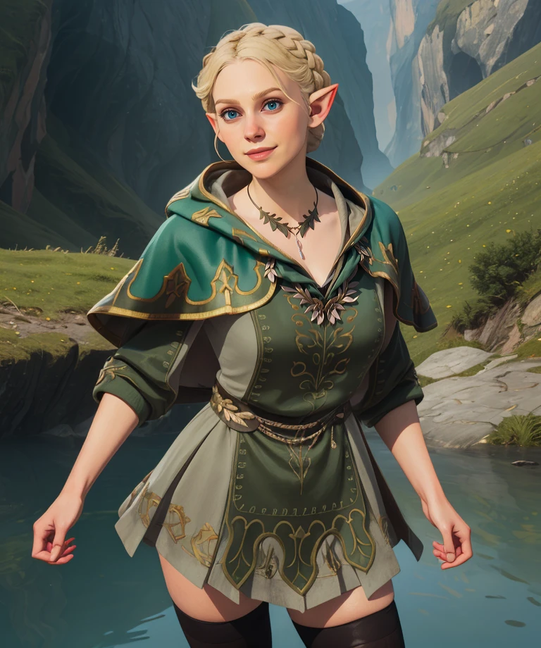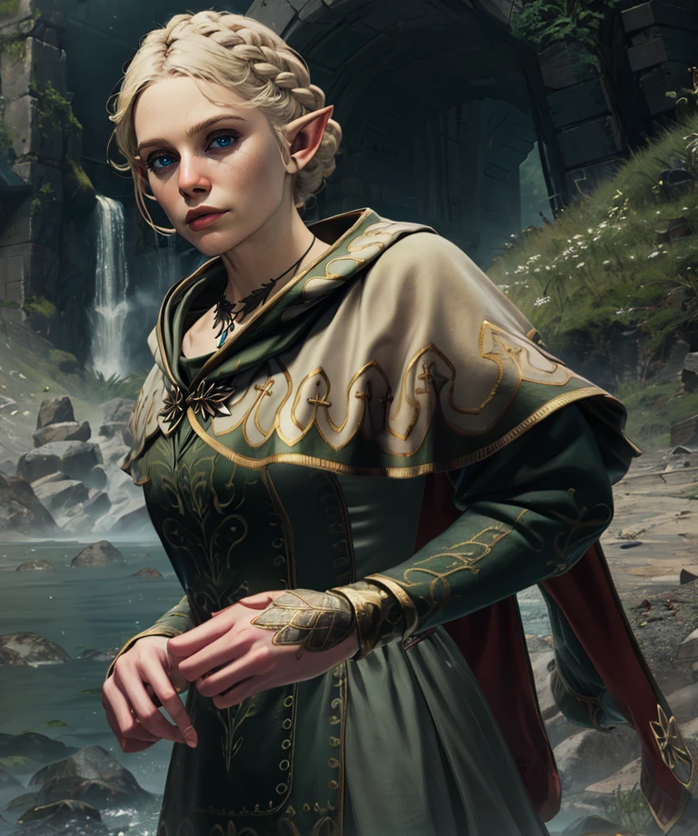 Doireann, blue eyes, blonde hair, short hair, braid, pointy ears,