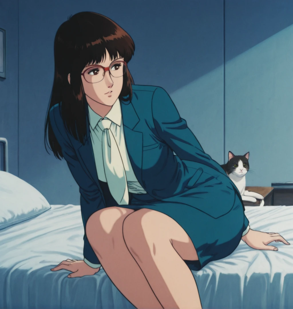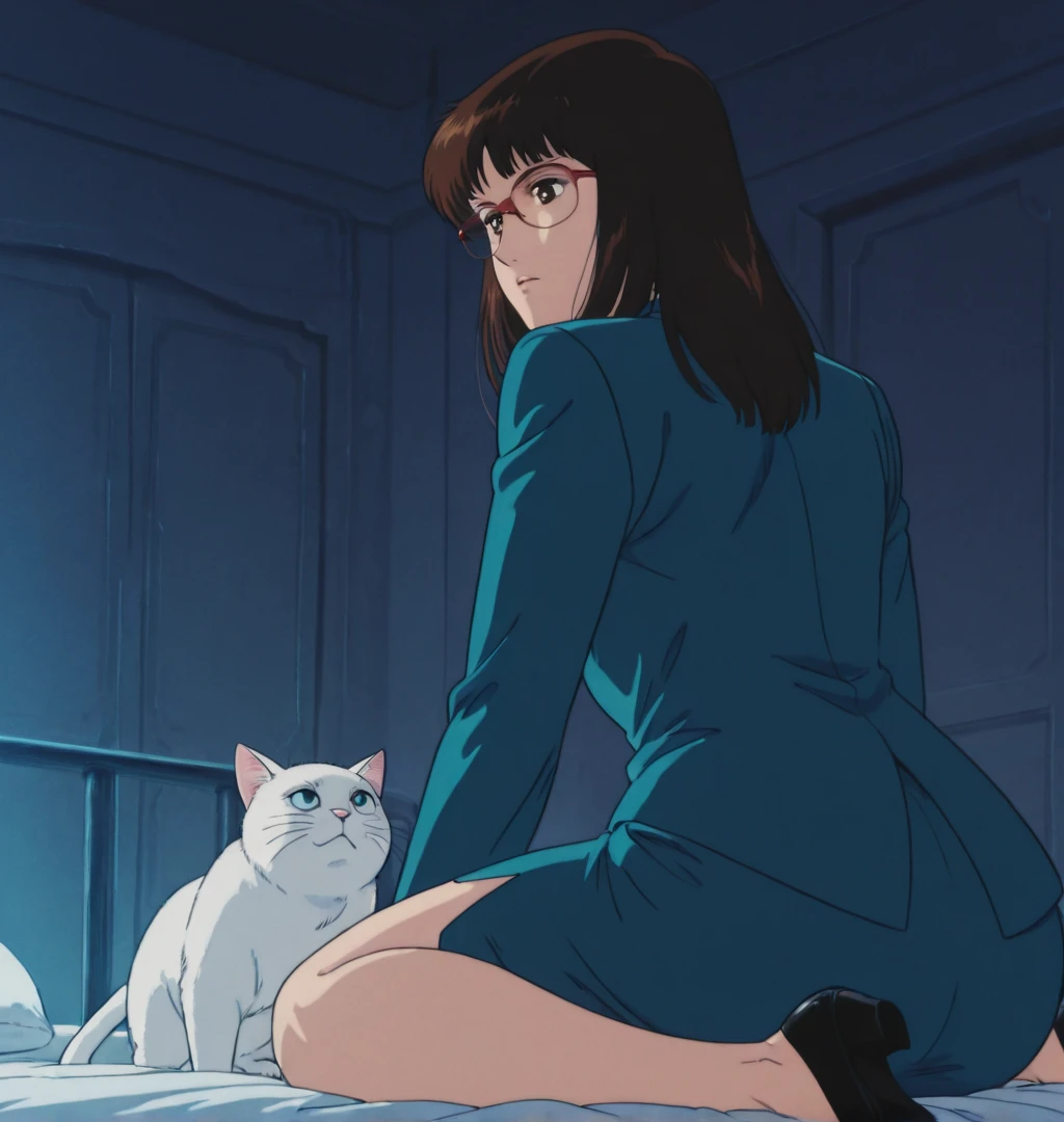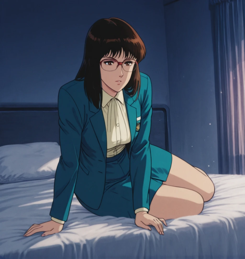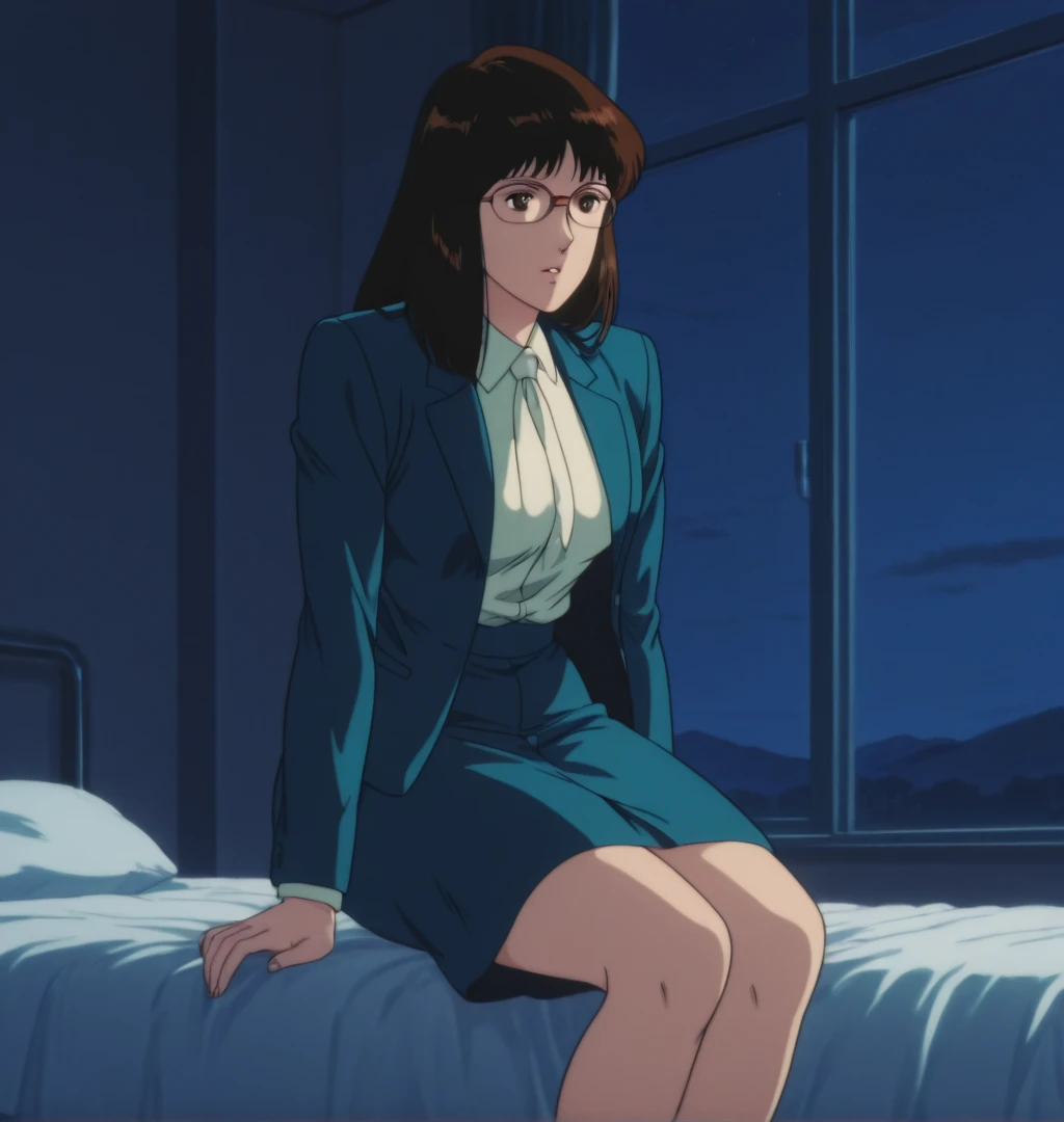 The detective police officer from the series, she's so serious and dedicated. I had a crush on her at first sight, so I decided to create this Lora in homage to her, the dedicated Asatani Mitsuko.