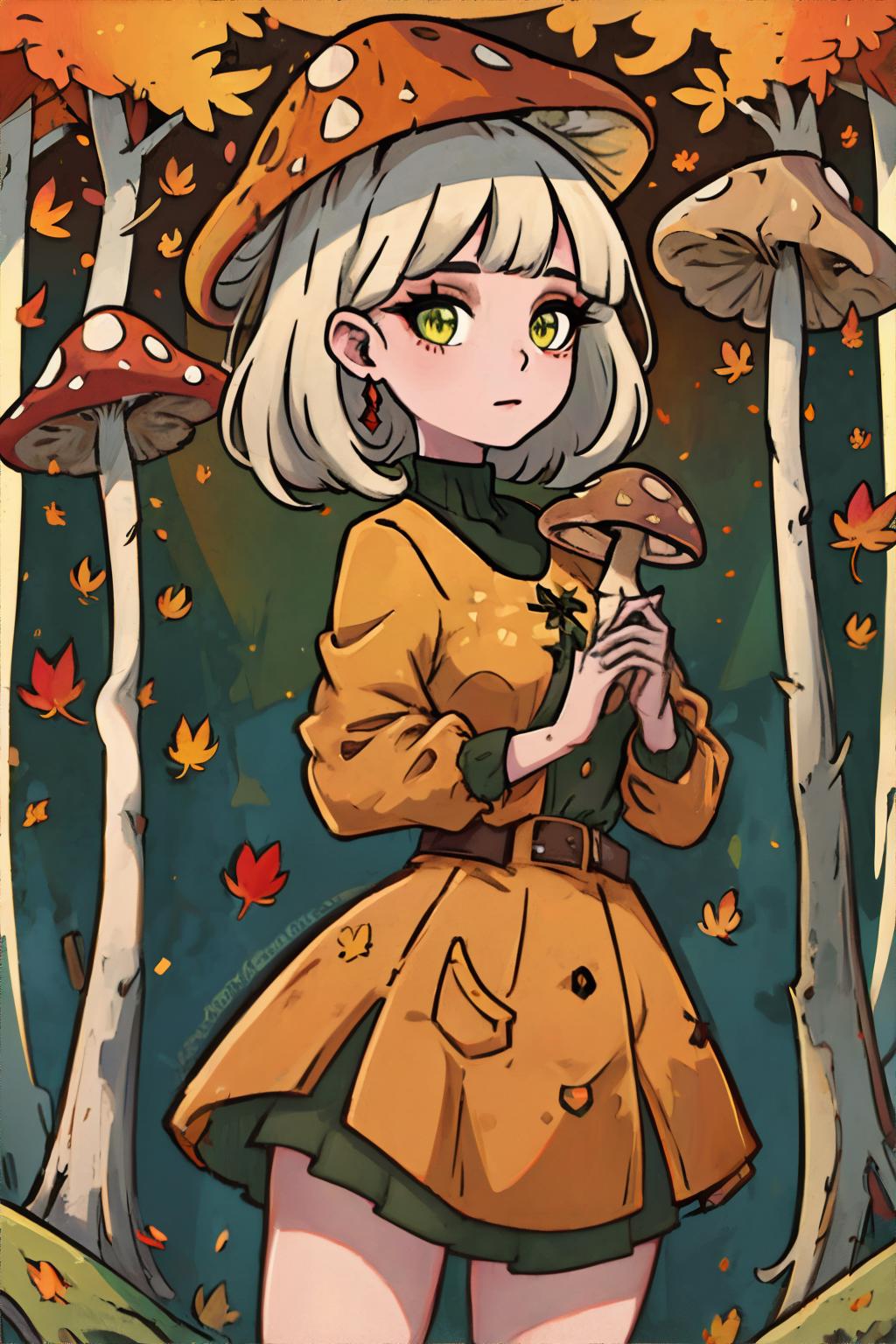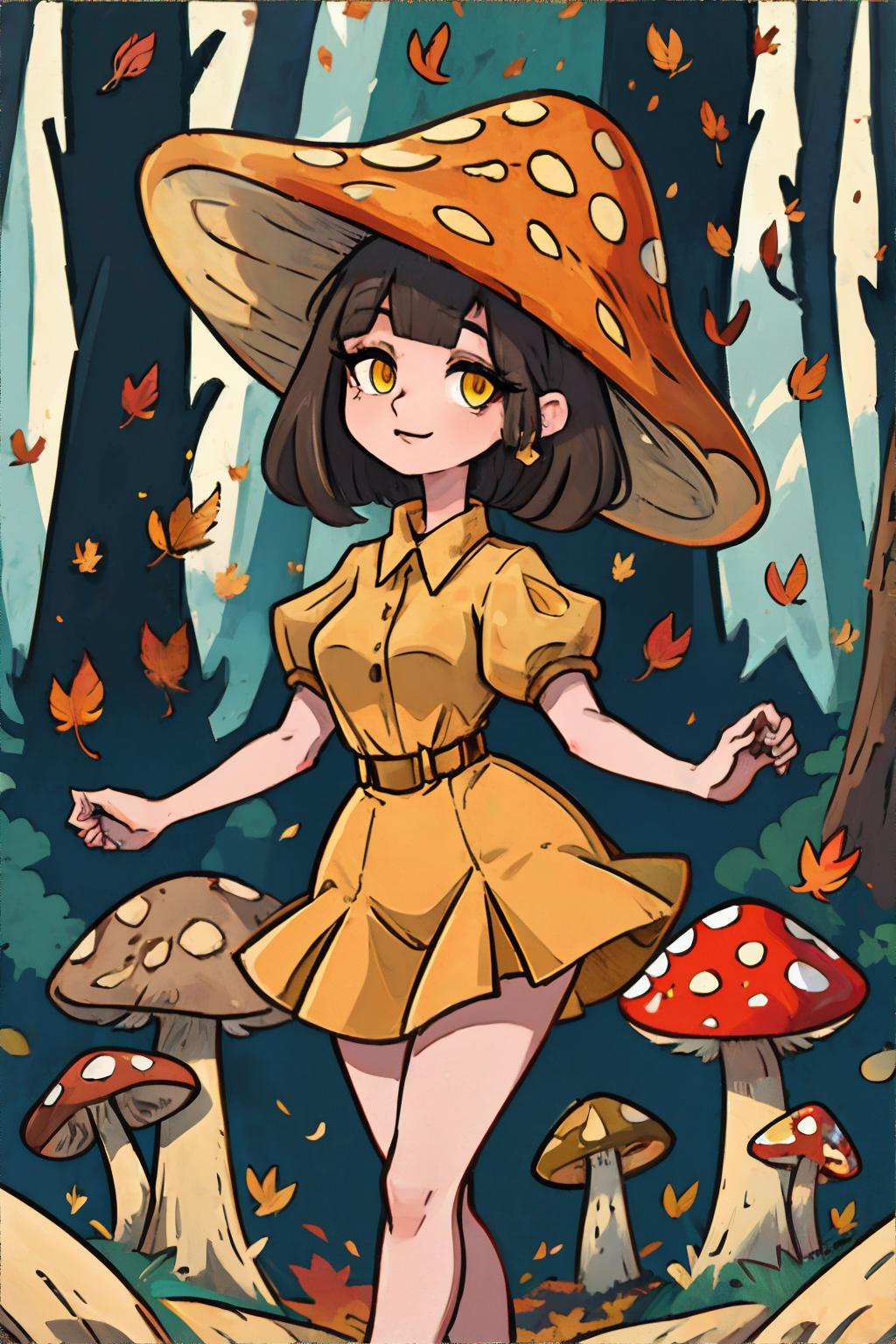 Generate using a weight of 0.75-1 like this: <lora:mushroomPeoplev120:0.75>
