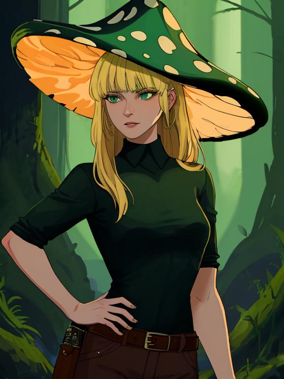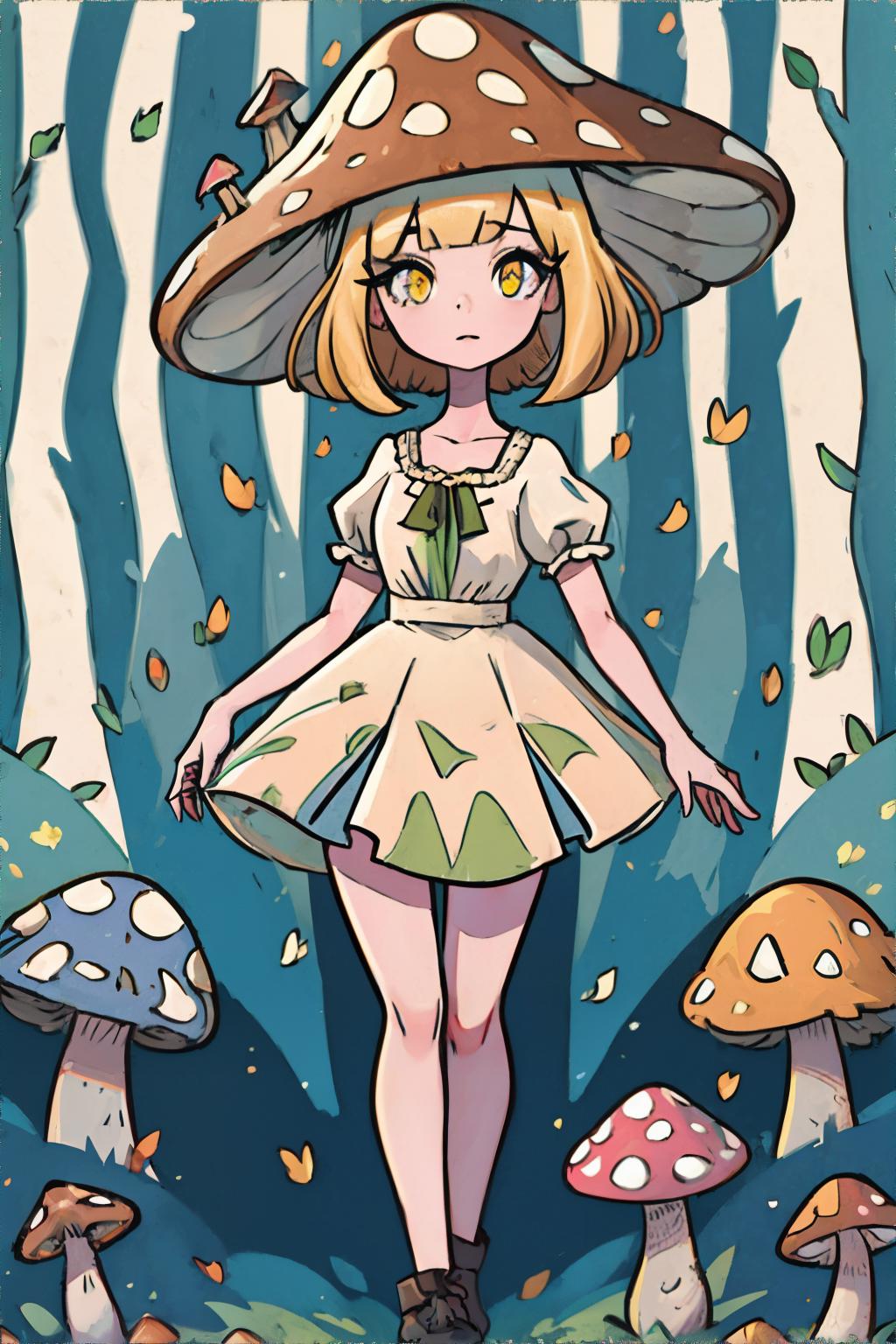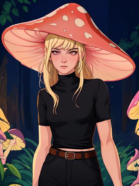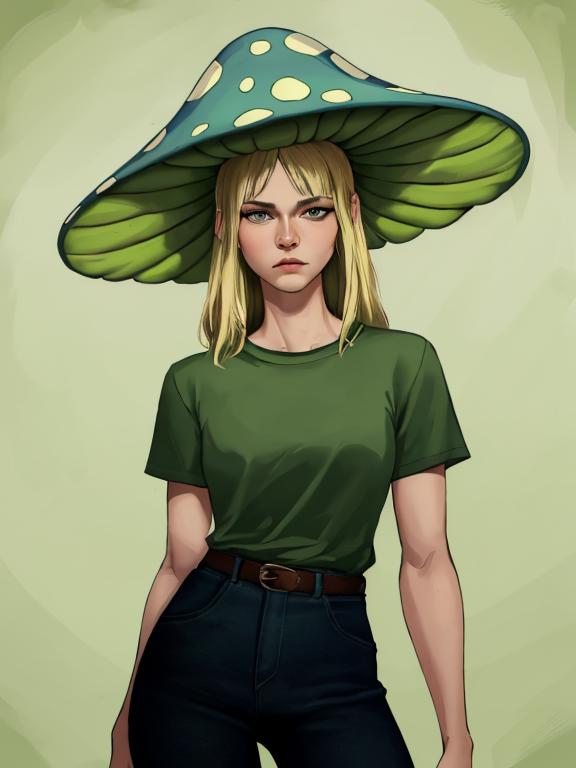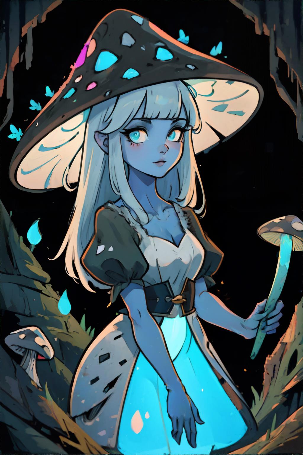 positive: <lora:mushroomPeoplev120:0.75>(mush_woman, blue mushroom)