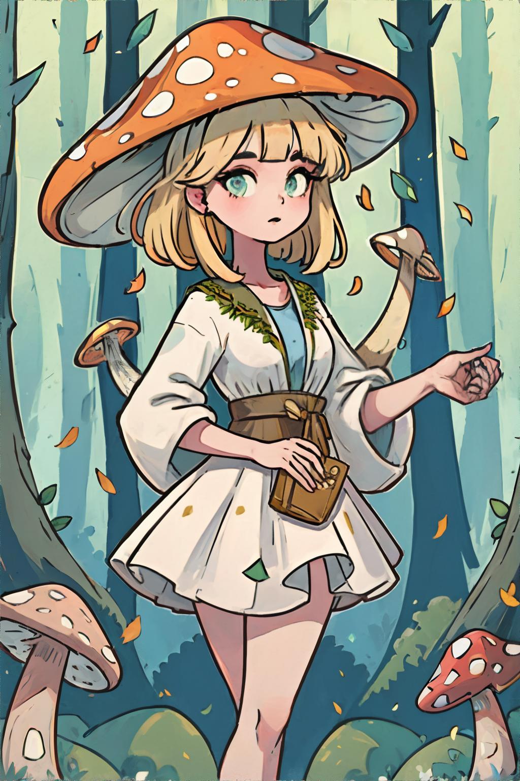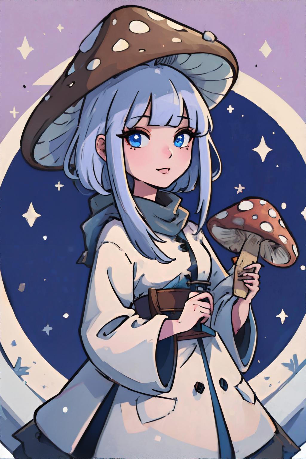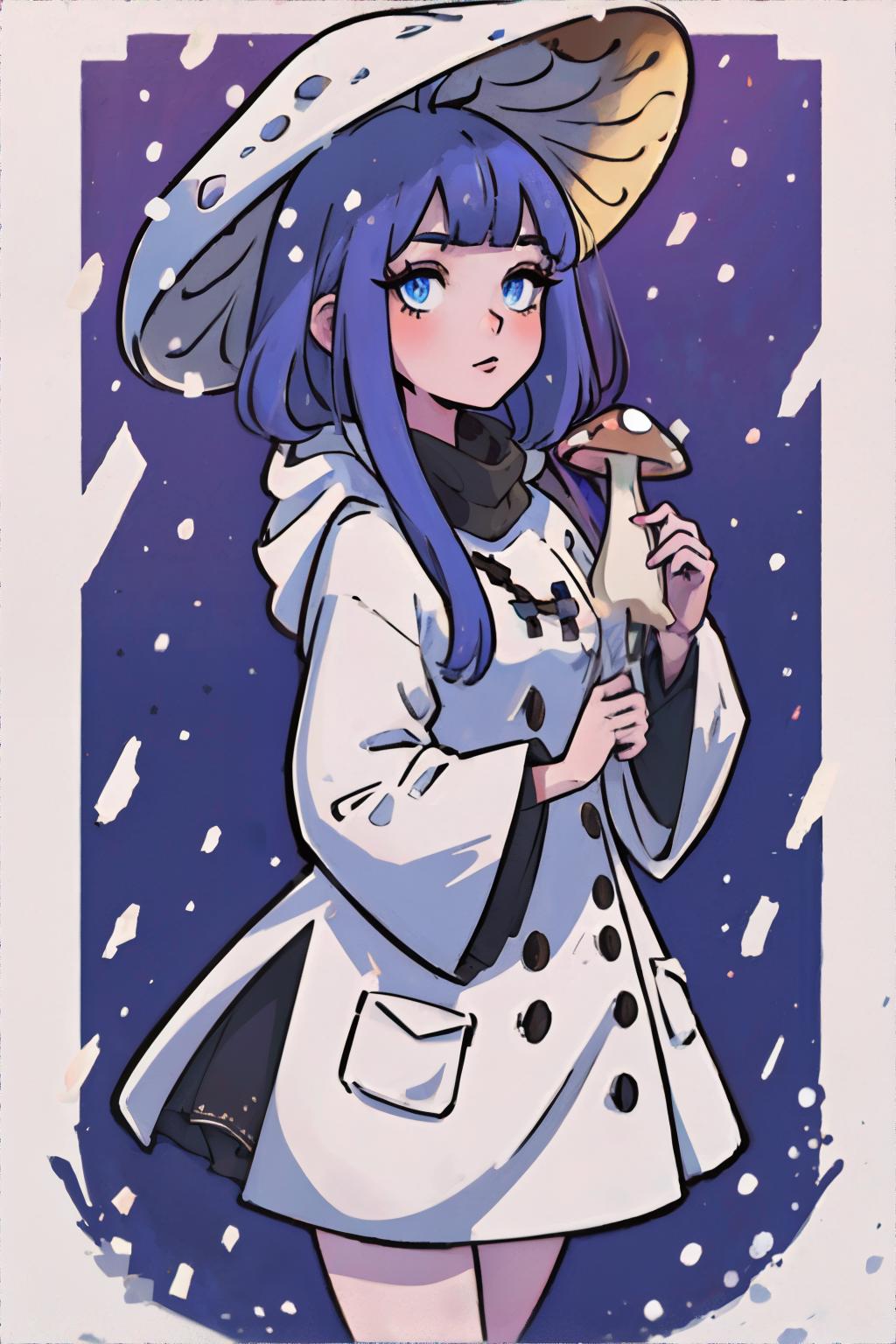 positive: <lora:mushroomPeoplev120:0.75>(mush_woman, blue mushroom)