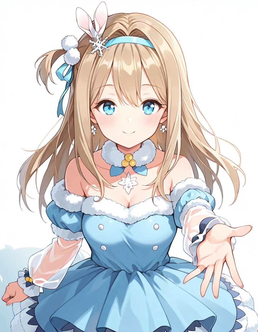 korvatunturi pixie, KP_fur-trimmed_dress, layered dress, off-shoulder, KP_snowflake_neck_ornament, KP_neck_ribbon, KP_see-through_sleeves, KP_hair_ornament, KP_hair_ribbon, KP_detached_fur_collar, KP_wristband, KP_thighhighs, KP_thigh_ribbon, suomi_hairband, suomi_snowflake_hair_ornament, KP_detached_collar, suomi_bunny_hair_ornament, KP_boots,Blissful Mission (wedding):