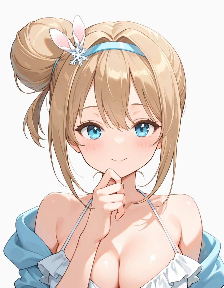 blue eyes, light brown hair, long hair, single side bunwedding: