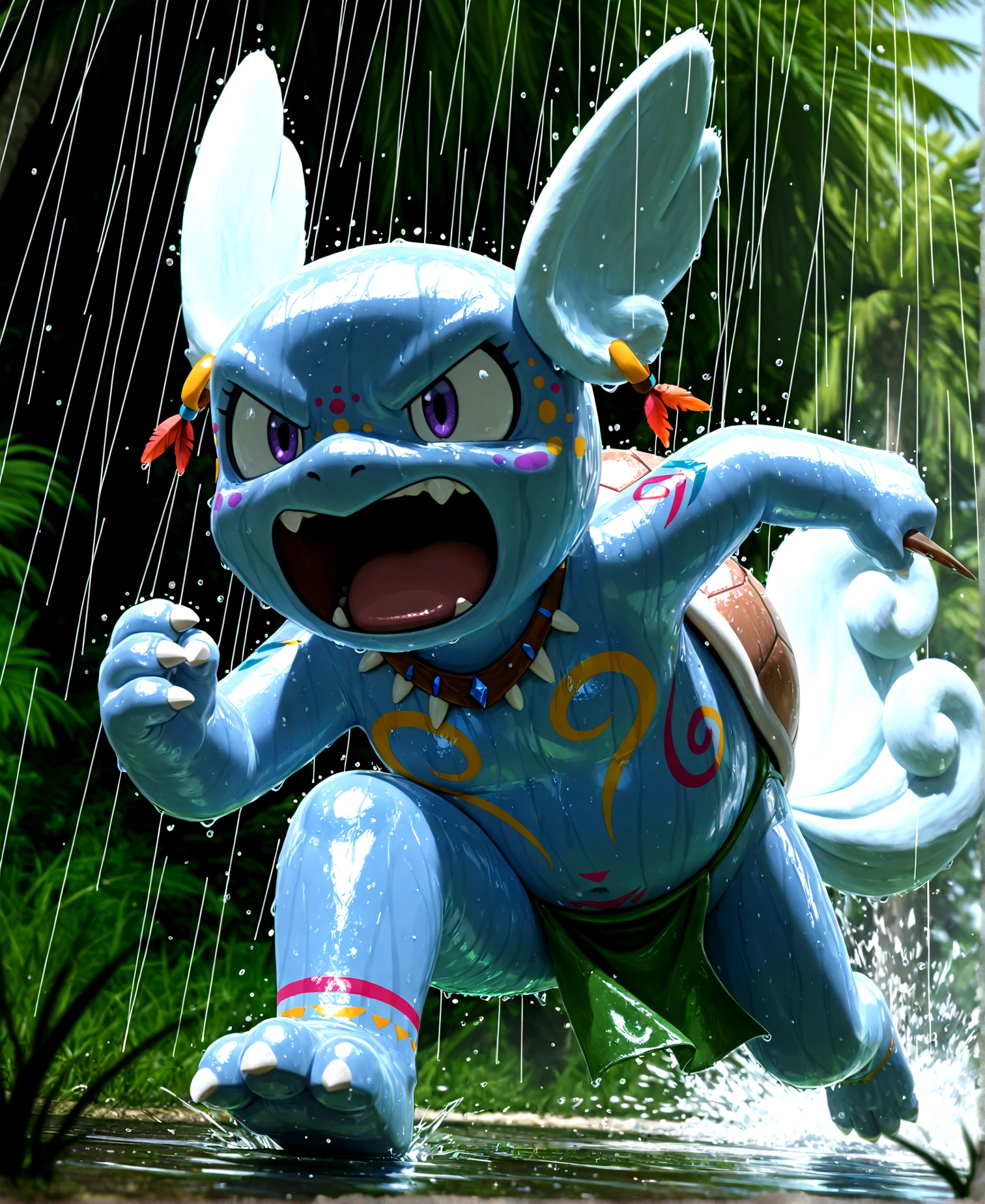 Naked wartortle is a popular topic played by some artists in Japan, this Lora is to recreate this depiction.