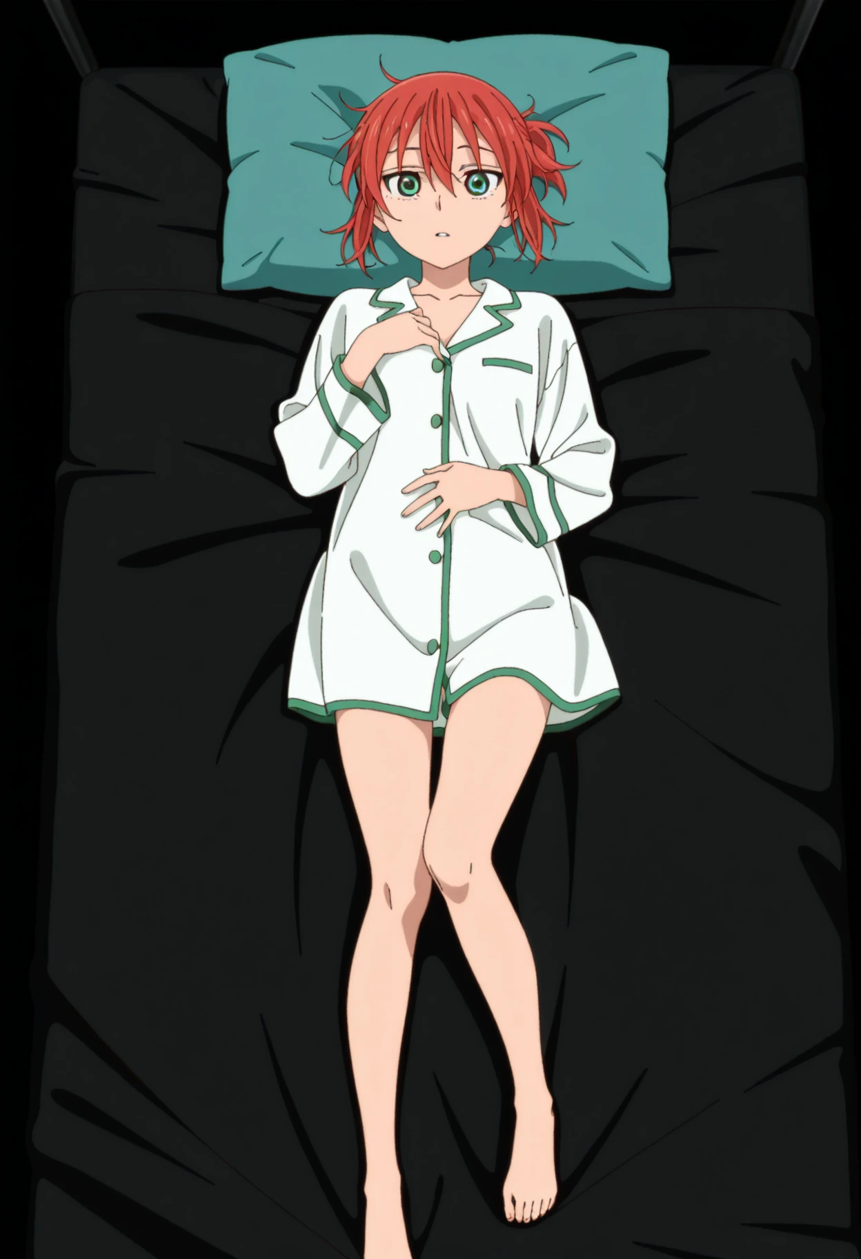1girl, solo, chise hatori, red hair, green eyes, short hair, hair between eyes