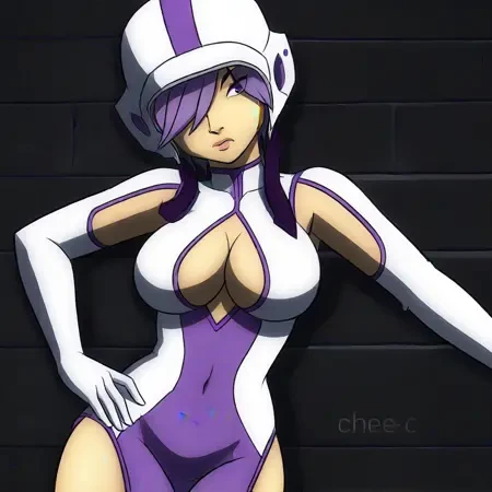 1girl, roller skates, skates, inline skates, solo, blonde hair, , gloves, hair over one eye, helmet, , fingerless gloves, , short hair, makeup, lipstick, underboob, cleavage, Tan Skin Color, fingerless gloves, solo, tan-skinned female, White helmet with purple arrow decals, grey eyes, Hair over right eye, thigh-high socks