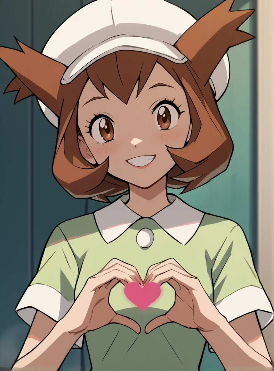 Prompts:kanonlatias,1girl, , brown hair hat, smile, brown eyes, short hair