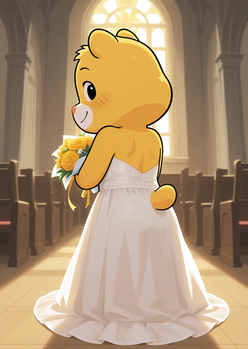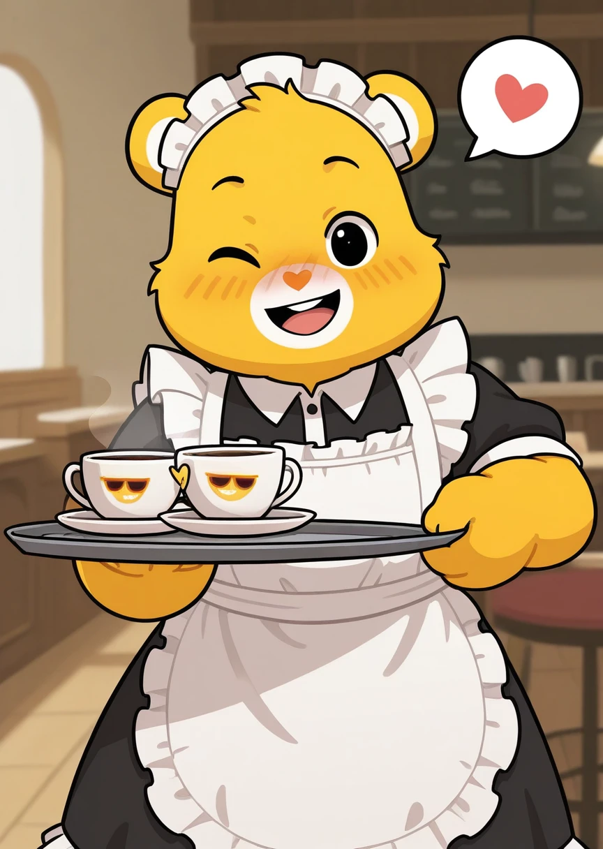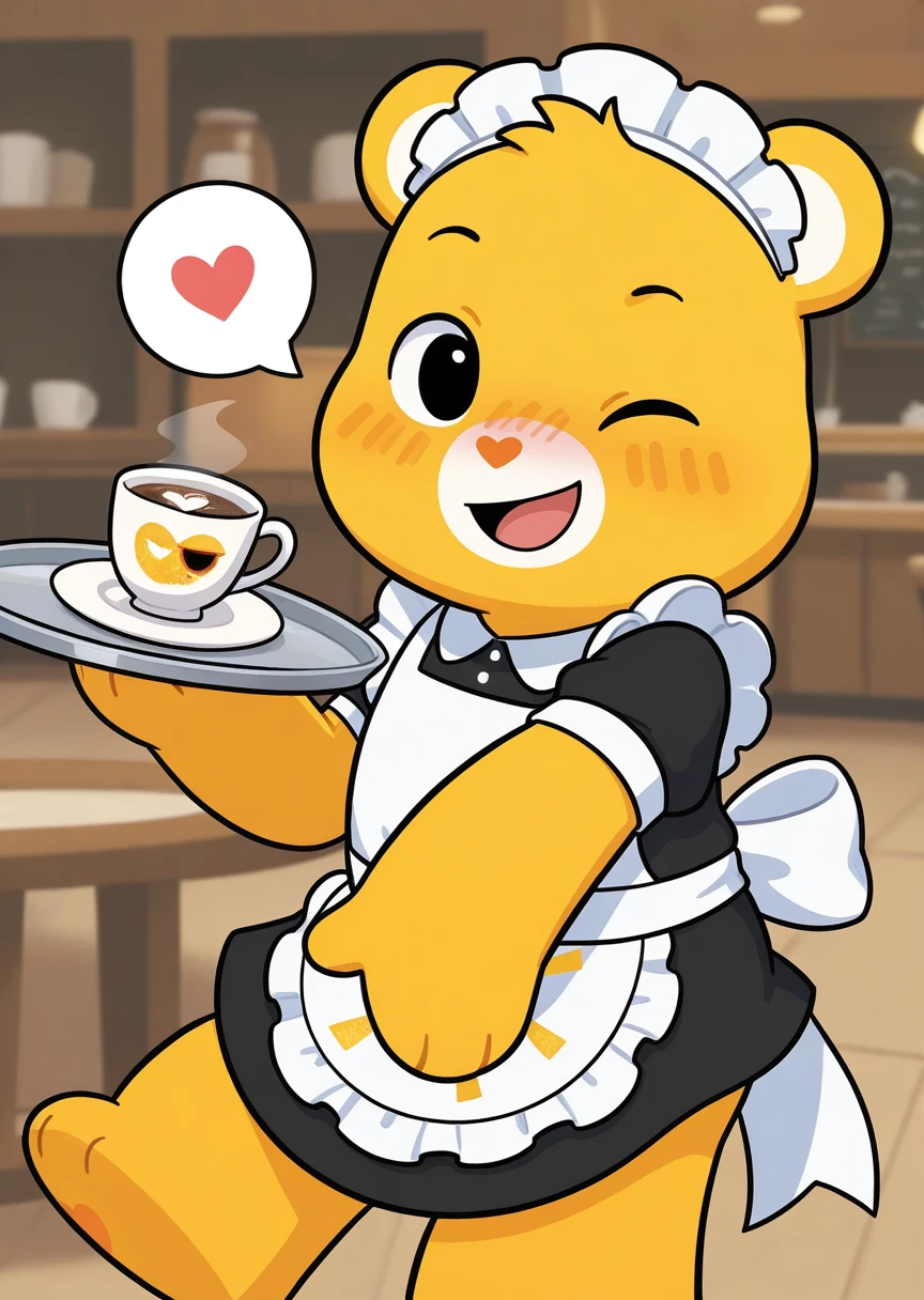 prompts: funshinebema, furry, chibi, animal ears, yellow fur, black eyes, belly markings, white belly, white muzzle,