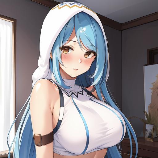 Original outfit: fingerless gloves,sleeveless,white crop top,bare shoulders,trenta hood, shorts.