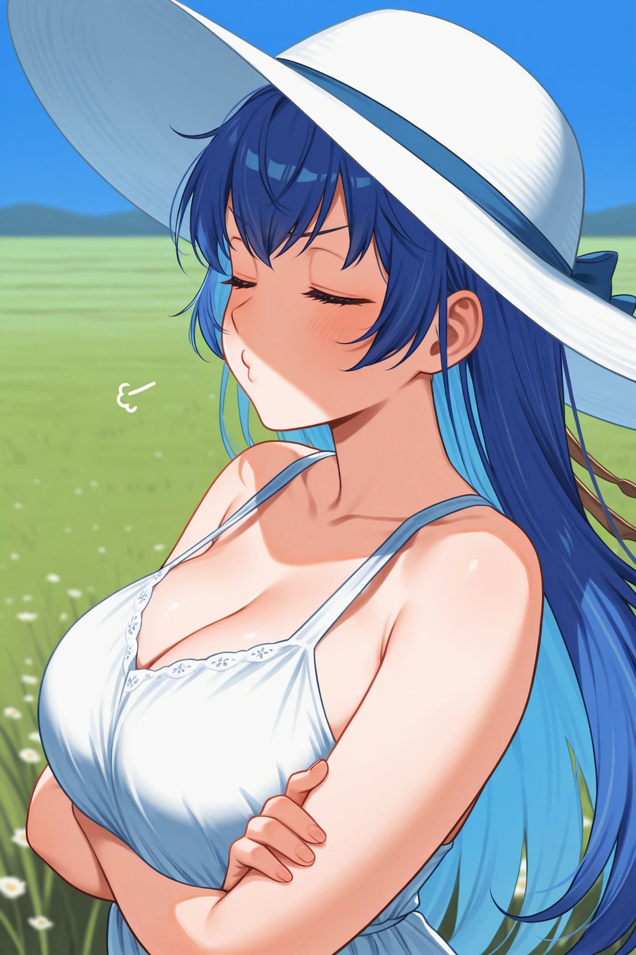 Base Appearance: long hair, blue hair, hair between eyes, hair ornament, blue eyes, blue pupils