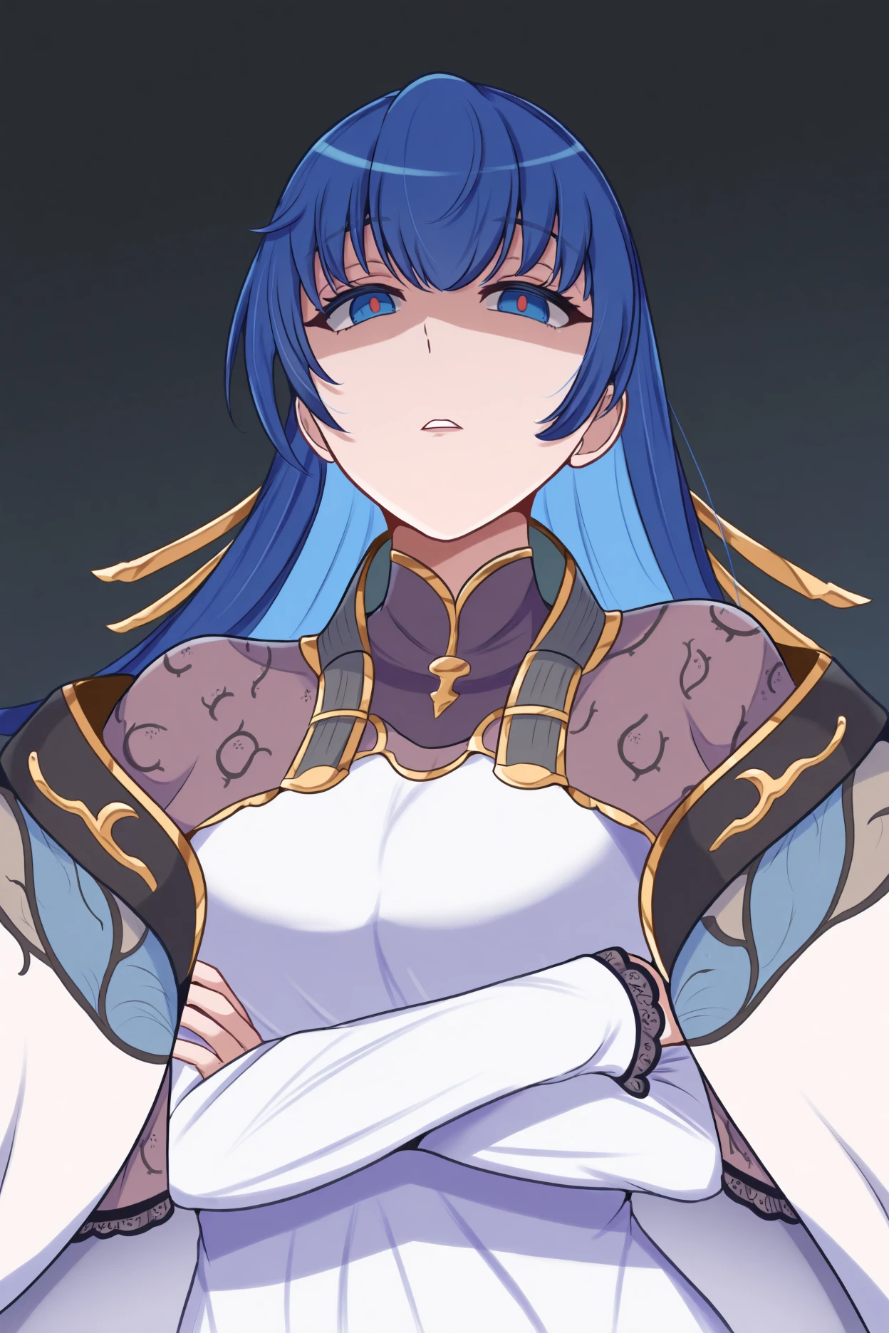 Blue pupils in positive and red pupils, right pupils in negative is most consistent but I personally think excluding the pupil stuff entirely gets closest to the in game look albeit risking red pupils showing sometimes. Medium breasts or large breasts.