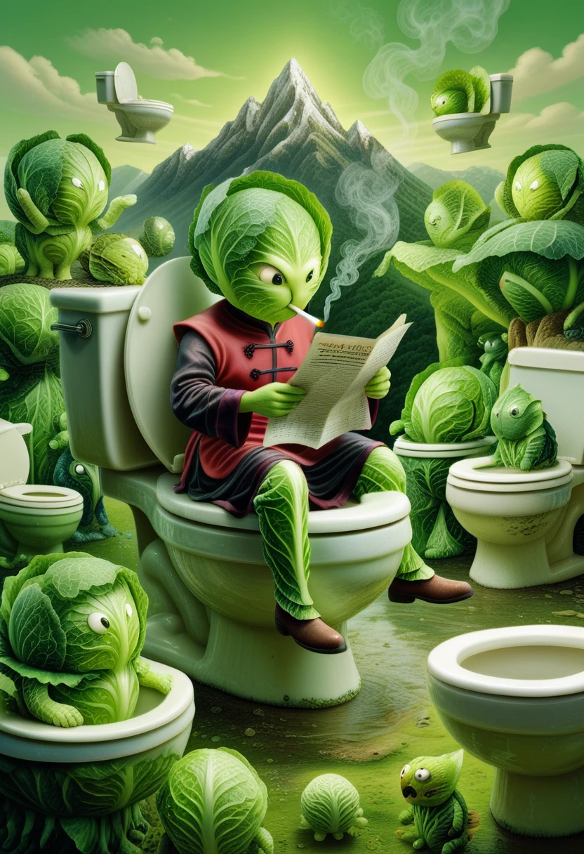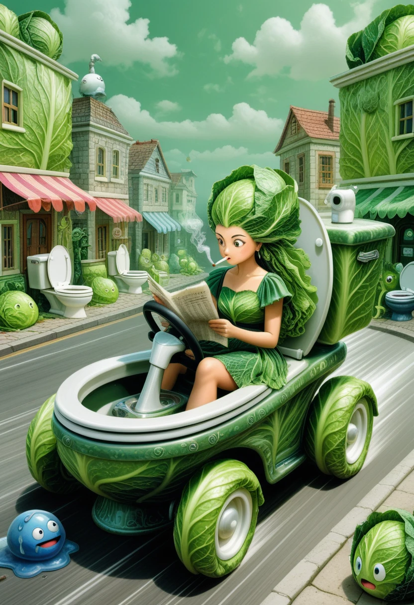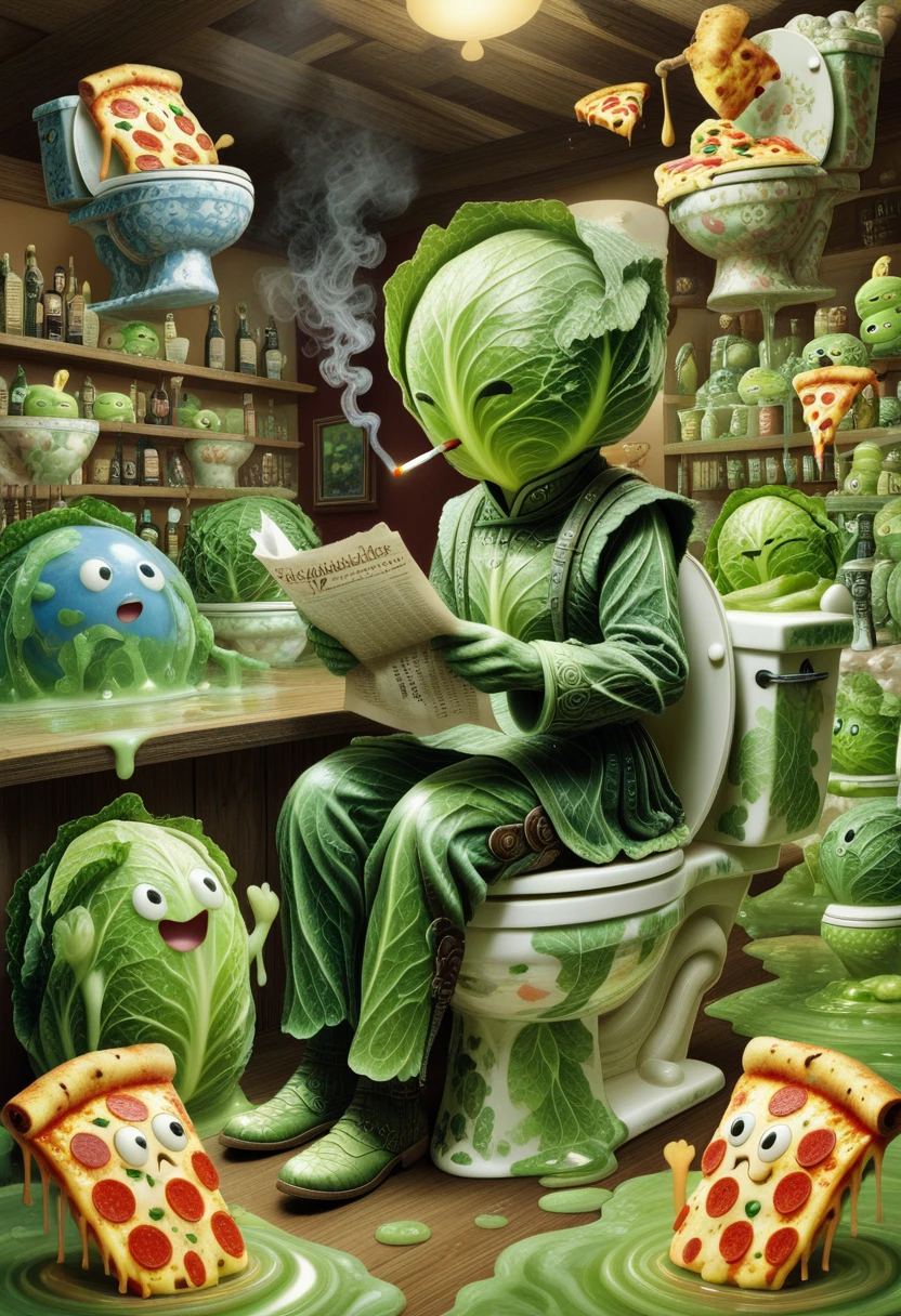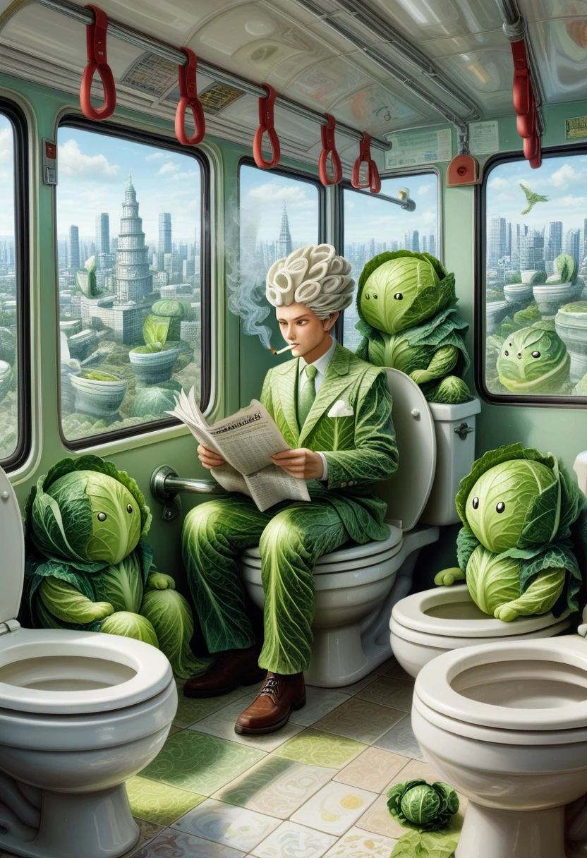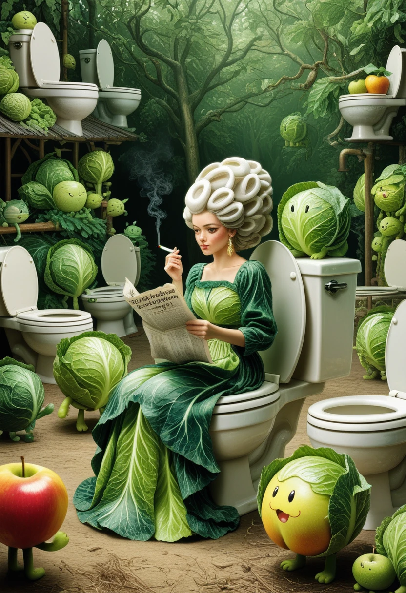 everything made of toilet bowls, with plumbing design, living toilet bowl objects, varied toilet bowl patterns surfaces, curvy edges, green-tone color palette, glossy reflective textures, glossy sheen, every surface covered in varied toilet bowl patterns, toilet bowl theme, all objects covered in varied toilet bowl patterns ,toilet bowl art, toilet bowl, entire scene is toilet bowls, toilet bowl hair