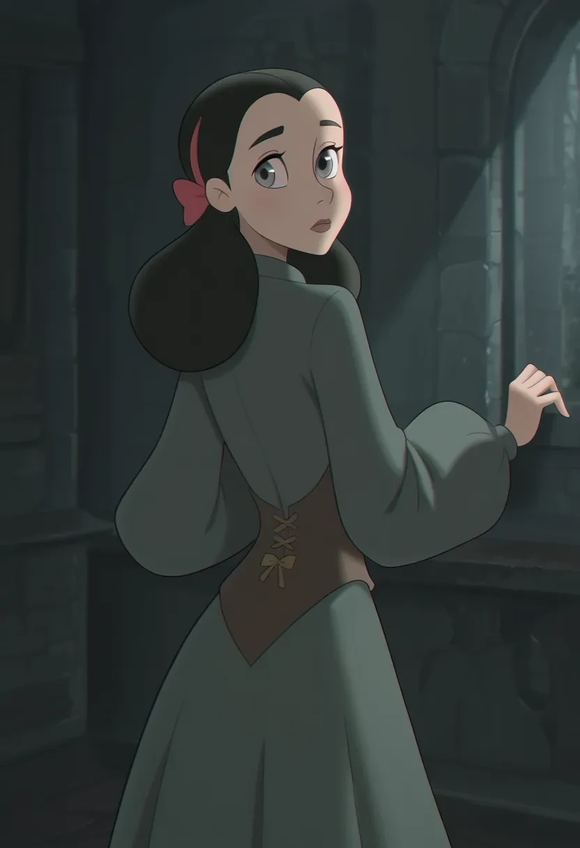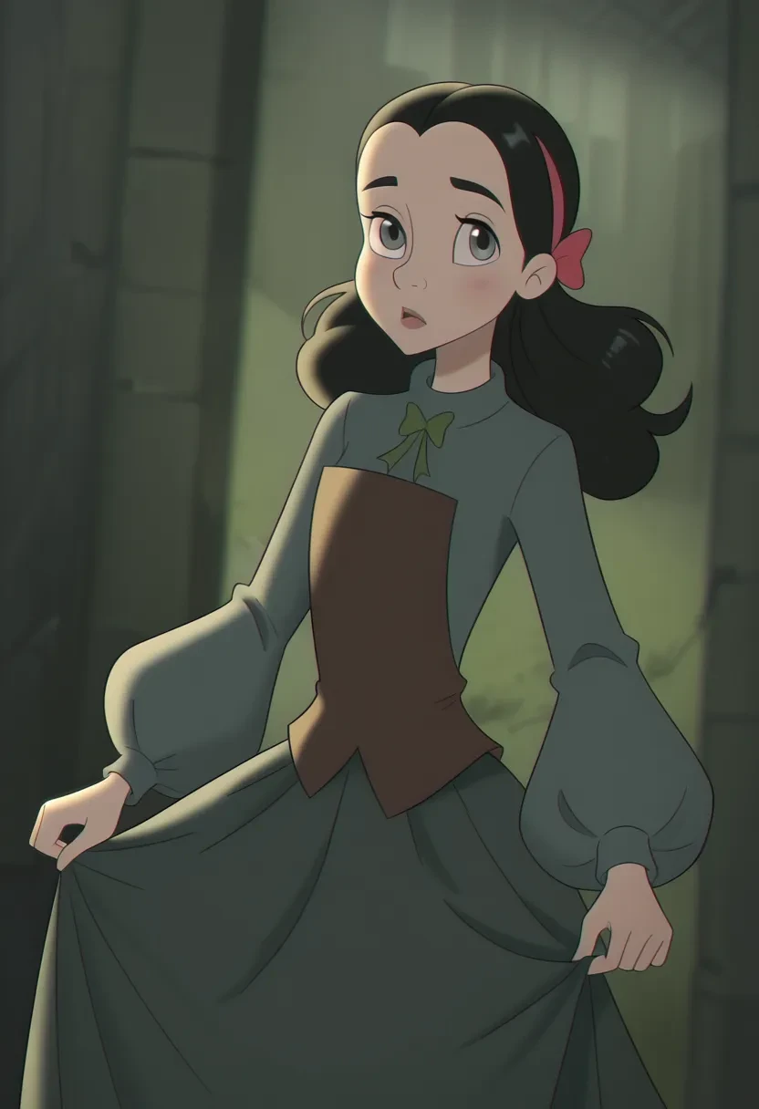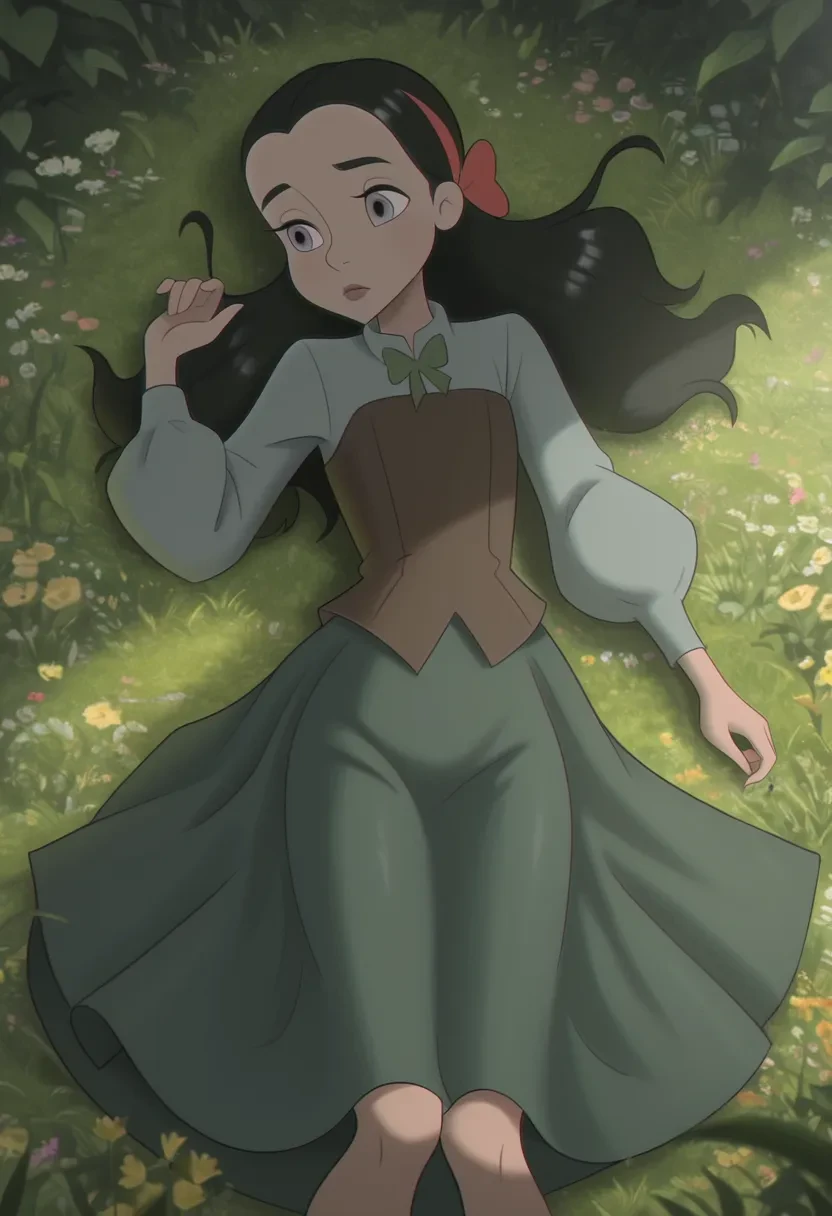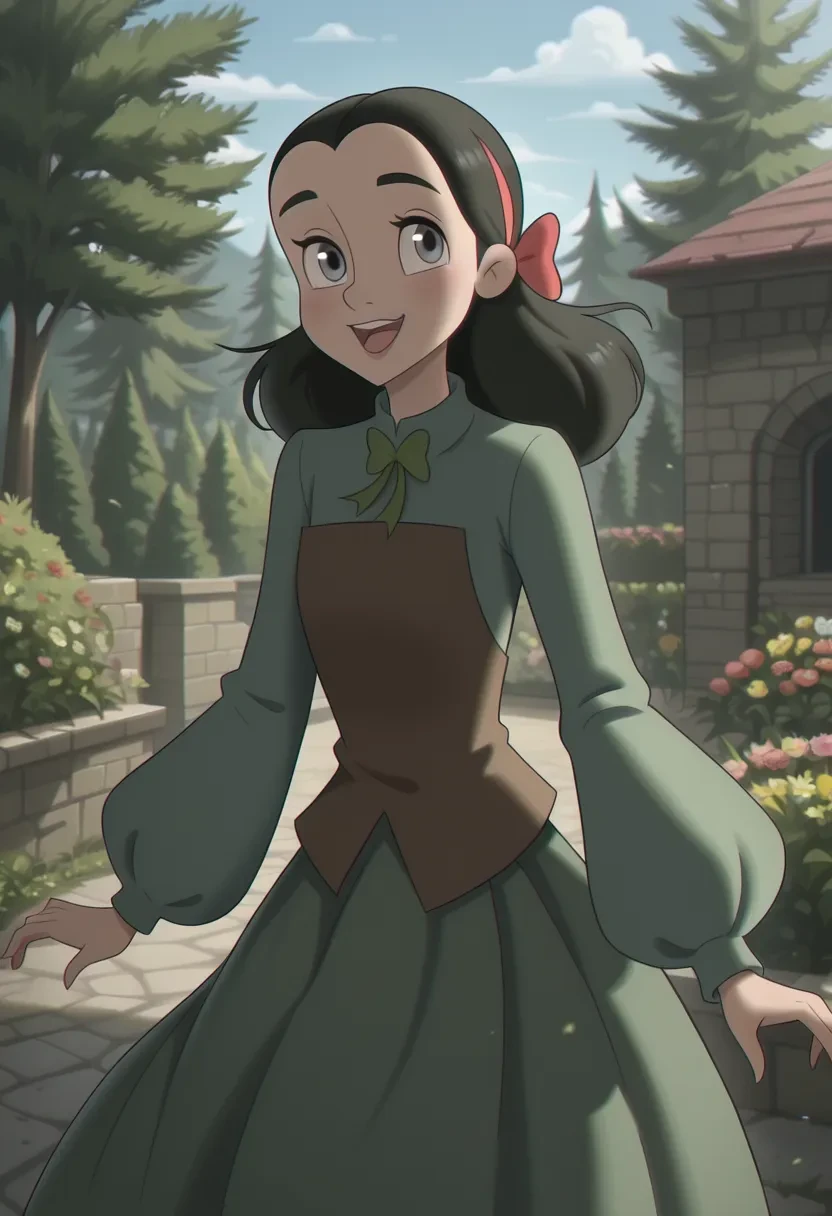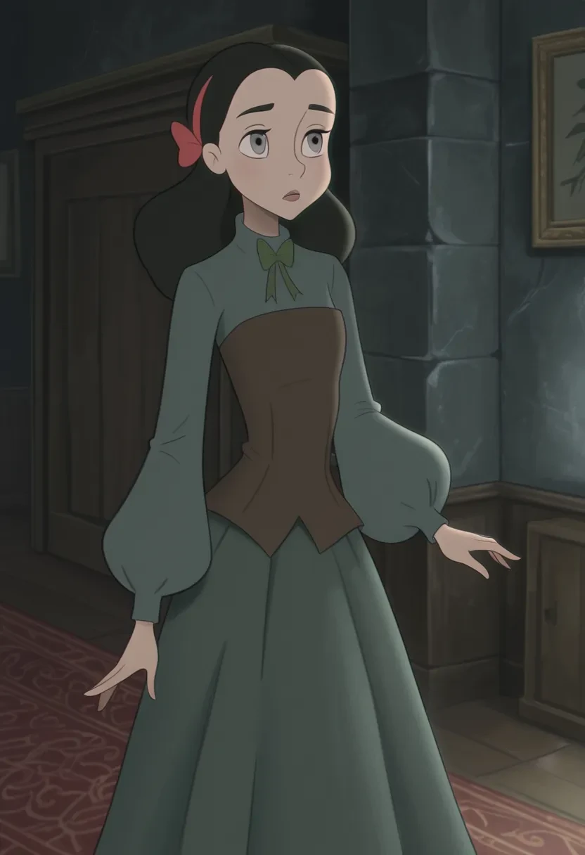 l5n4g0od, 1girl, black hair, long hair, hairband, grey eyes, hair bow, dress
