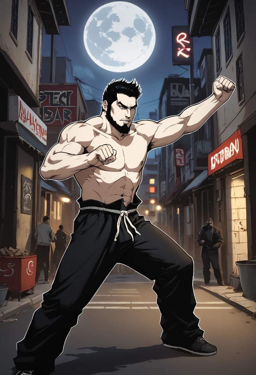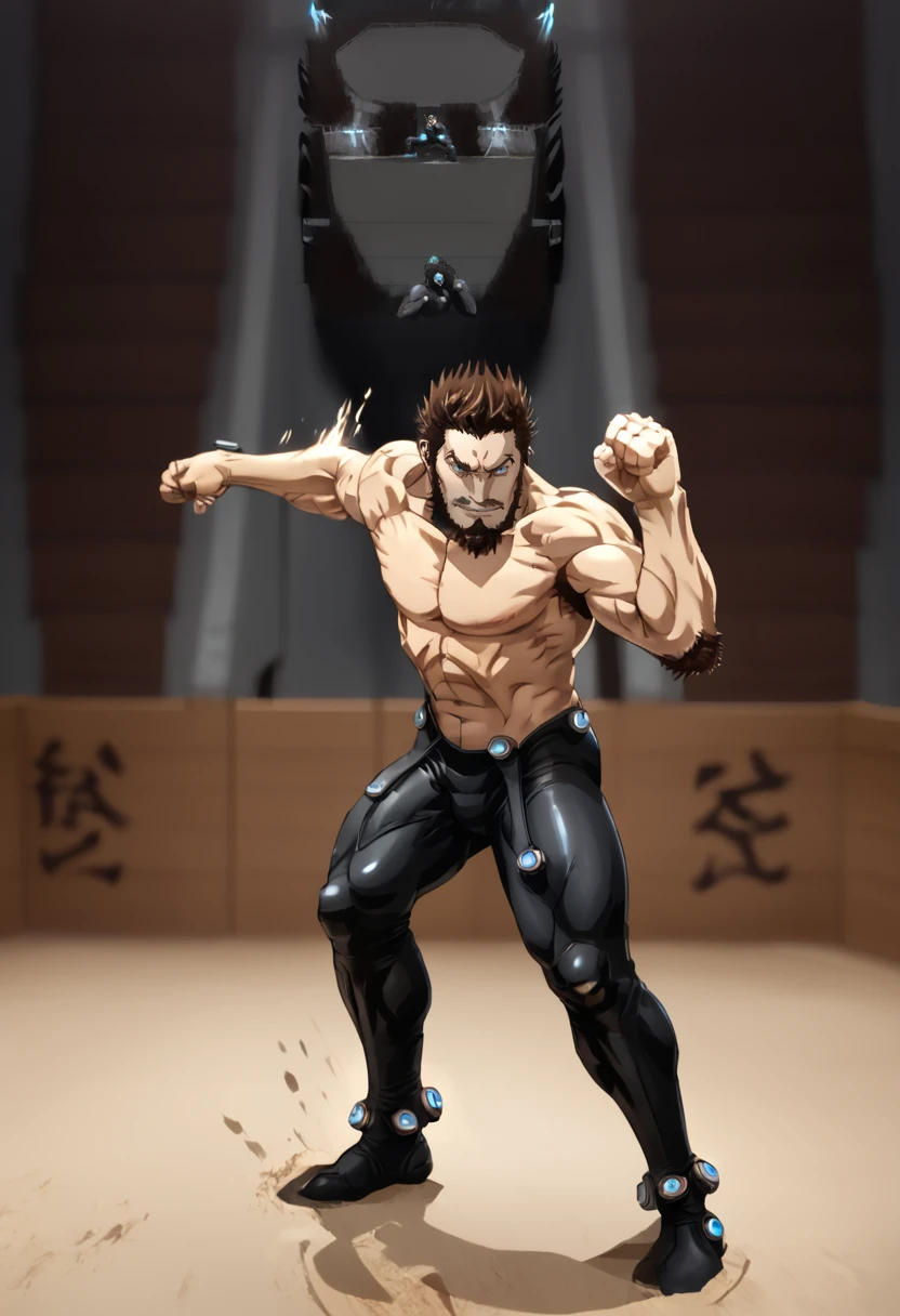 1boy, k4ze, male focus, facial hair, beard, gantz, bodysuit