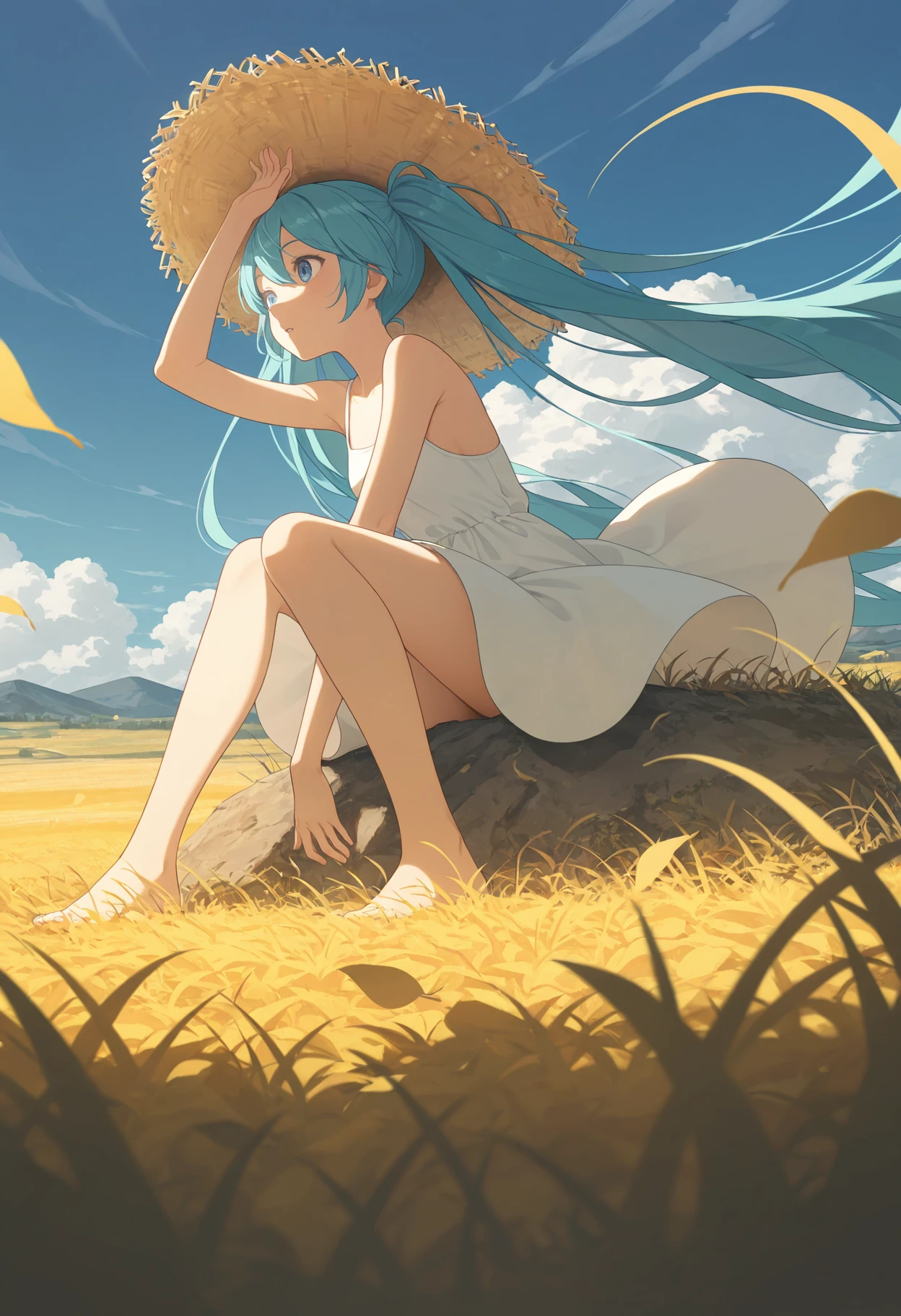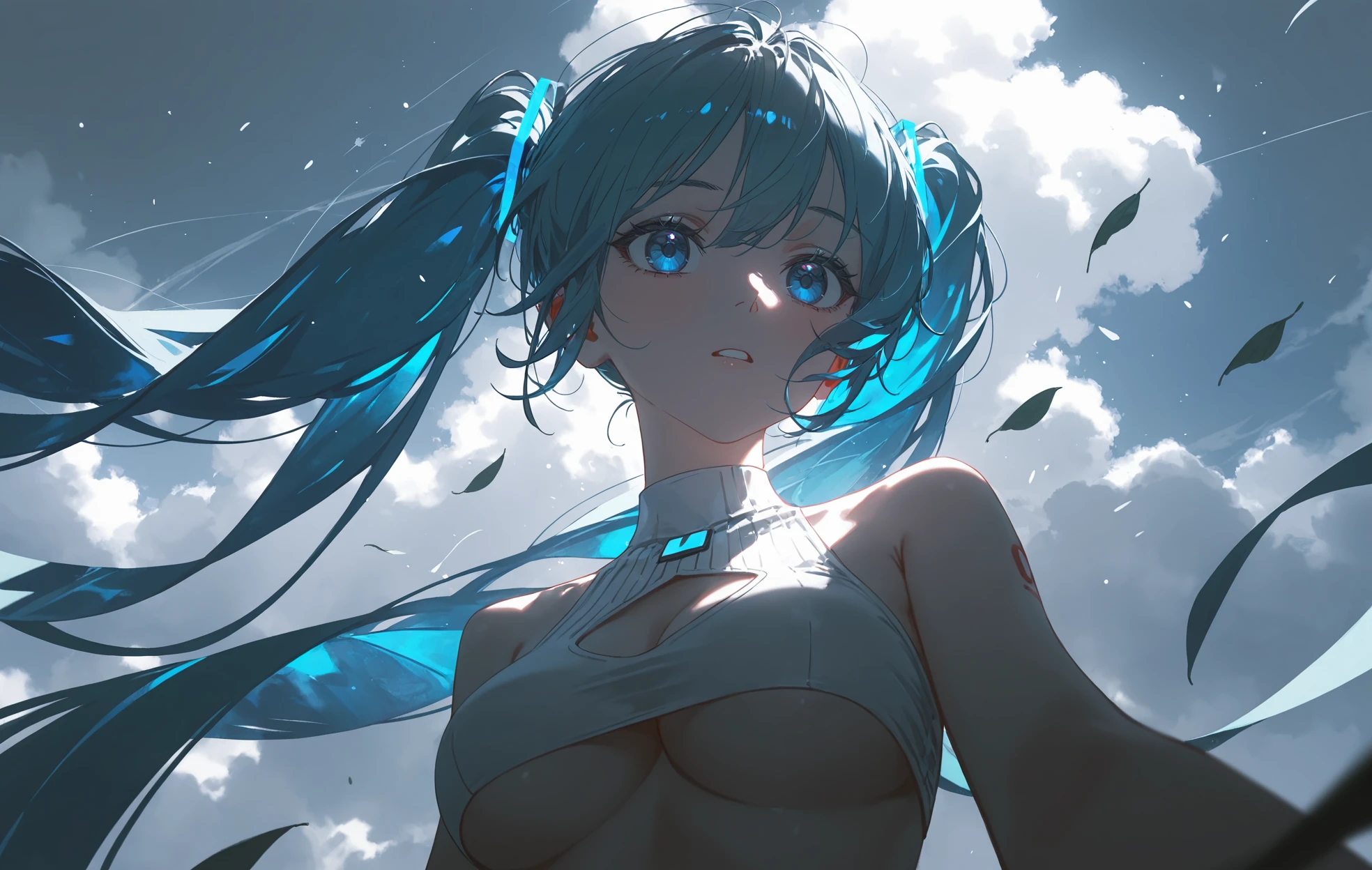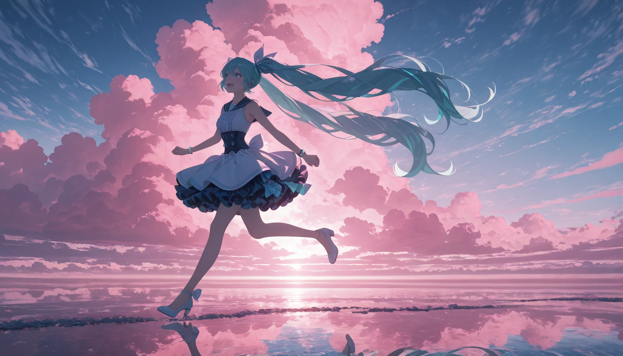 Miku,aqua hair,blue eyes,long hair,multicolored hair,twintails,