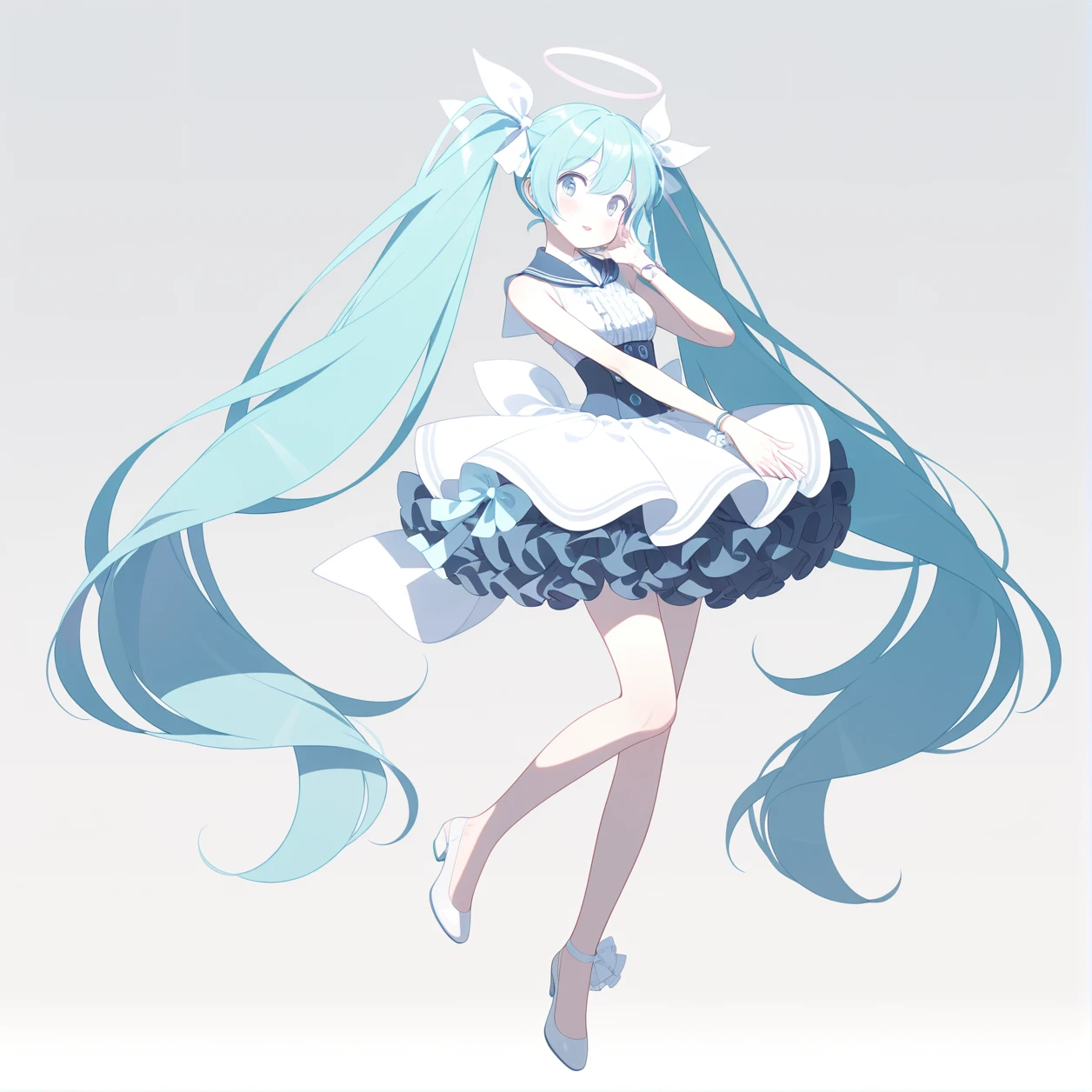 Miyifu,Mi bracelet,Mi center frills,Mi dress,hair ribbon,Mi white high heels,Mi sailor collar,sleeveless,