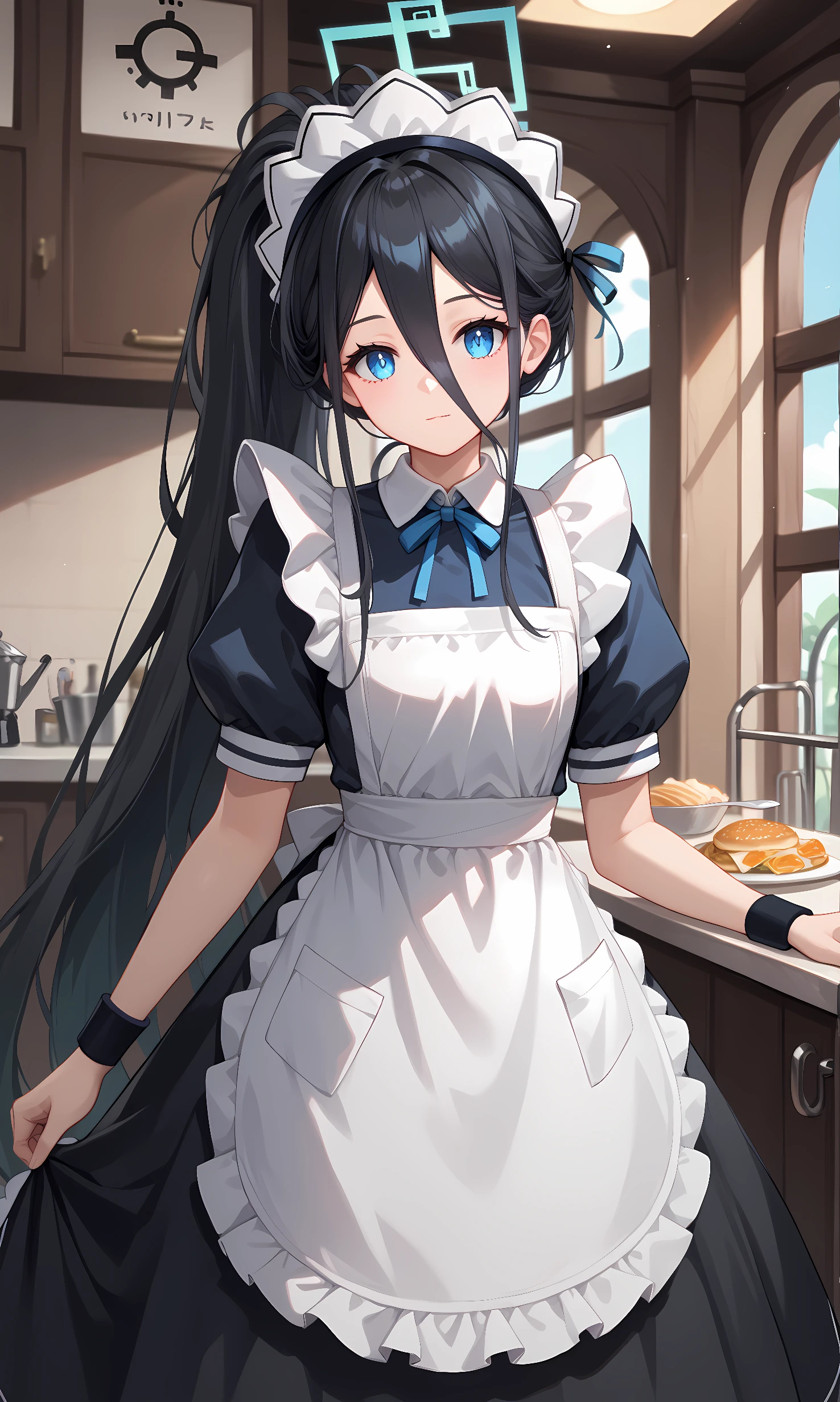 alice, blue eyes, black hair, absurdly long hair, hair between eyes, halo