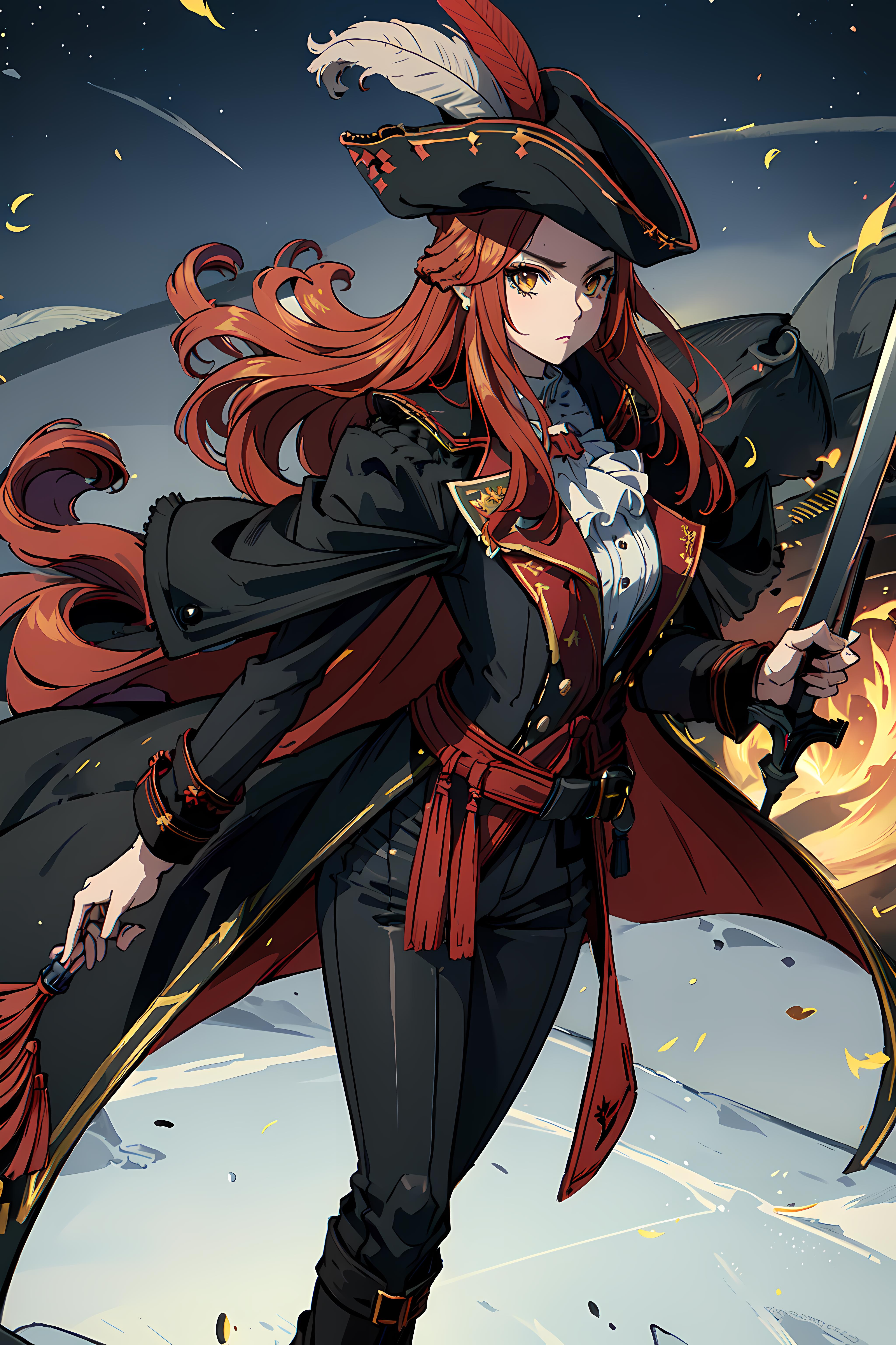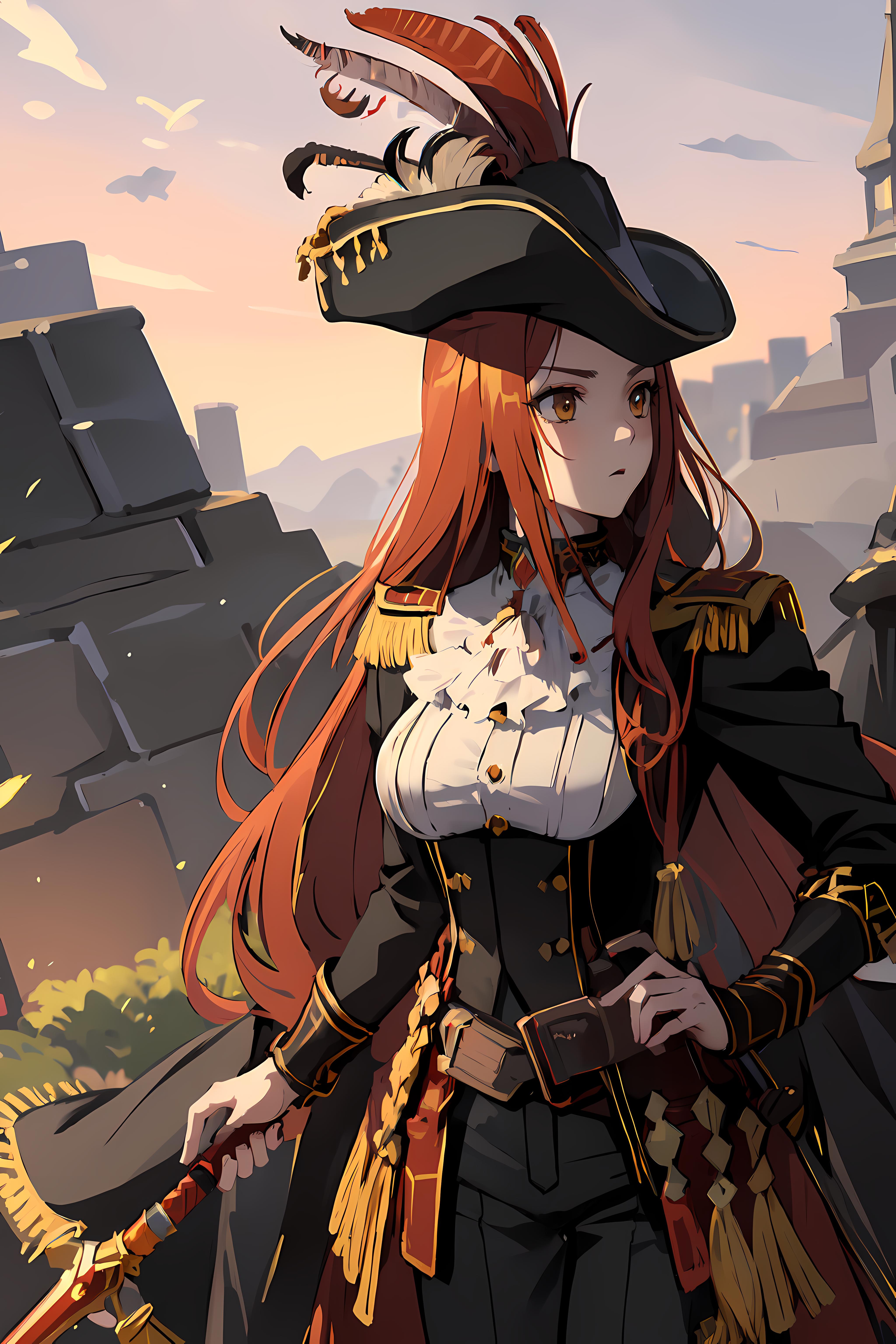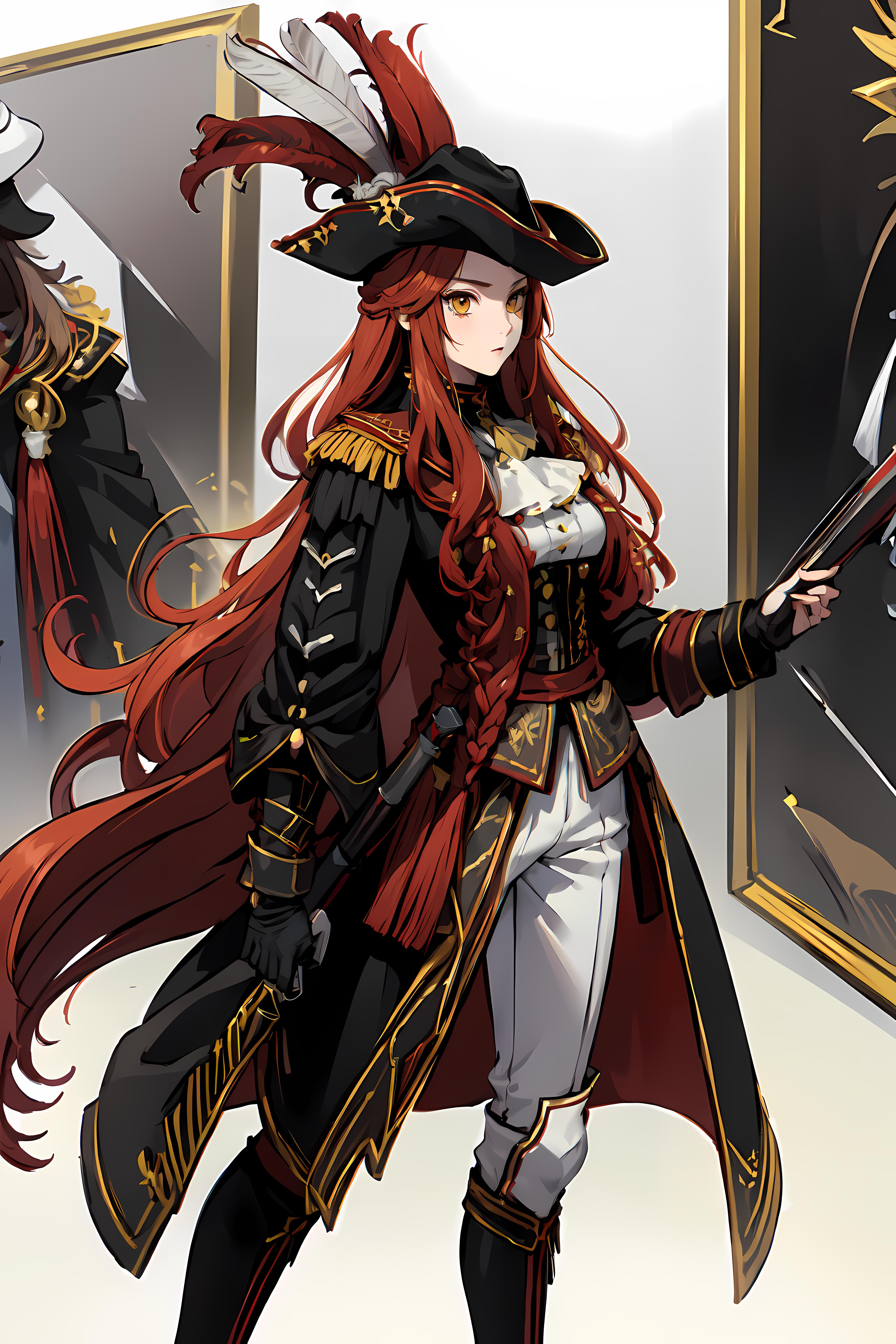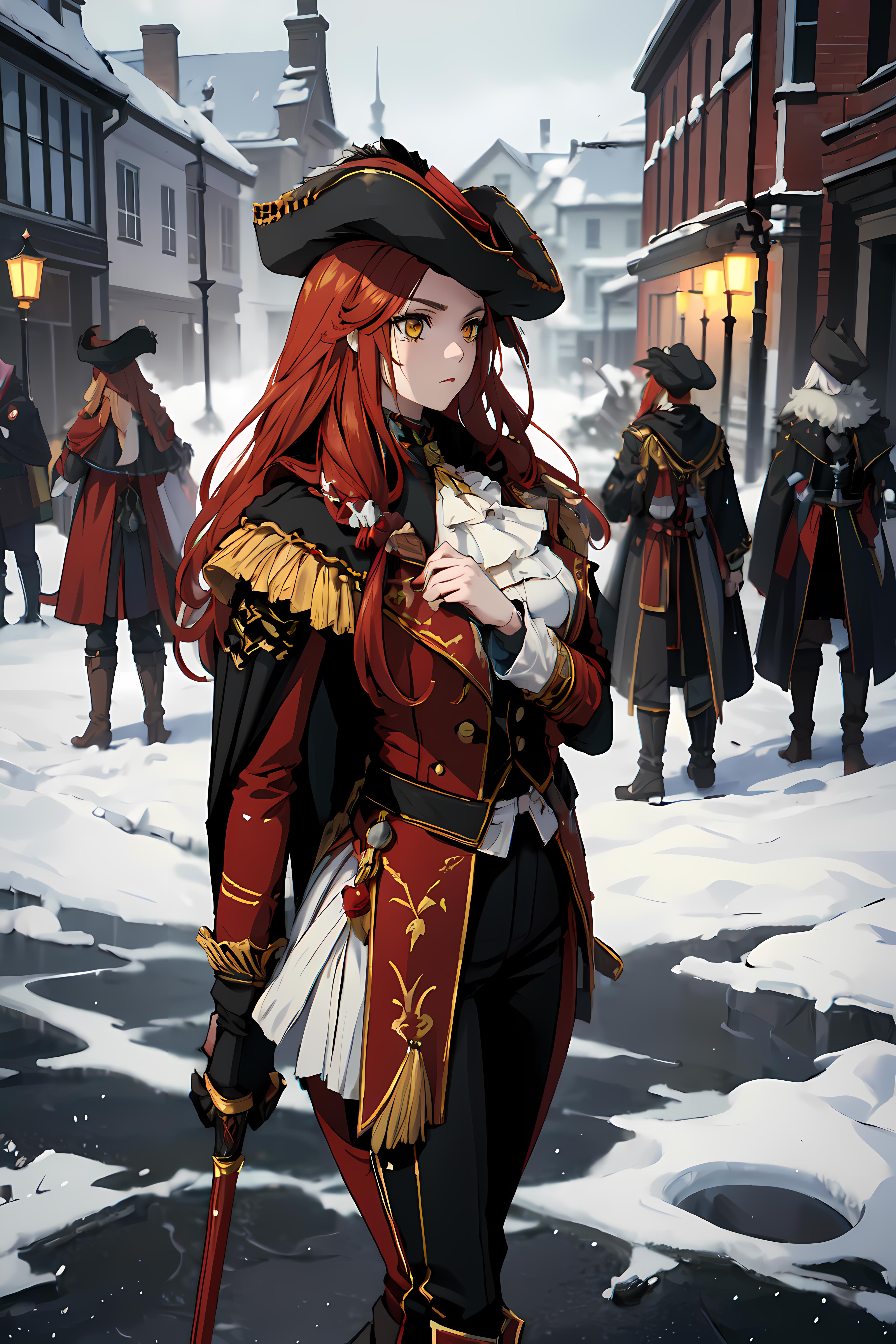 cape,coat,ascot, hat feather, uniform,tricorne,