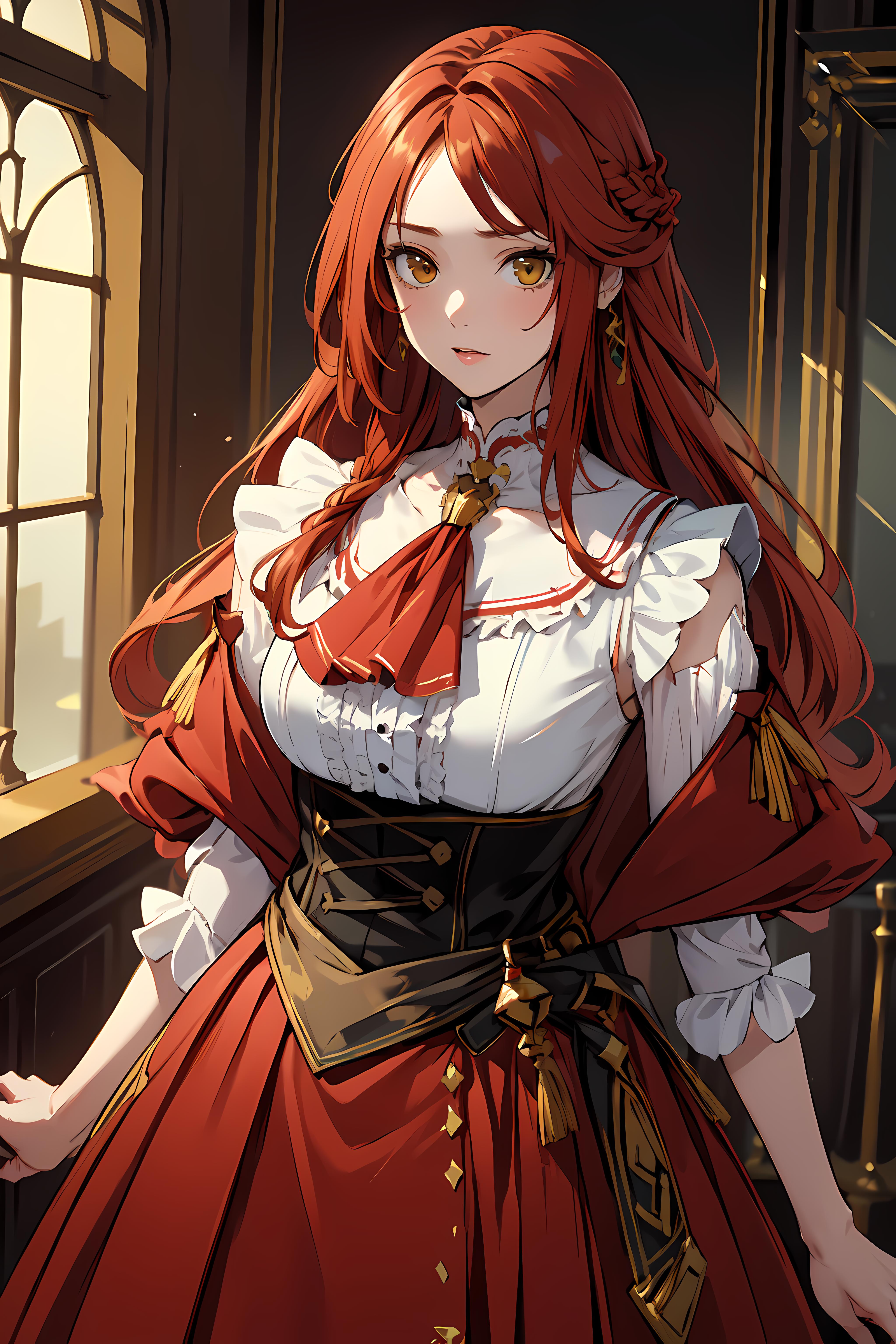 very long hair,red hair,yellow eyes,braid,1girl, Straight hair,