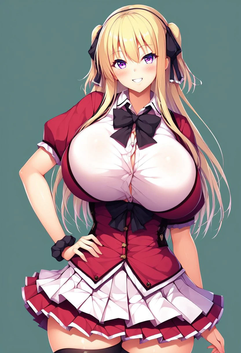 - Add huge breasts and short sleeves to the prompt to more closely resemble the heroines of the games.