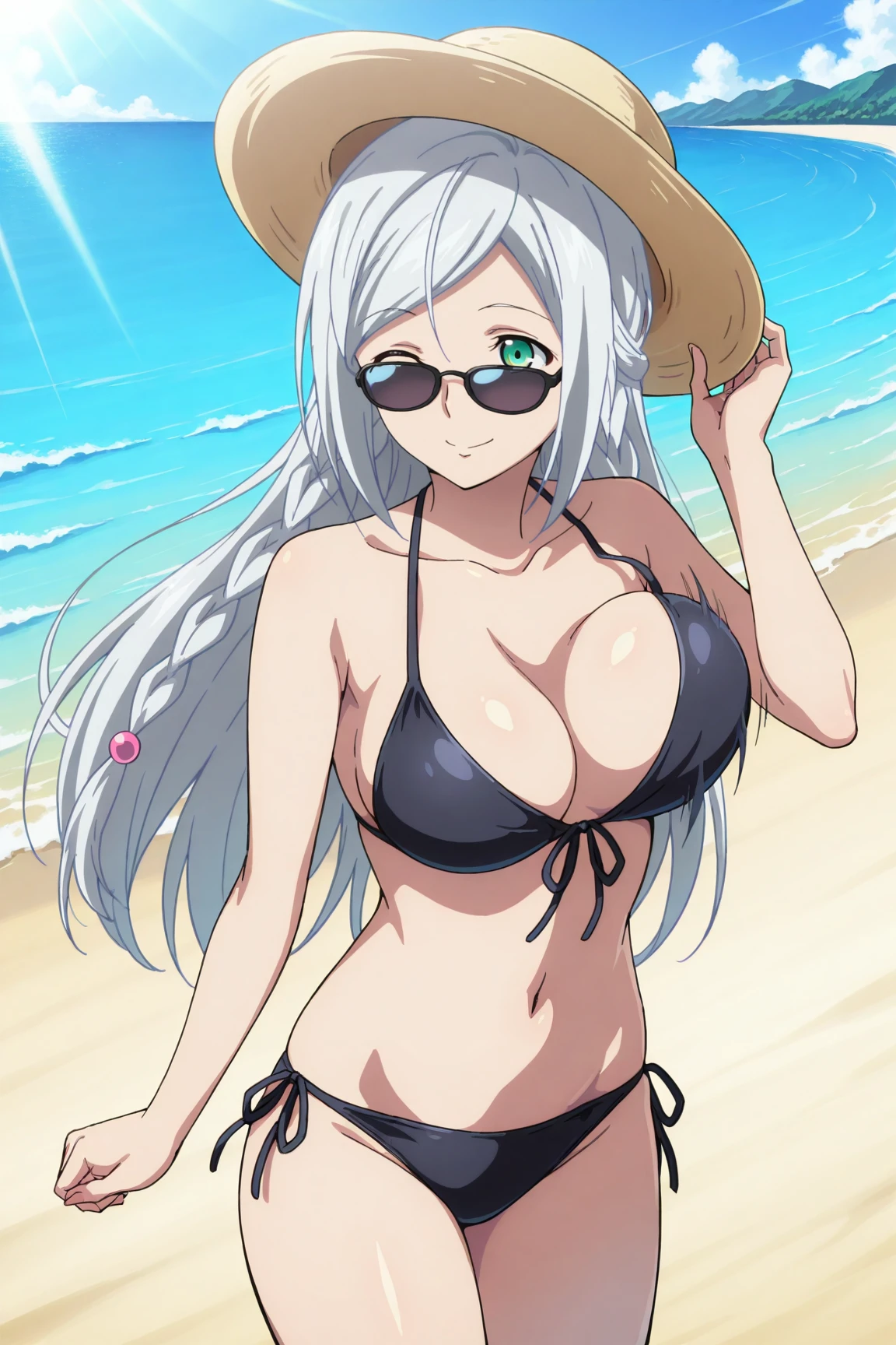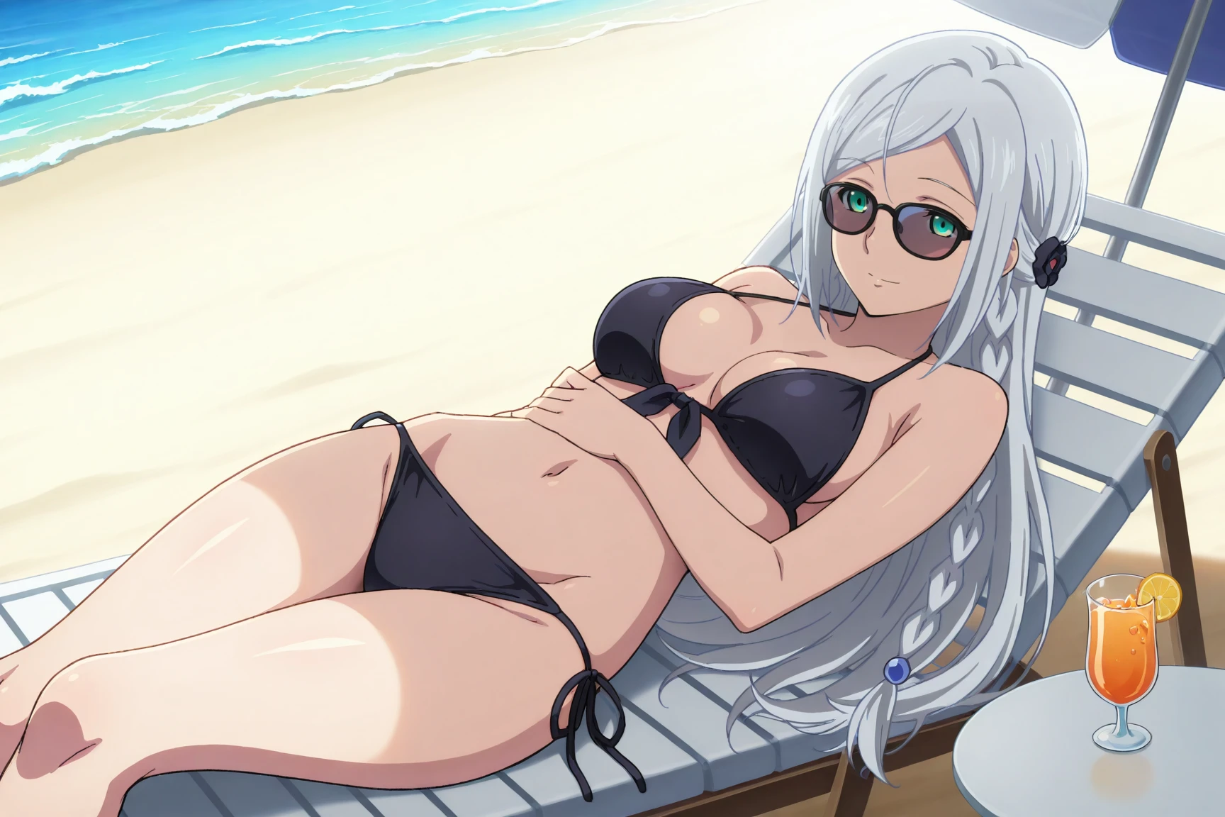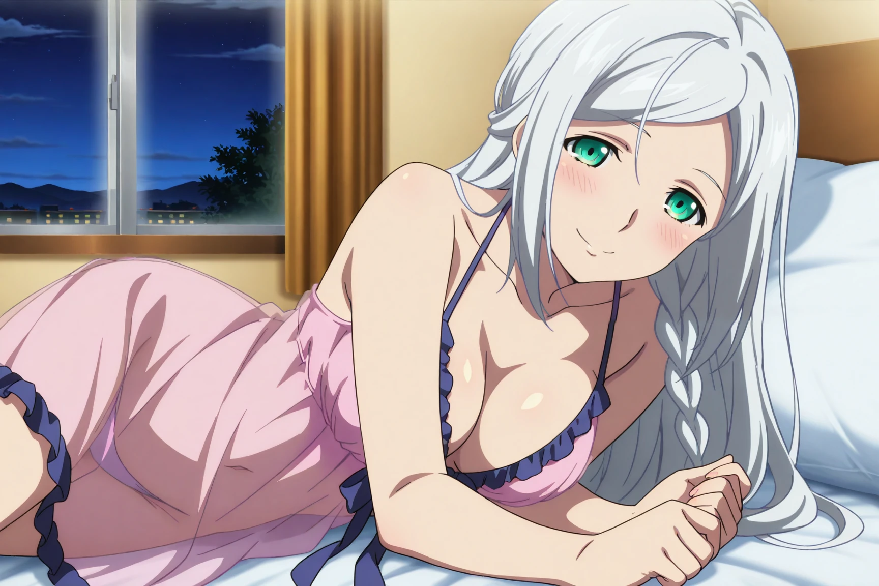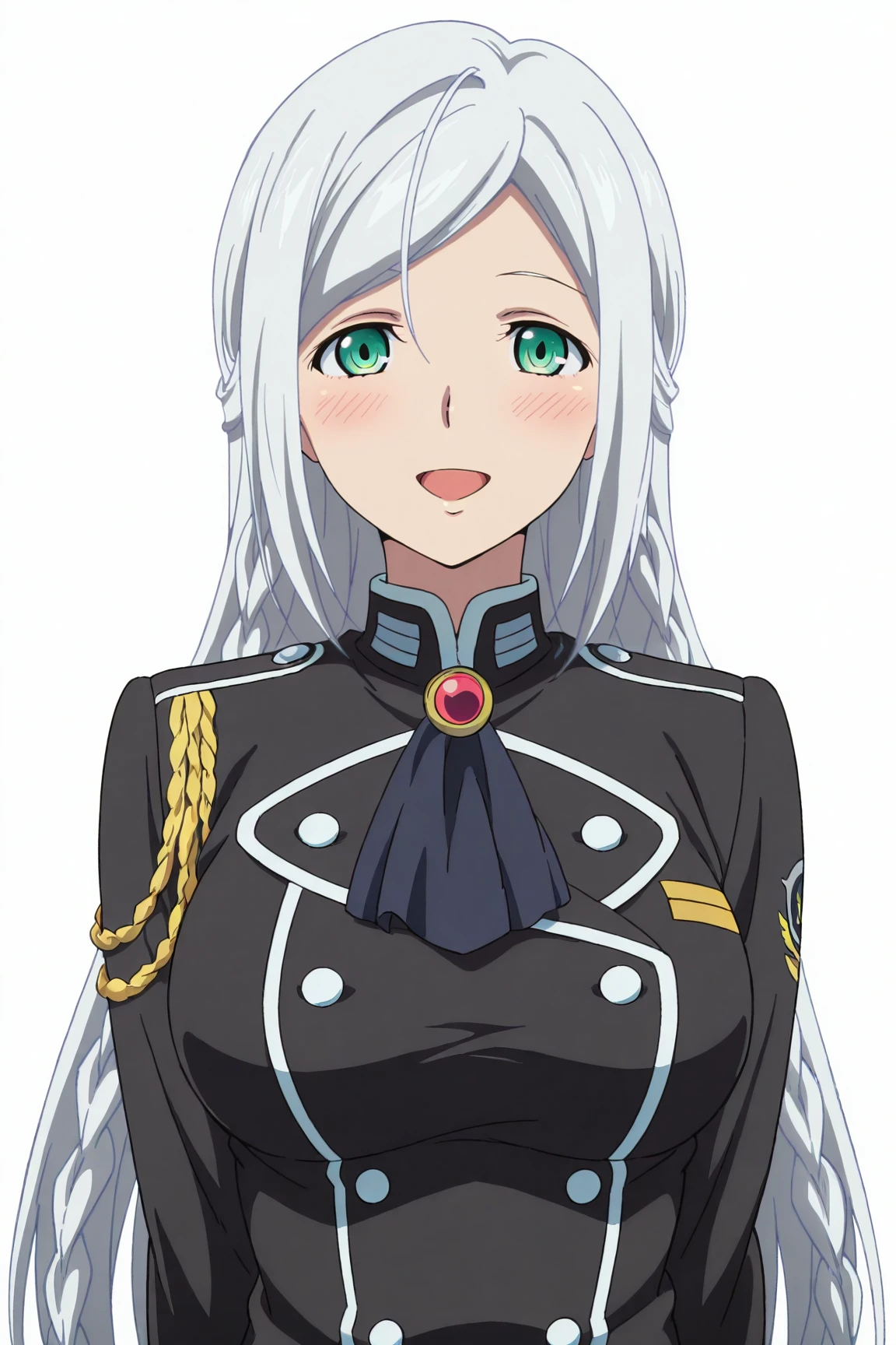 Polifonia, long hair, silver hair, swept_bangs, side_braid, green eyes, anime_coloring