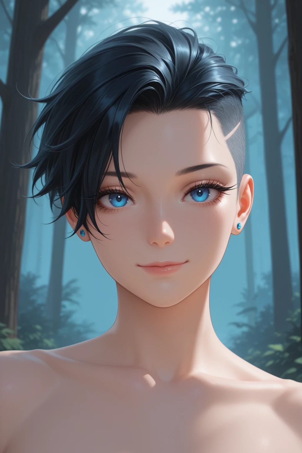 Jacky - Fair skin, Blue eyes, Long Eyelashes, black hair, undercut, Slim body, Flat Chest, Balanced hips, Natural Fingernails,