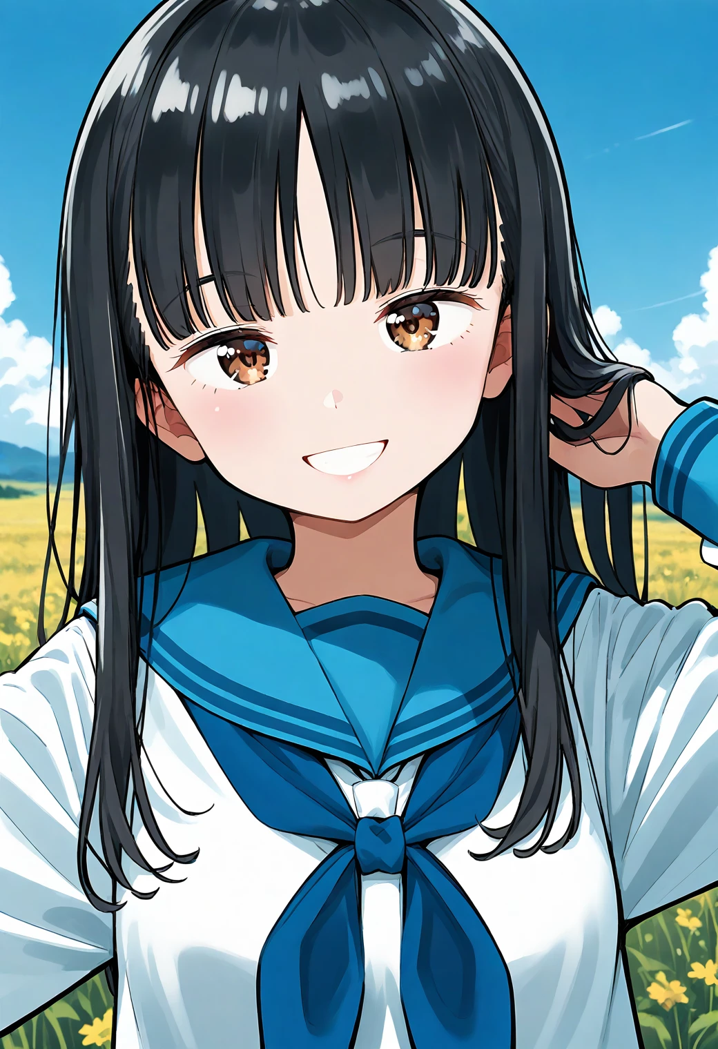 Trigger word: yuzuki_kaede, brown eyes, black hair, long hair, bangs,