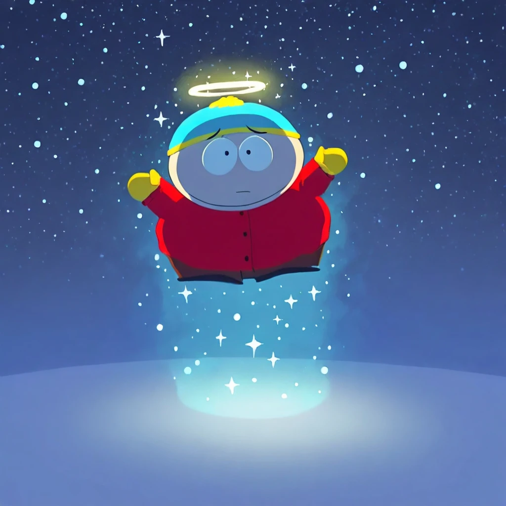 ericcartman_il, light skin, 1boy, fat, blue beanie, red jacket, closed jacket, brown pants, yellow mittens, black eyes