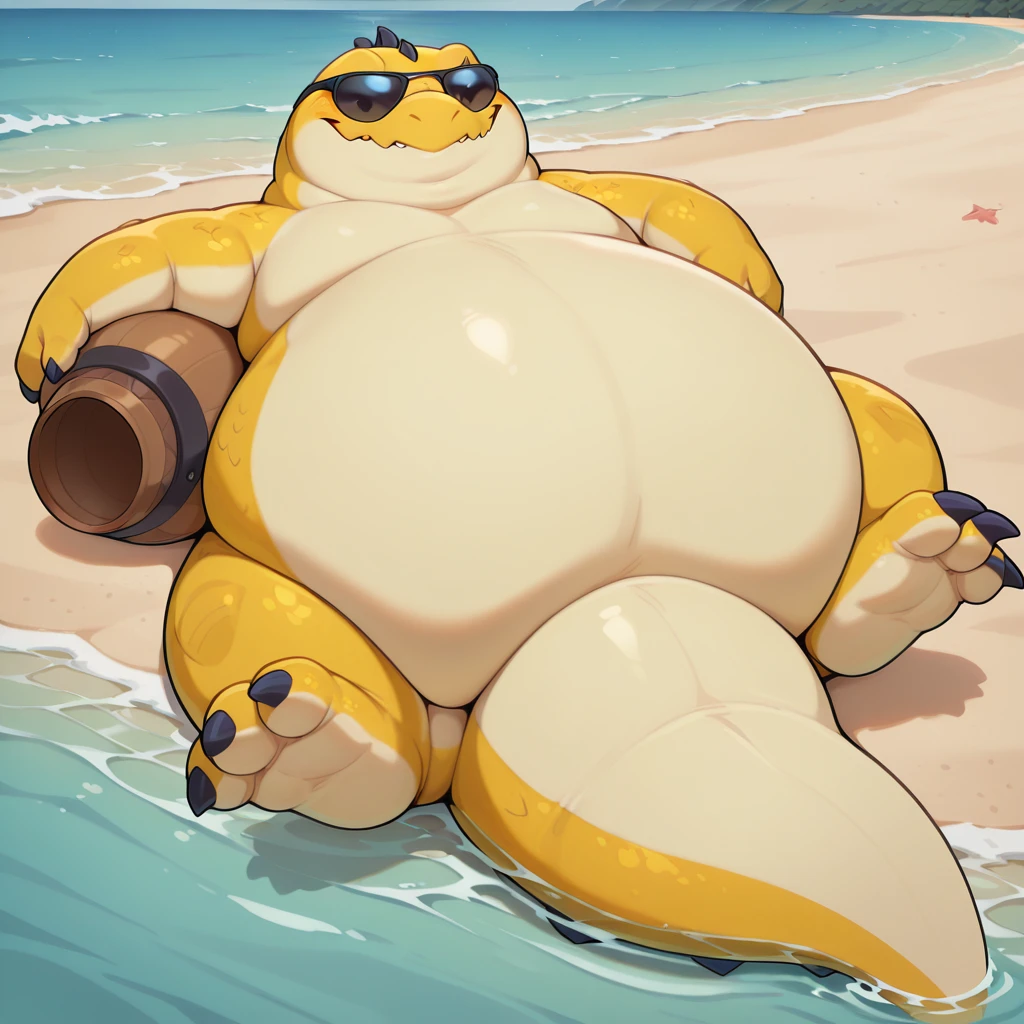 Jargon: (jargon, yellow skin, dragon, fat, obese, carrying jar, spikes, stubby, pudgy, three toes)