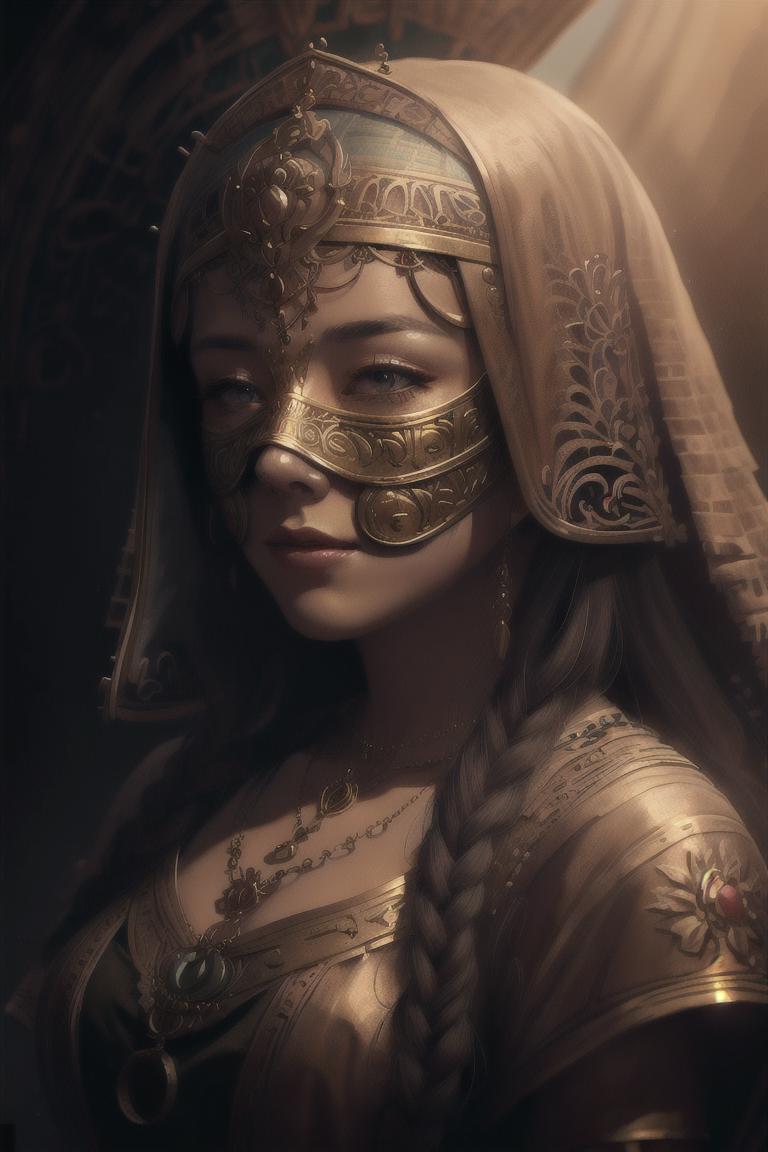 Use at full strength to add an intricate blind mask to your character. Lowering the strength seems to expose more of the face and sometimes adds matching accessories such as headbands or hair clips. Test also show that styling details of the mask are sometimes carried into other elements, commonly other articles of clothing.