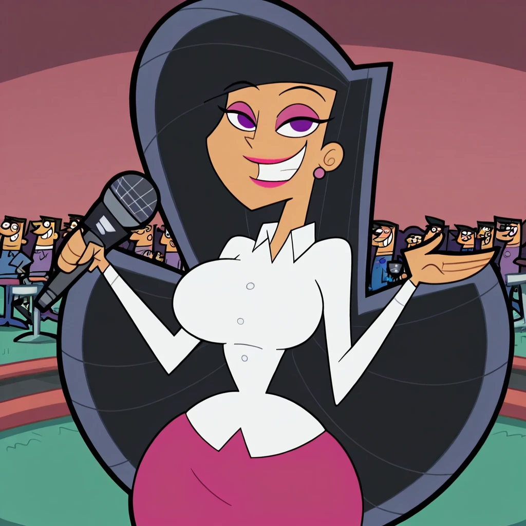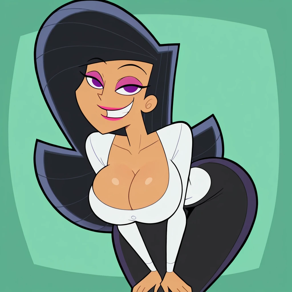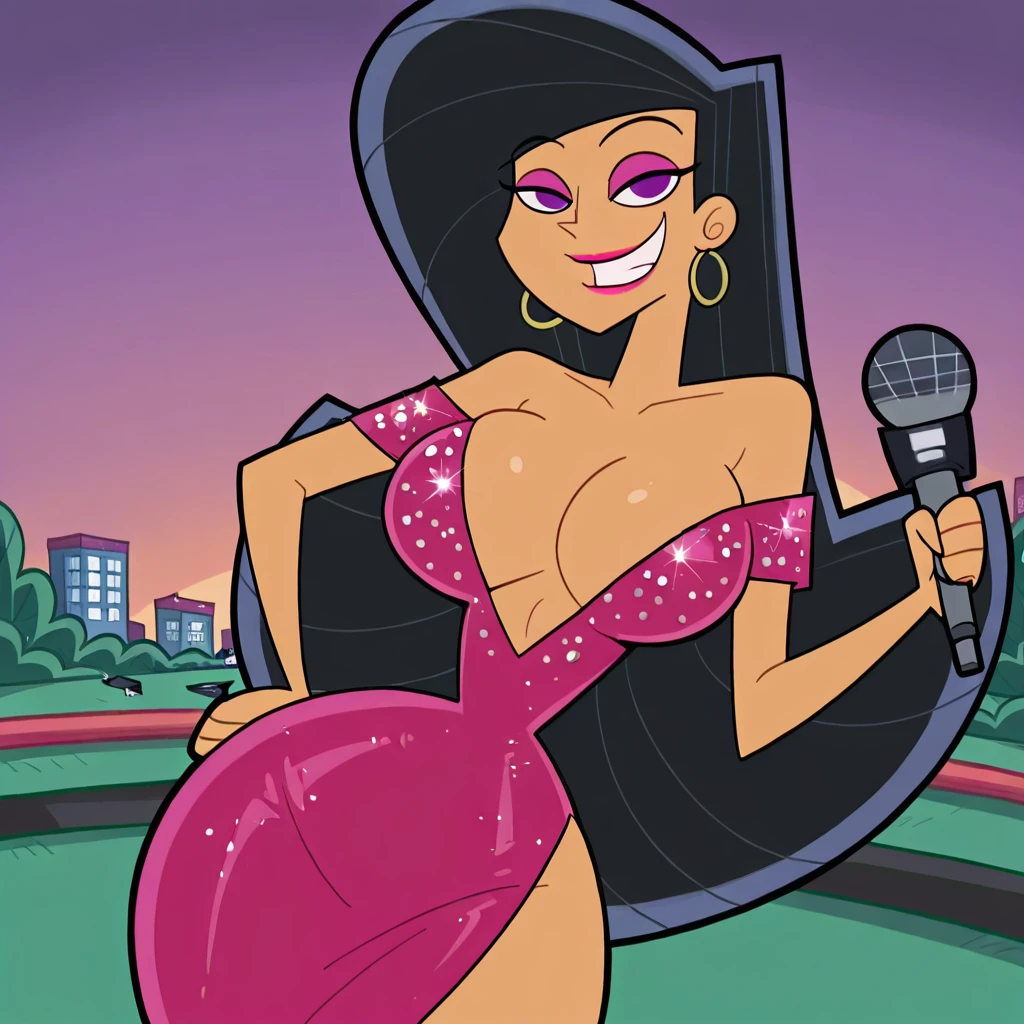 1girl, Christie, black hair, long hair, purple eyes, eyeshadow, lipstick, earrings