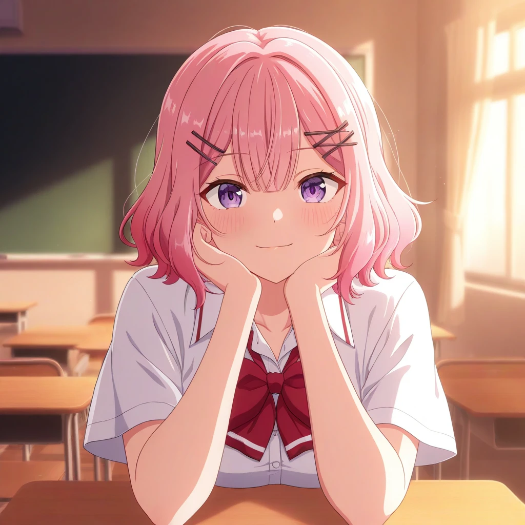 Trigger words: amaori_renako, pink short hair, purple eyes