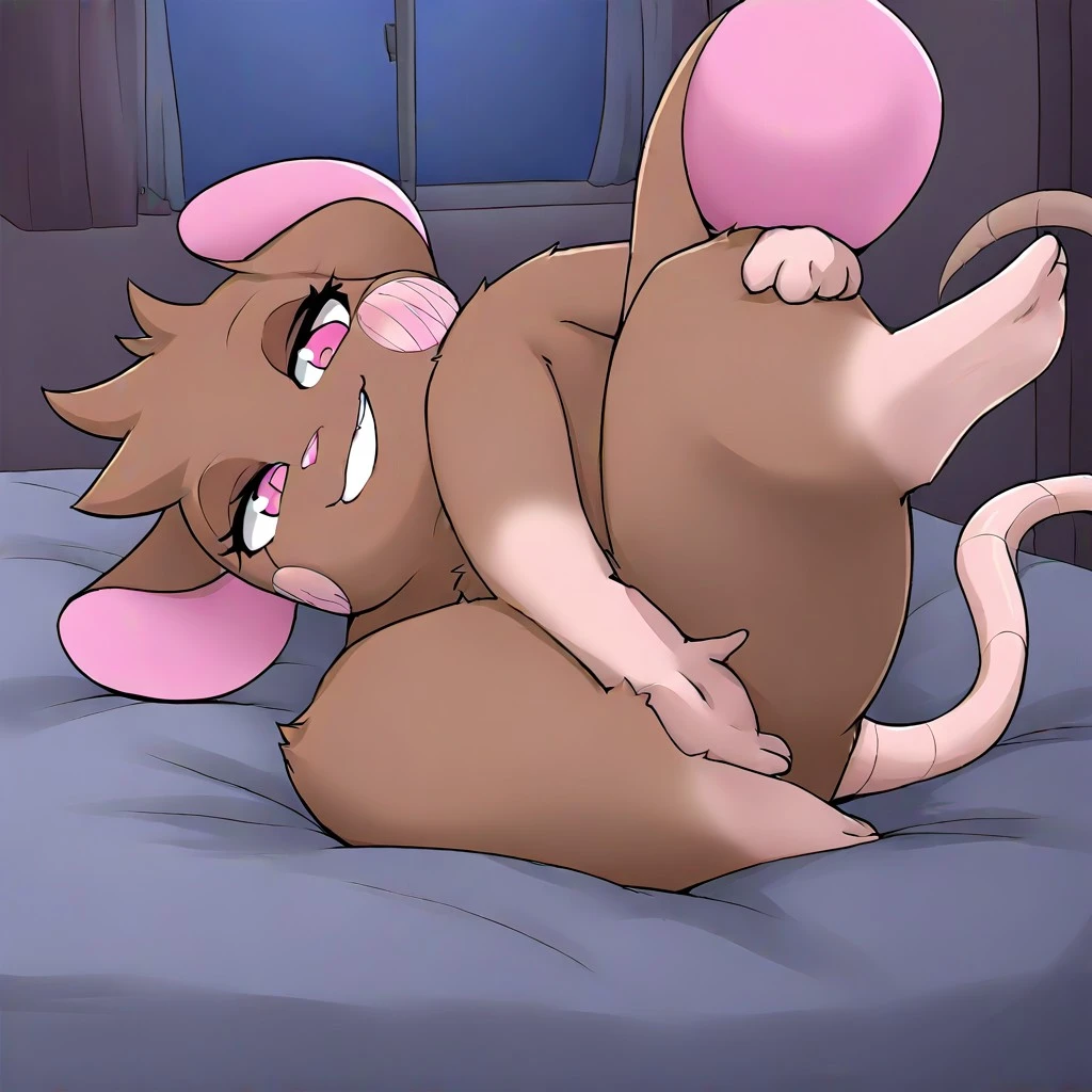 mouse, mouse girl, brown fur, pink eyes, mouse ears, pink cheeks, pink nose, mouse tail, pink hands, pink feet,