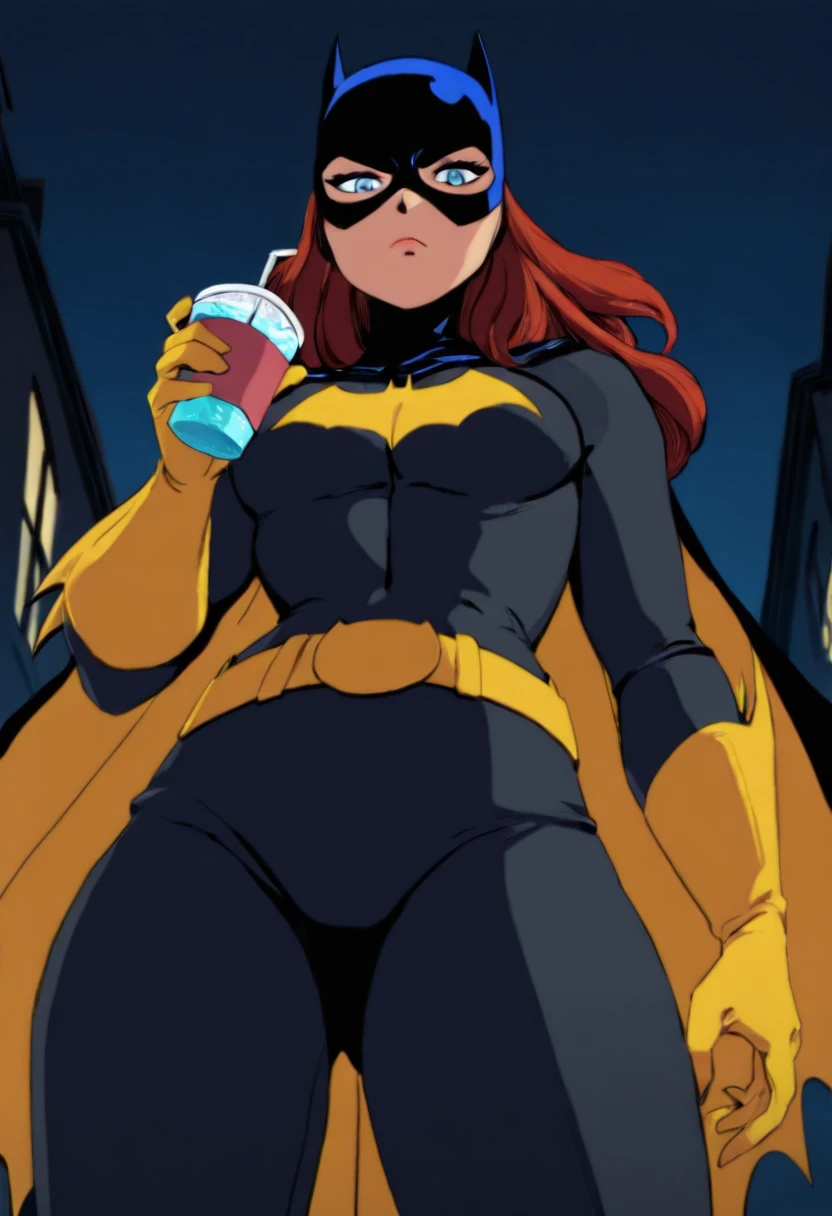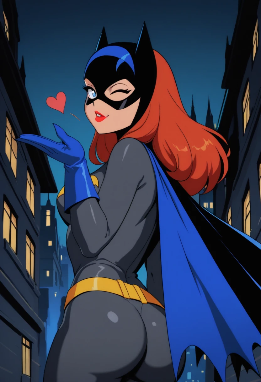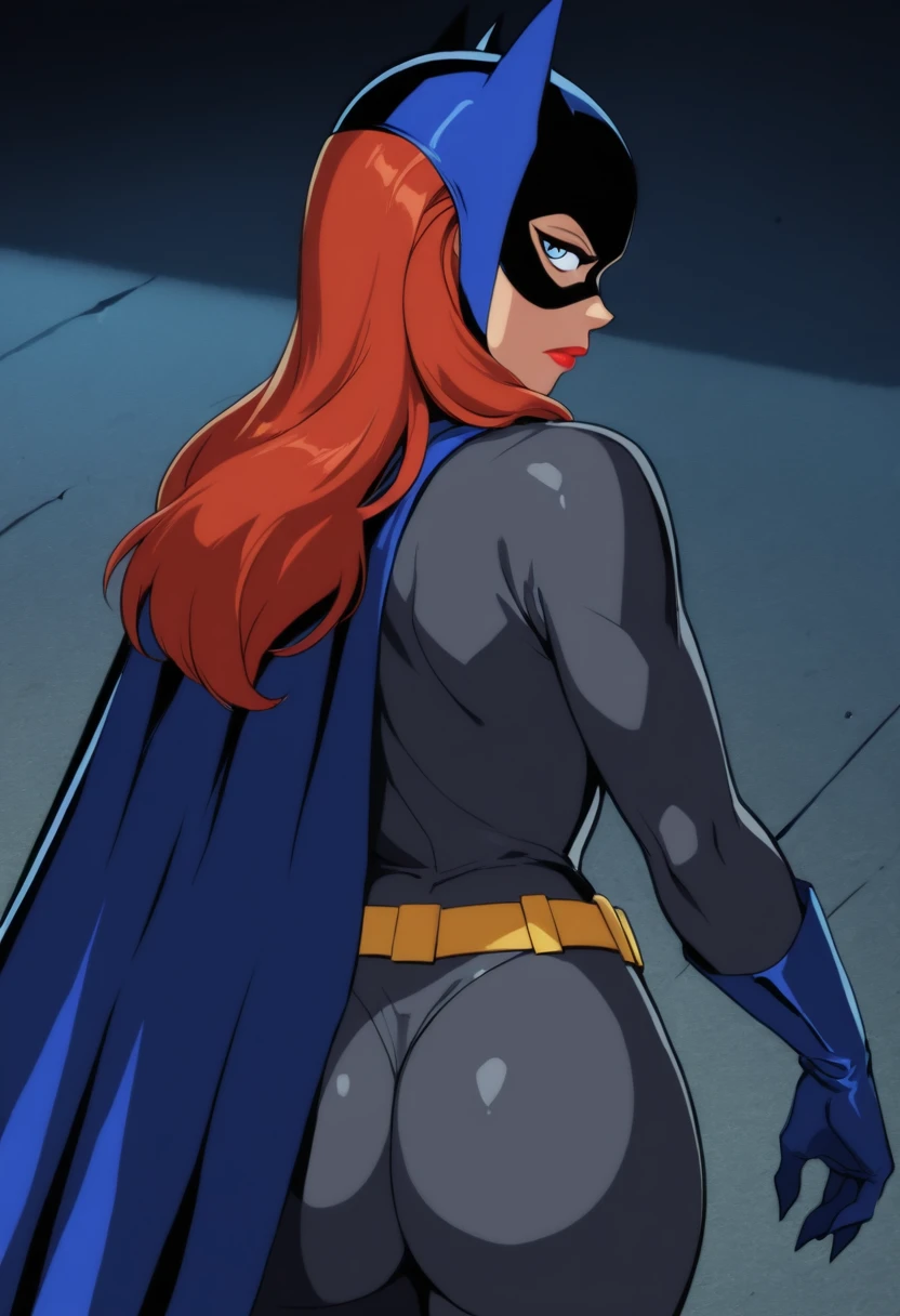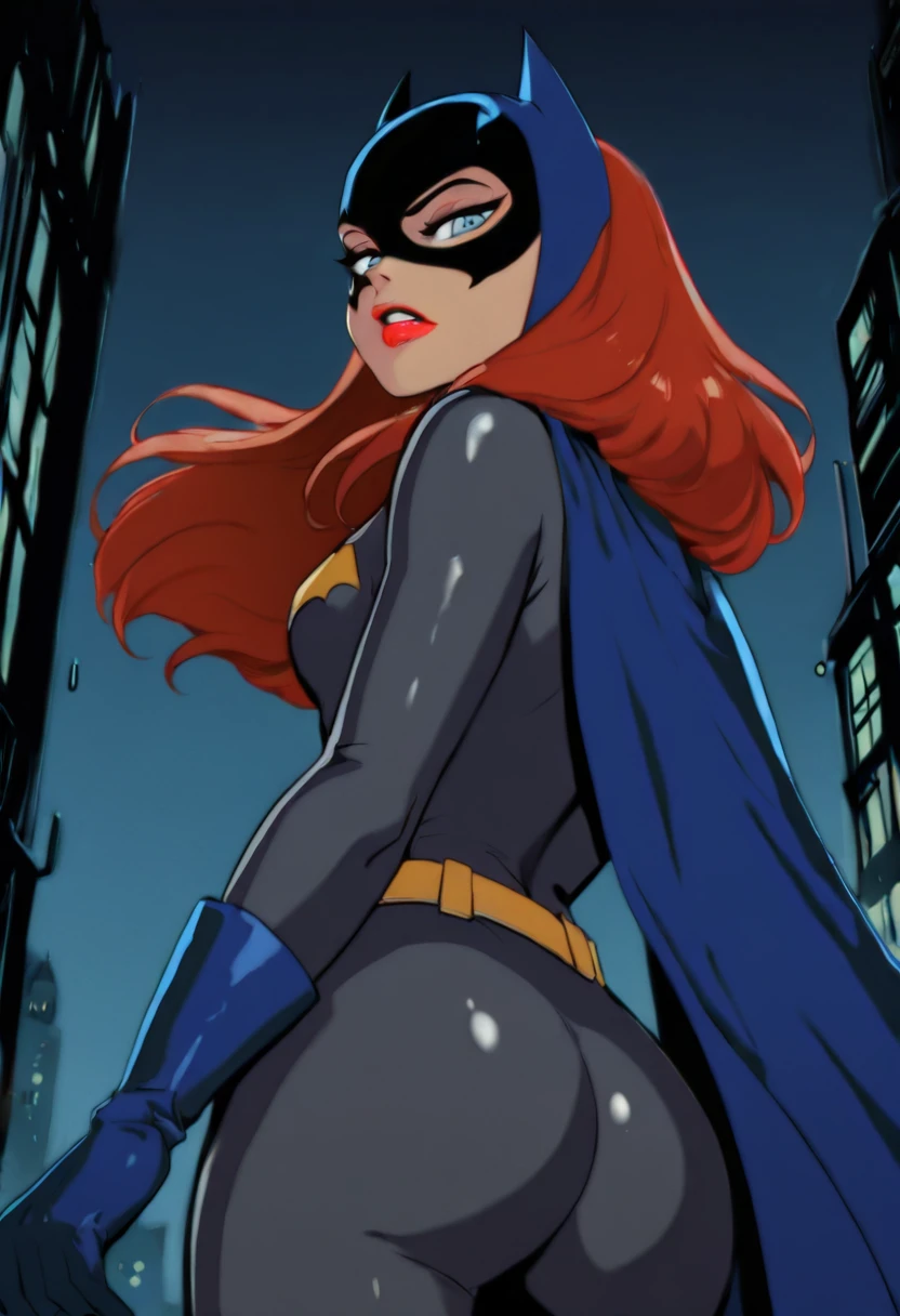 batgirl,orange hair,long hair,blue eyes,red lips