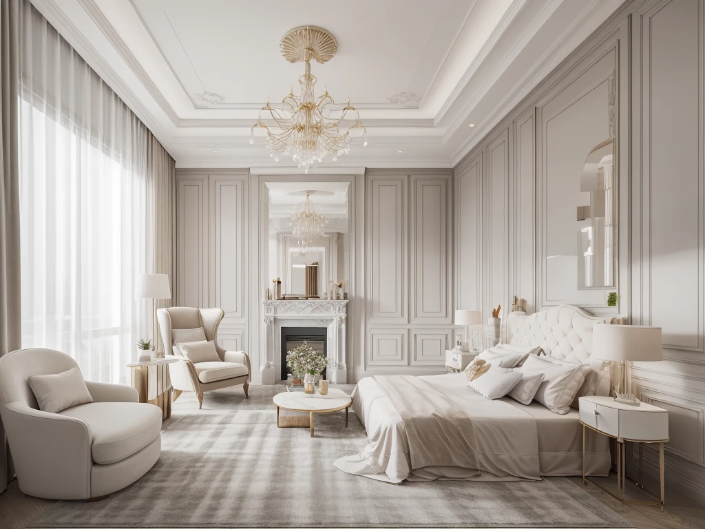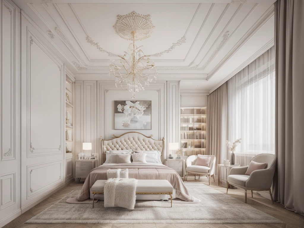 French light luxury style interior design, elegant colors and exquisite soft furnishings.
