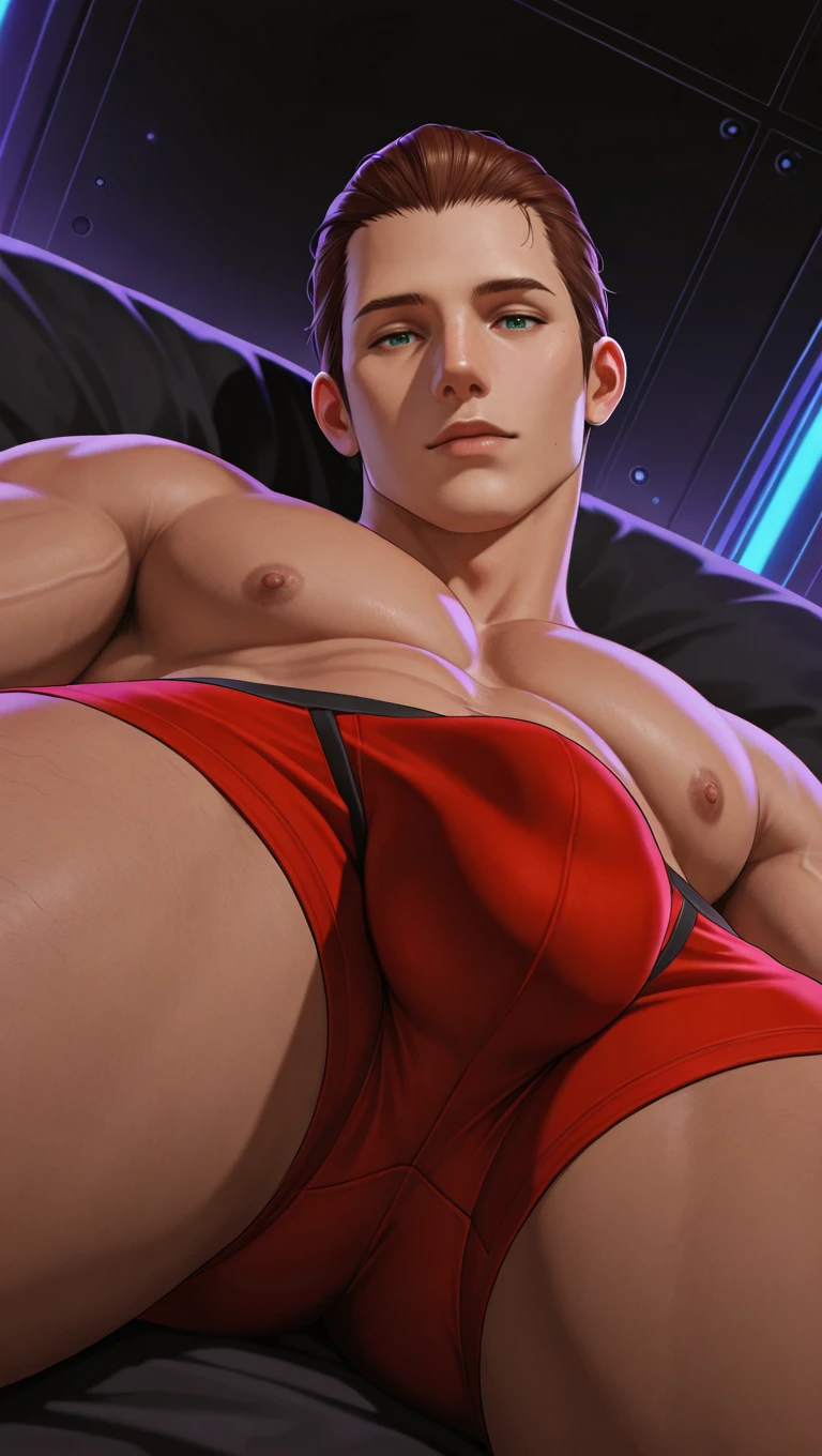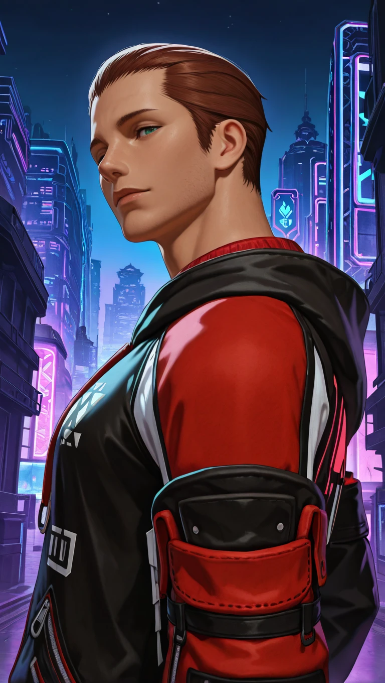 ffxiv lithander, 1boy, adult male, hyur, brown hair, hair slicked back, very short hair, green eyesV1 outfit tags are as follows: