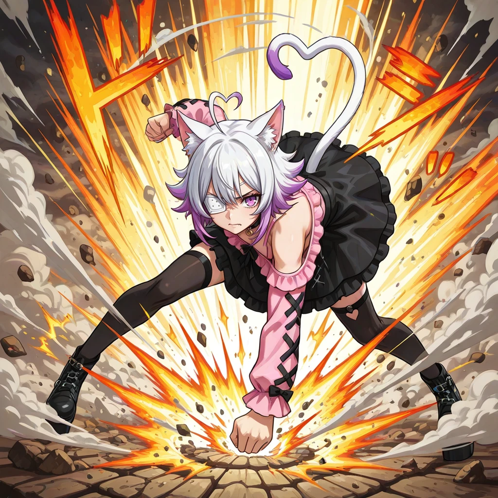 Power_Gazer_Pose, clenched fist, punching ground with fist,