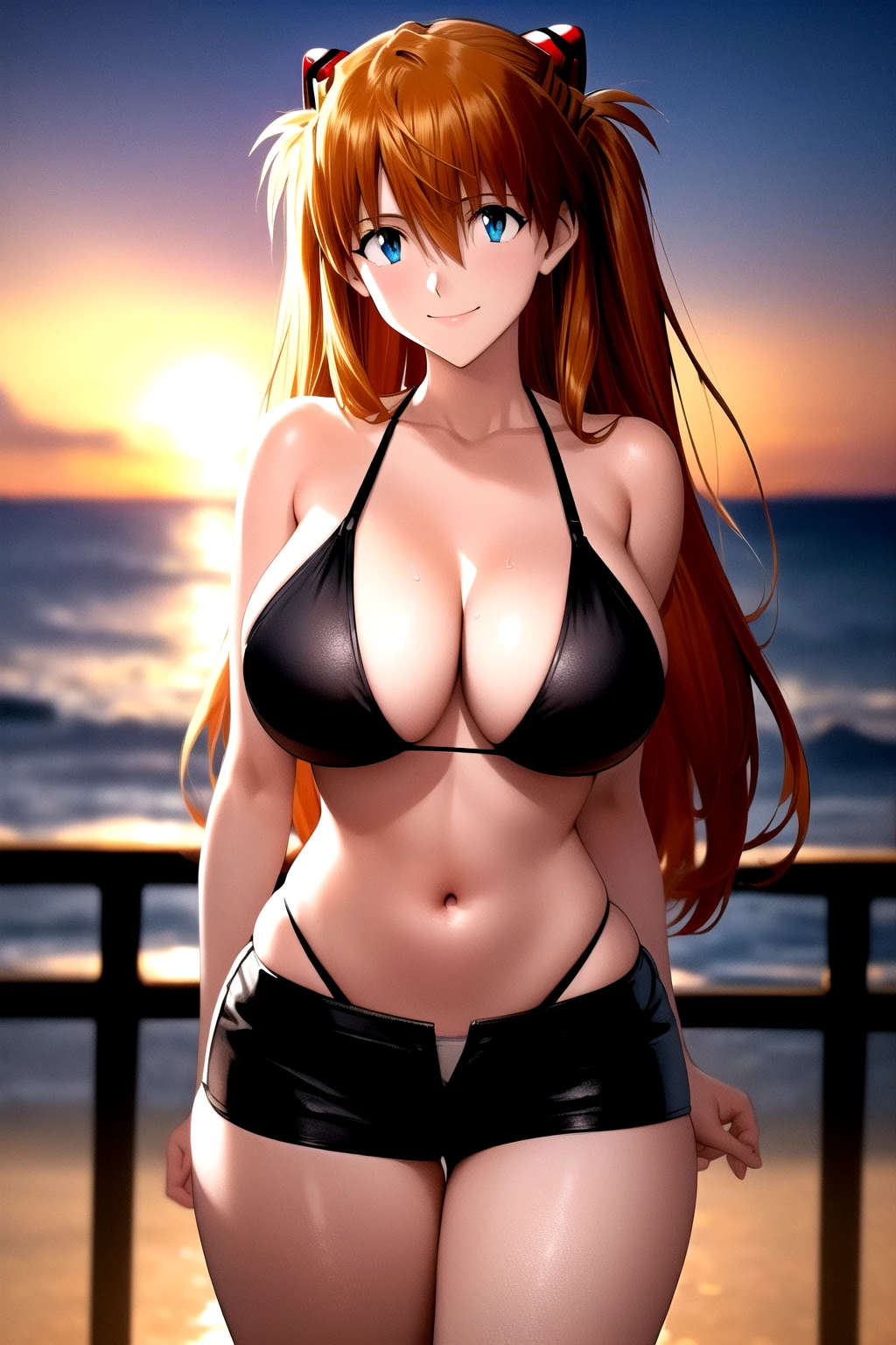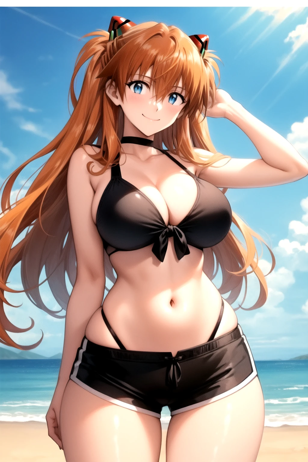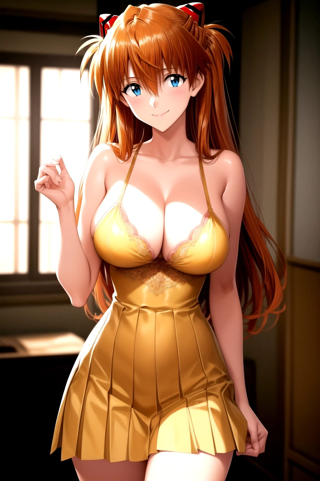 Activation tag: asuka_nge; orange hair or brown hair, long hair, and blue eyes for her general appearance.