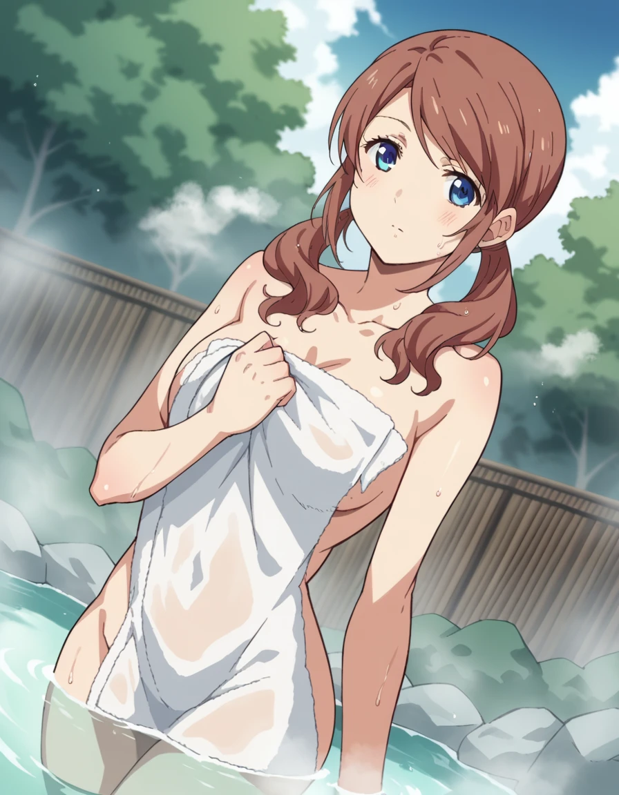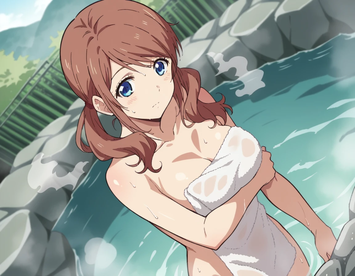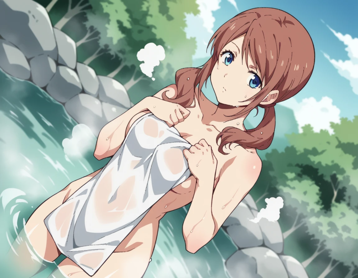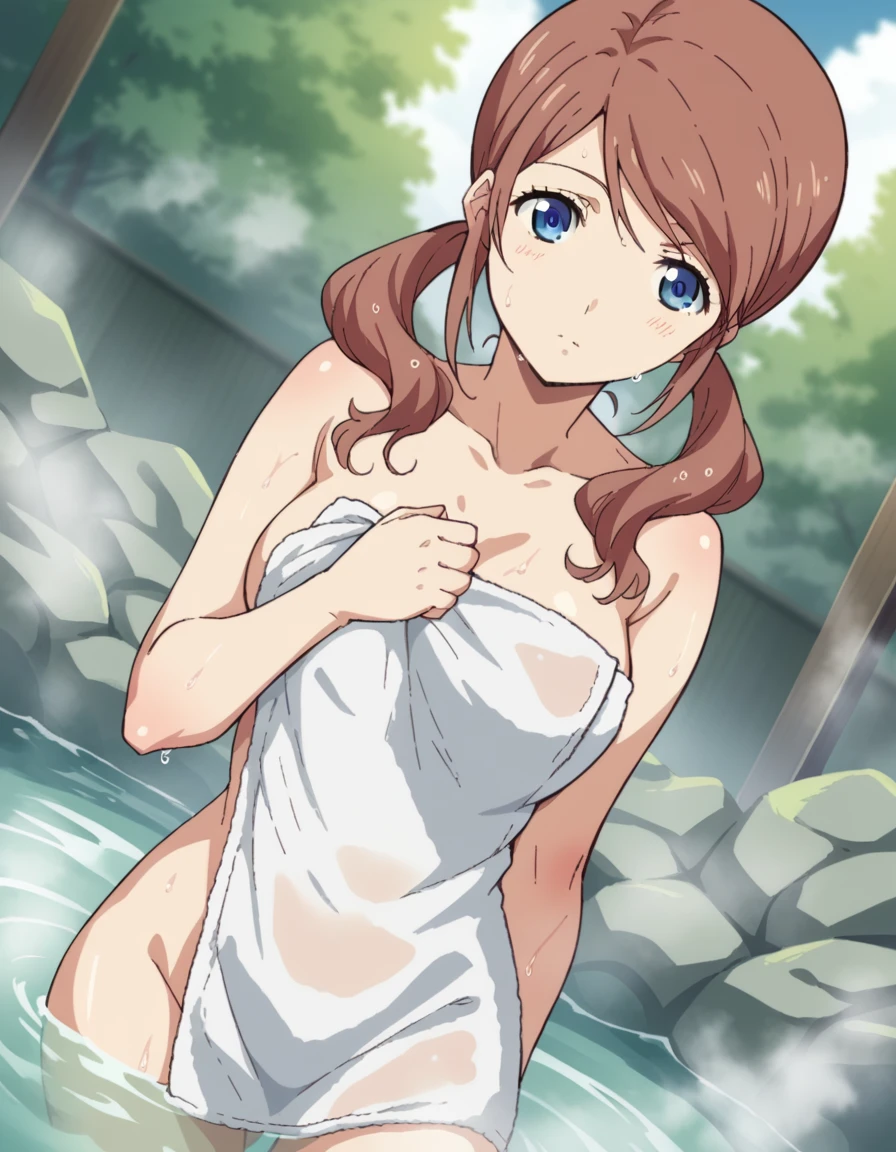 momo kashiwabara, long hair, blue eyes, brown hair, twintails, low twintails,