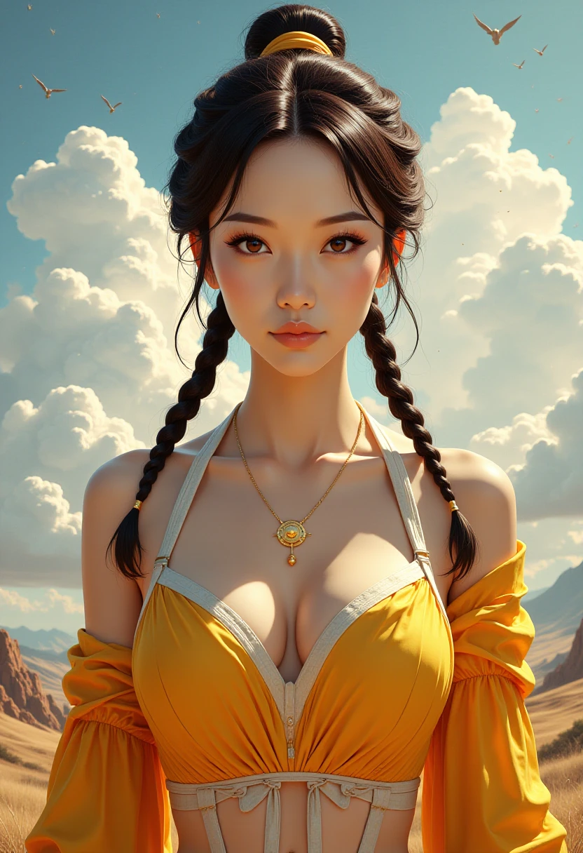 1girl, solo, {night|sun|sunset}, {3$$mask|robot|makeup|sharp teeth|android|glowing hair|fiery hair|[color] sclera|multicolored eyes}, {cityscape|smoke|cloud}
