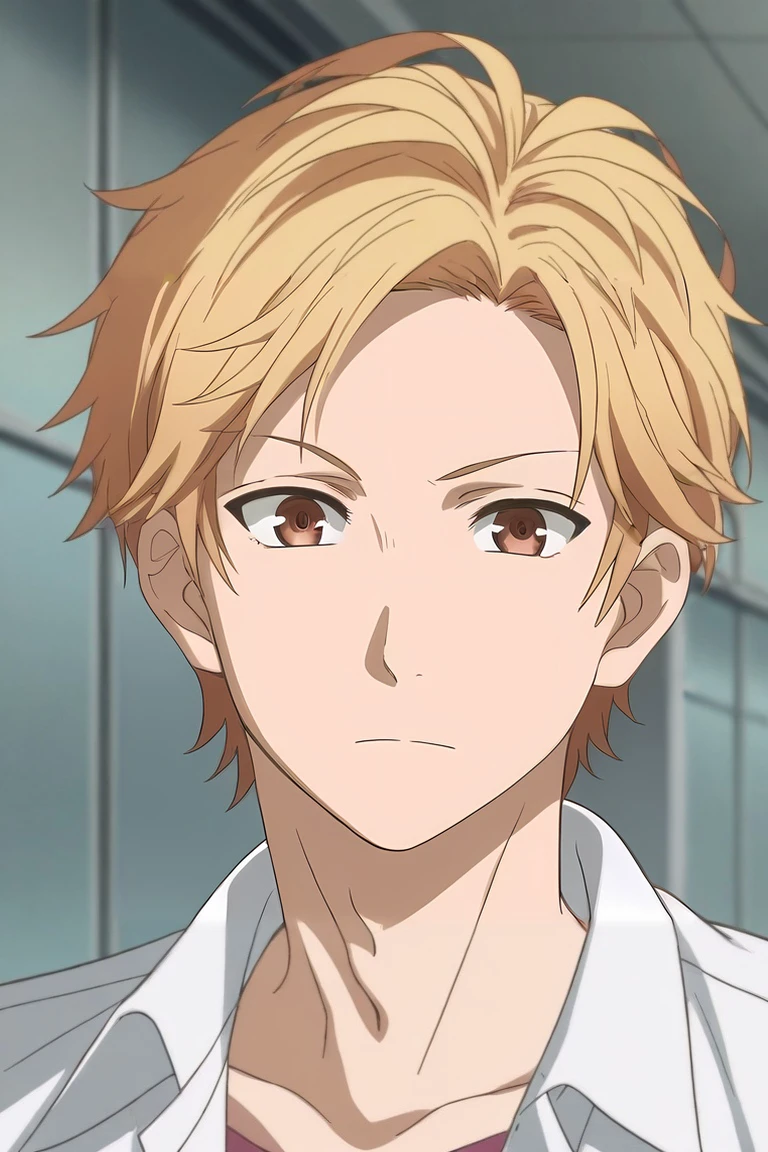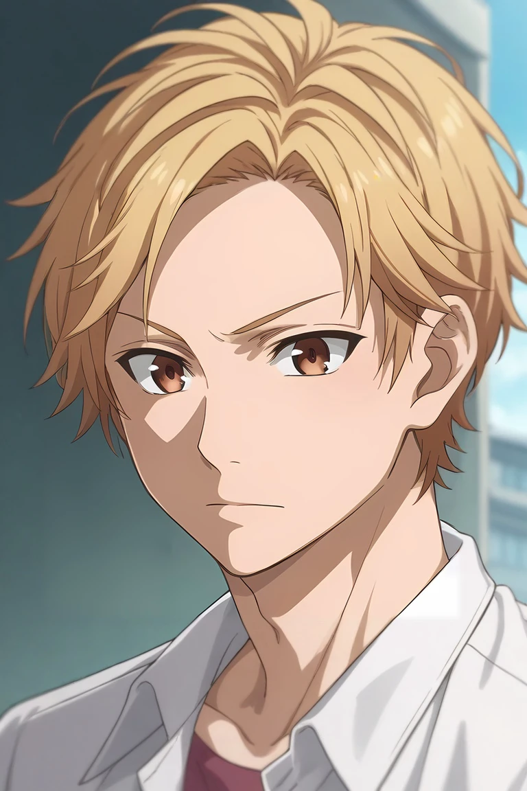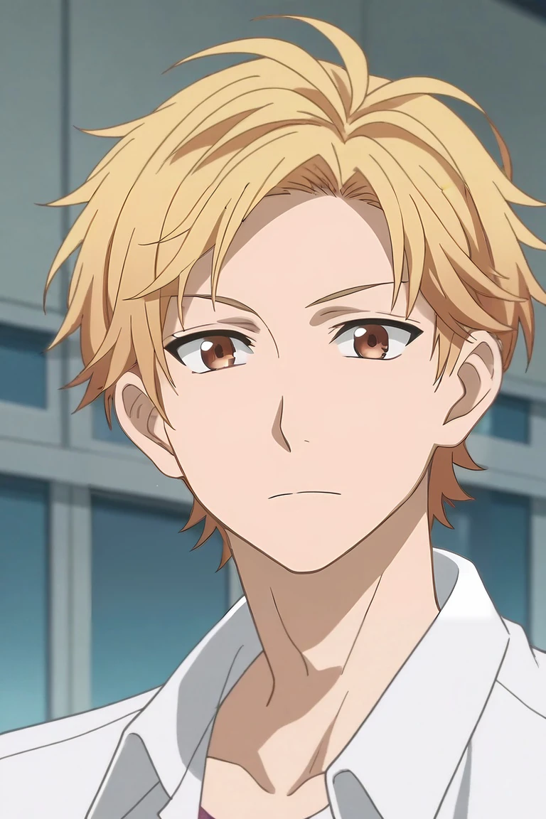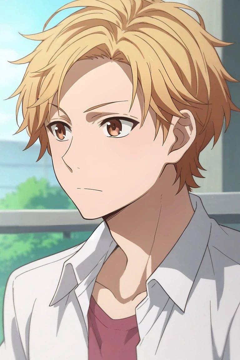 haruki_serizawa, blonde hair, brown eyes, short hair