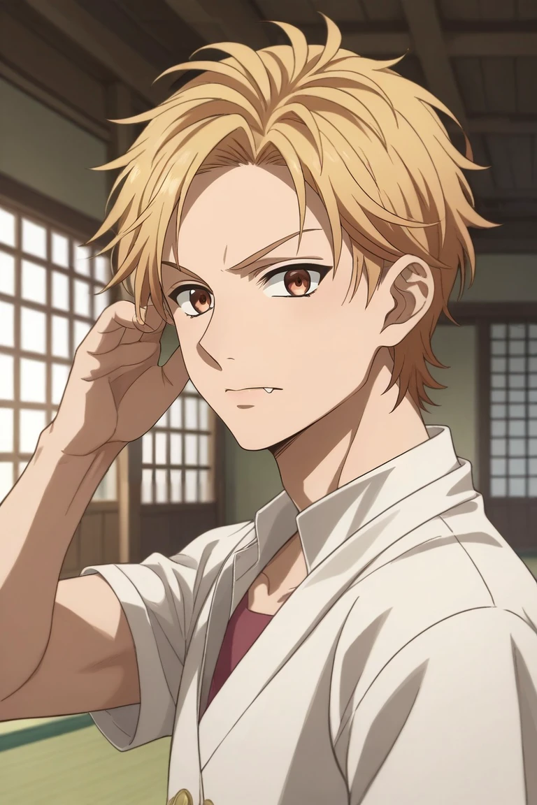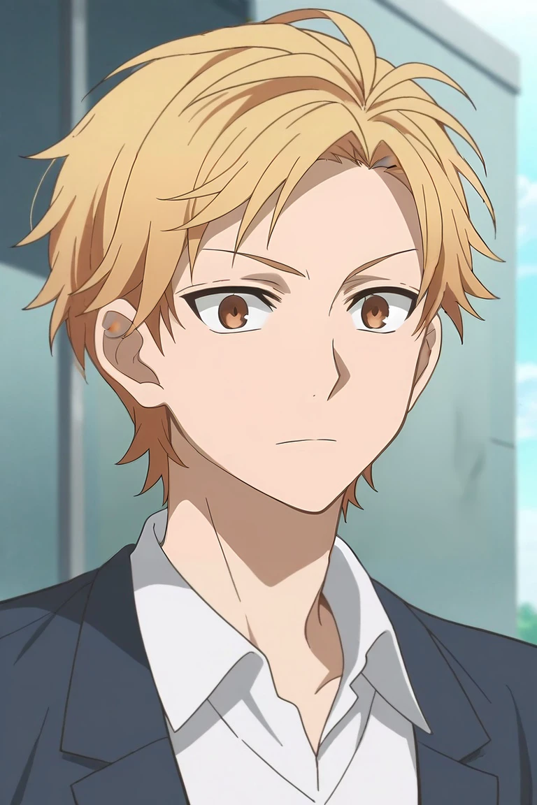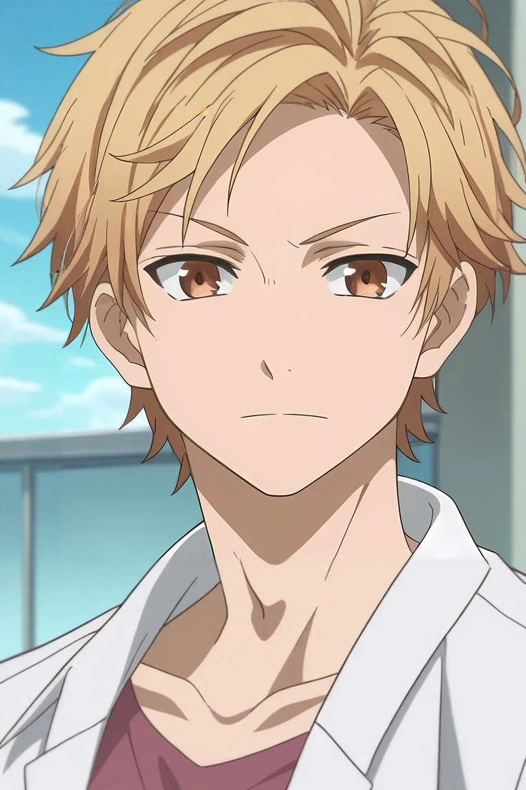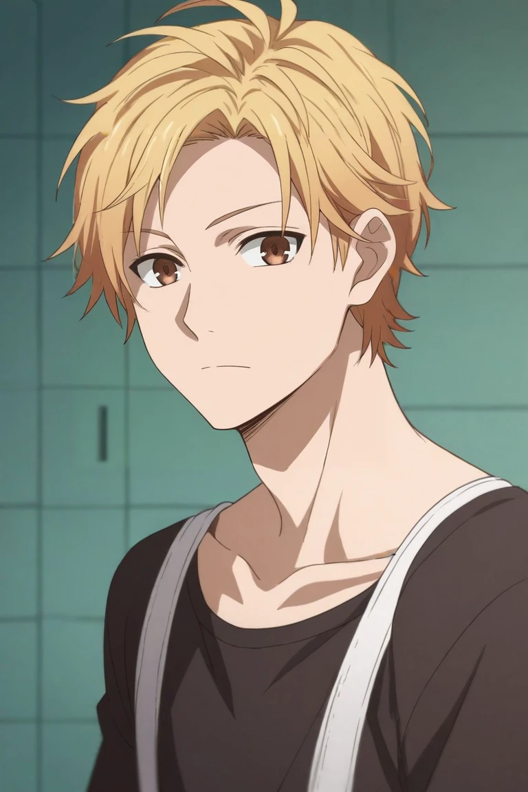 haruki_serizawa, blonde hair, brown eyes, short hair